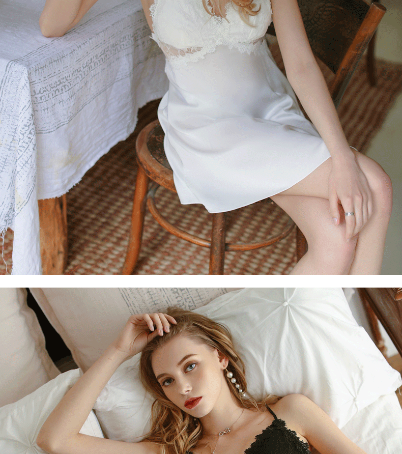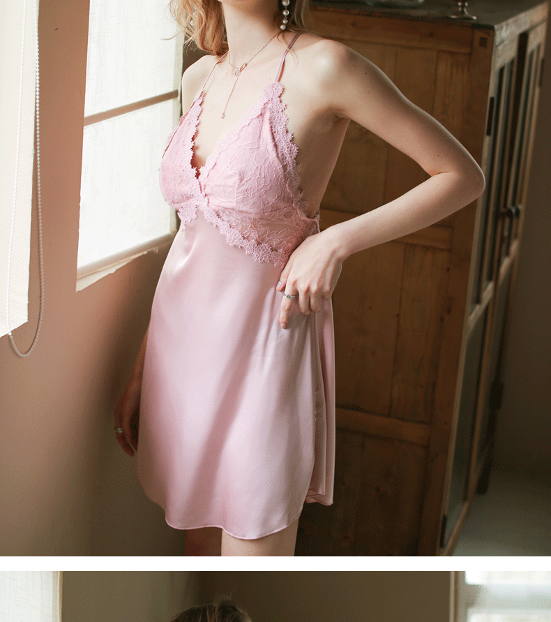 新款网红冰丝睡衣蕾丝女夏季性感睡裙带胸垫露背仿真丝绸吊带代发스토어 가기