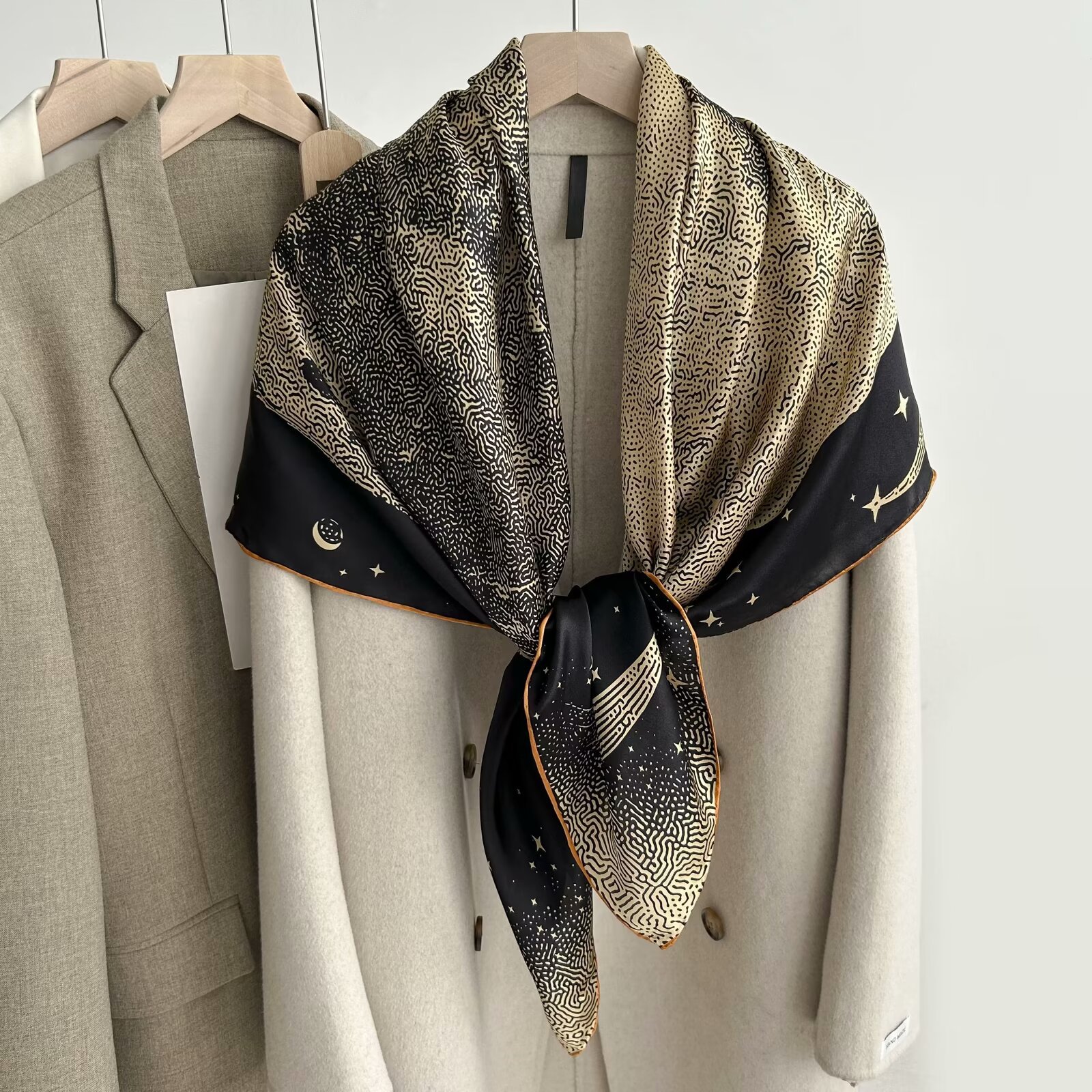 빈티지 봄과 가을 패션 뽕나무 실크 대형 광장 스카프 외부 장식 실크 스카프 여성의 우아한 한국 스타일 스카프와 목도리 이중 사용