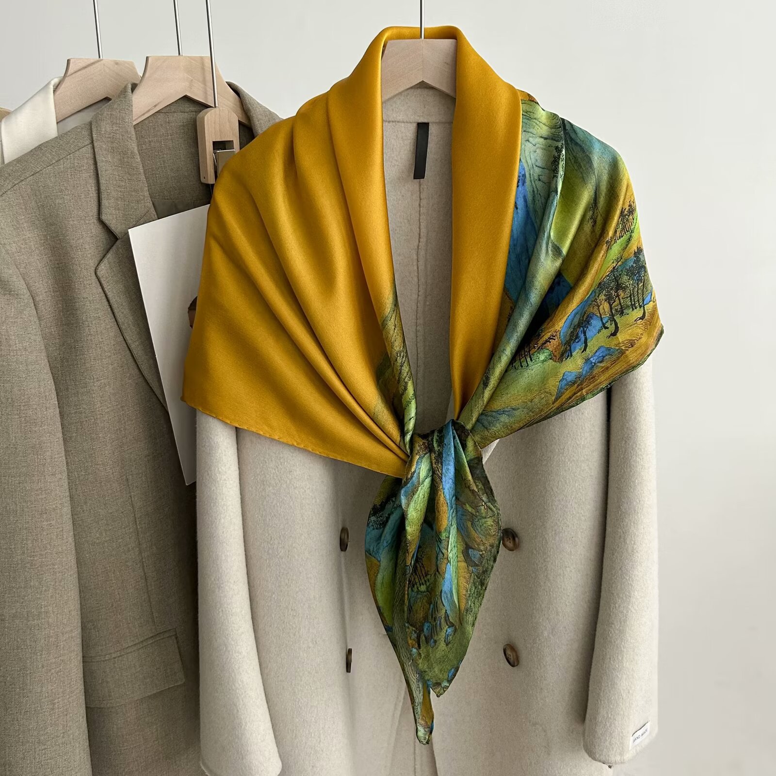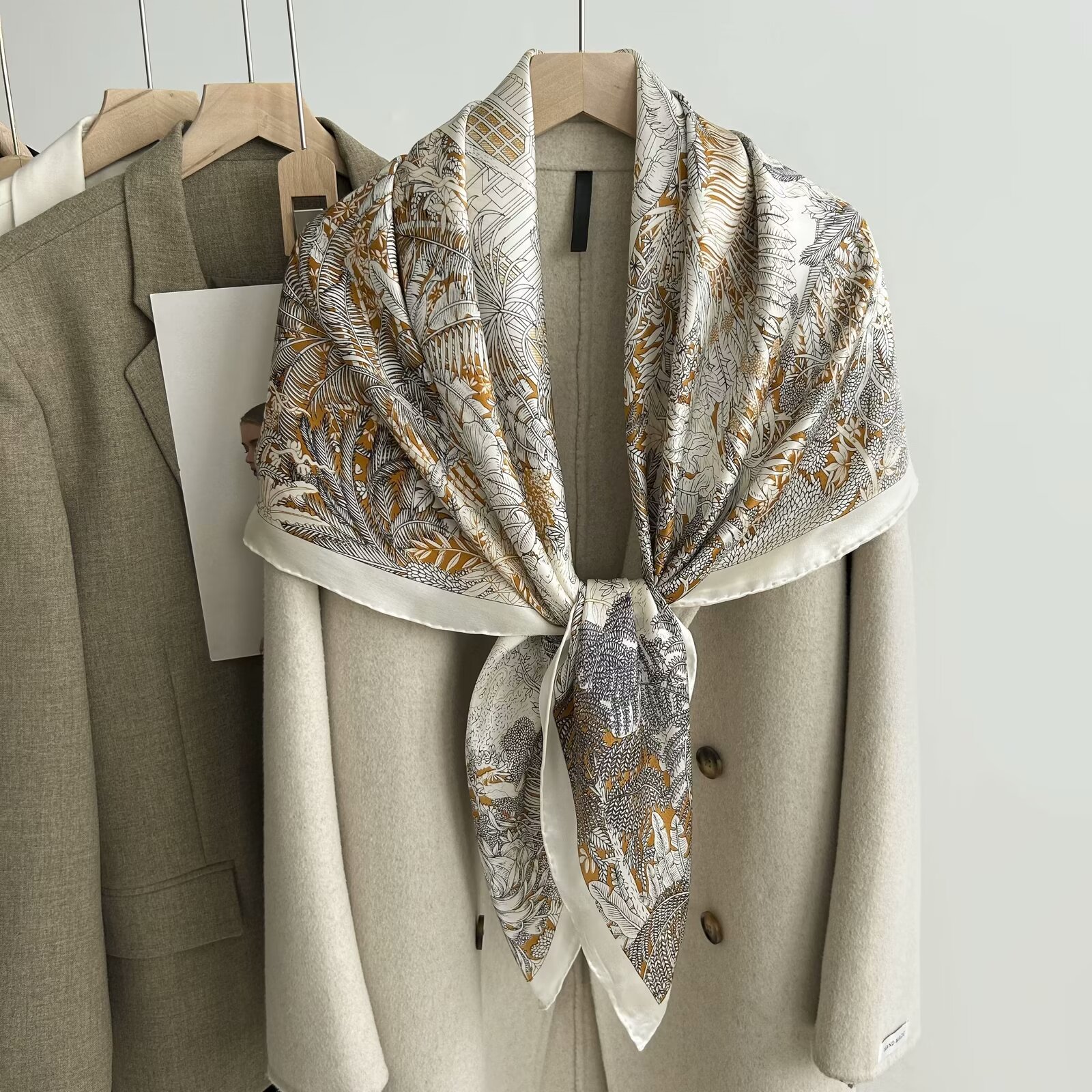 빈티지 봄과 가을 패션 뽕나무 실크 대형 광장 스카프 외부 장식 실크 스카프 여성의 우아한 한국 스타일 스카프와 목도리 이중 사용스토어 가기