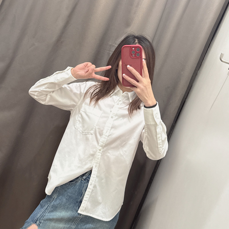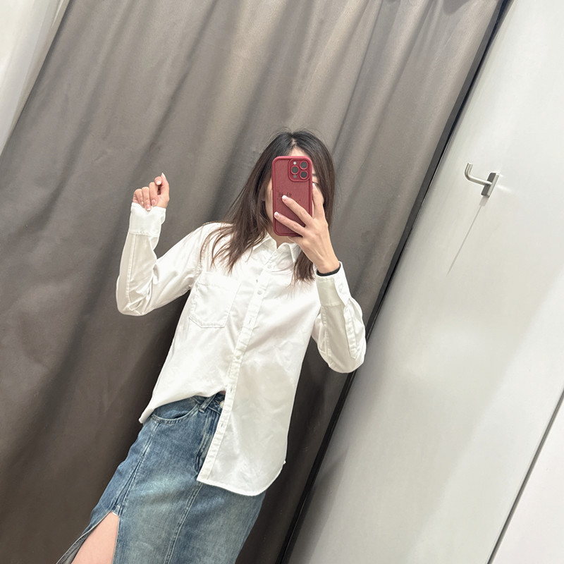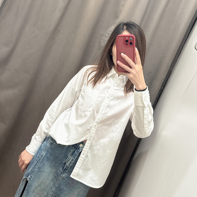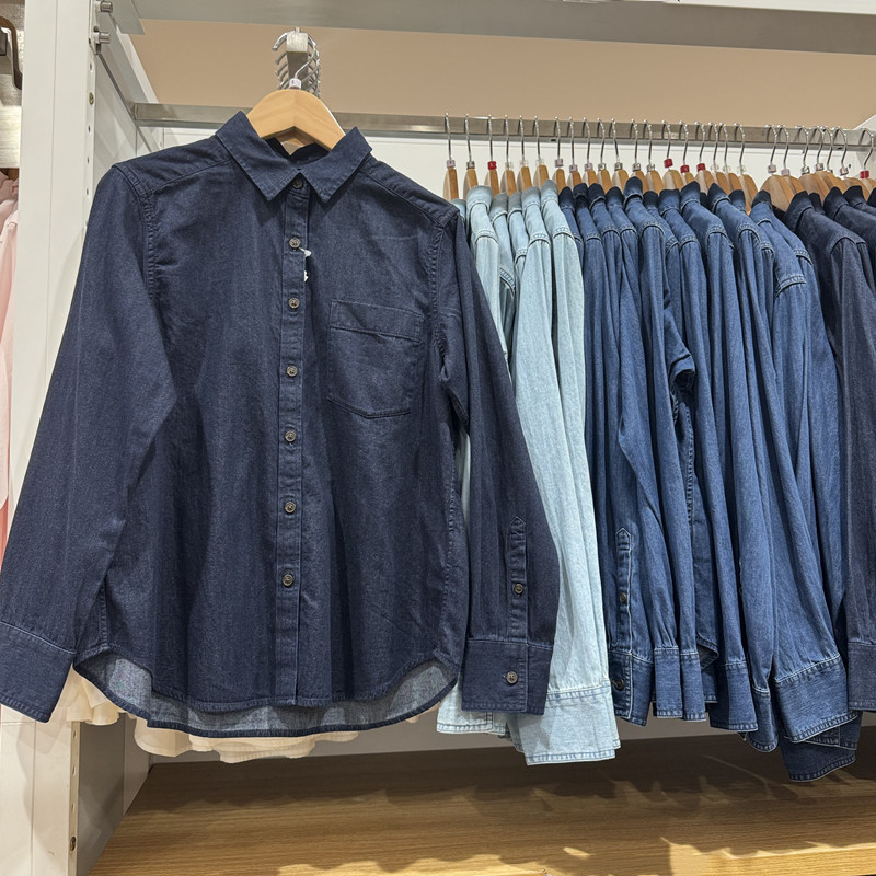 2024秋季新款女士显瘦棉质长袖衬衣复古柔软牛仔衬衫薄外套470735