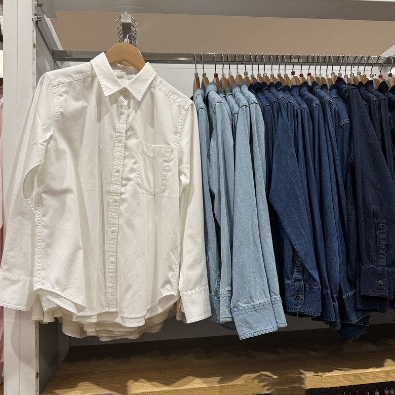 2024秋季新款女士显瘦棉质长袖衬衣复古柔软牛仔衬衫薄外套470735스토어 가기