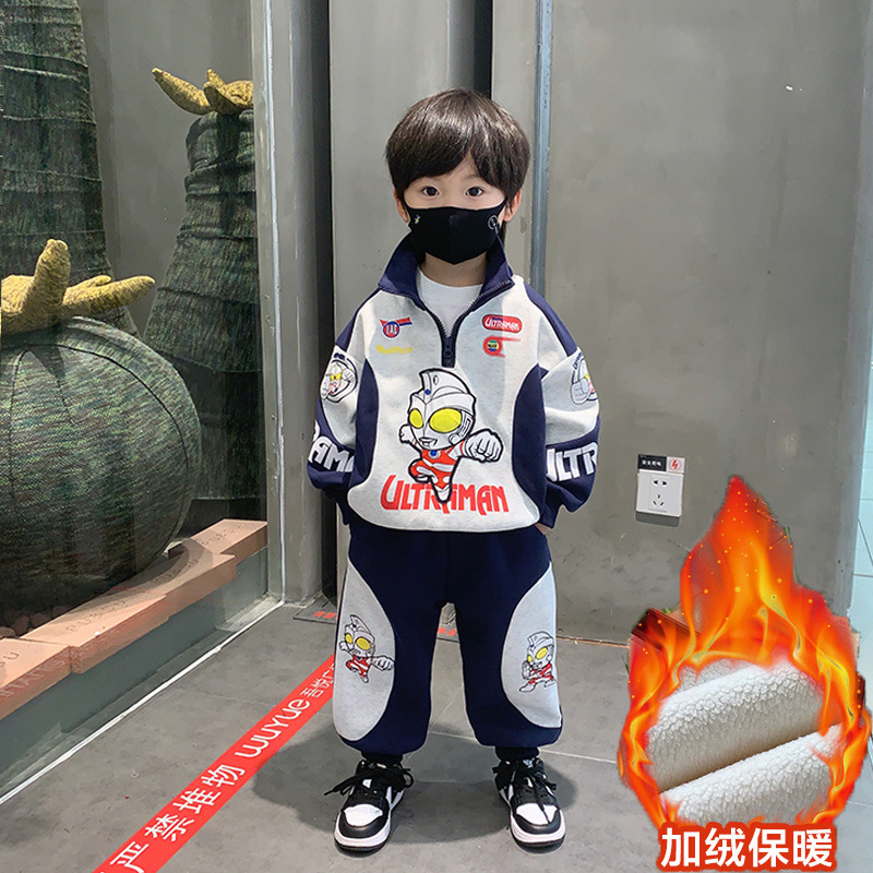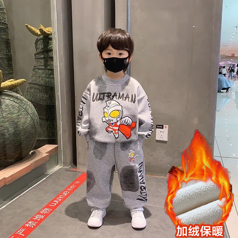 Altman Children's Wear Boys 'Fleece 세트 2024 새로운 잘 생긴 유행 아기 옷 유행 어린이 두꺼운 스웨트 셔츠