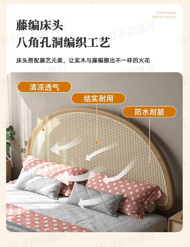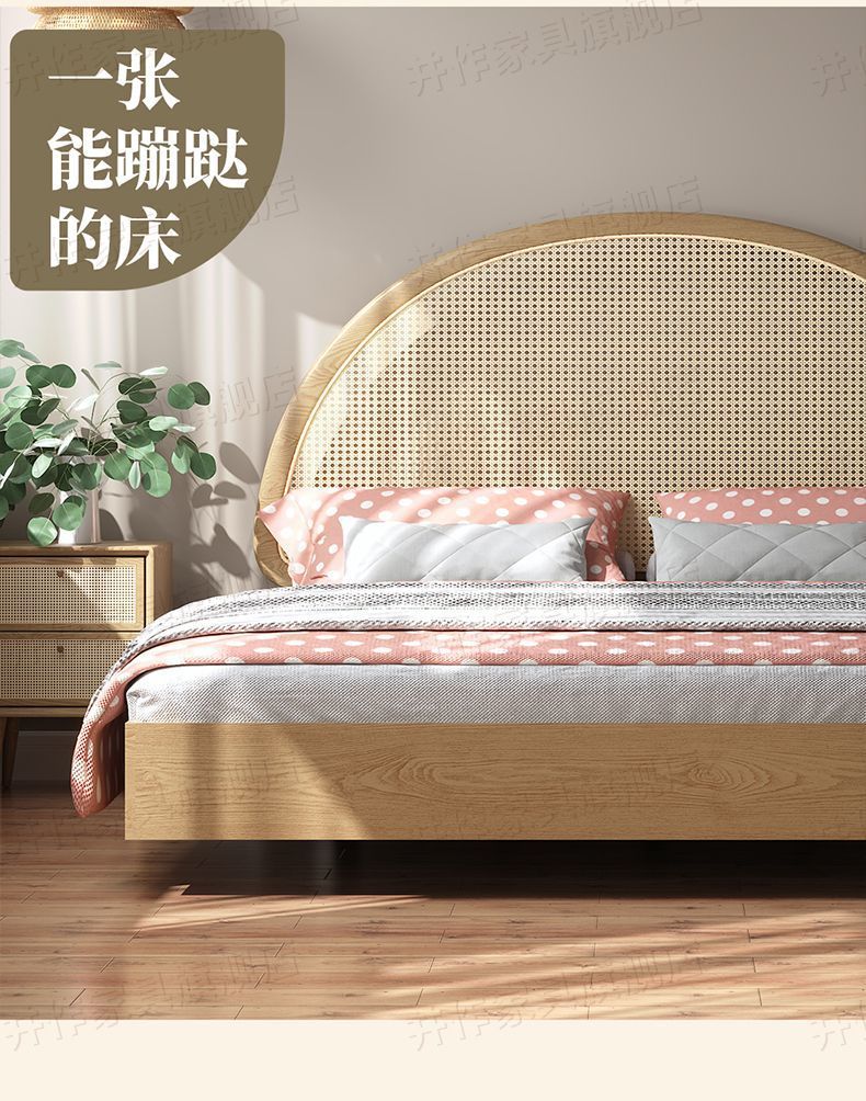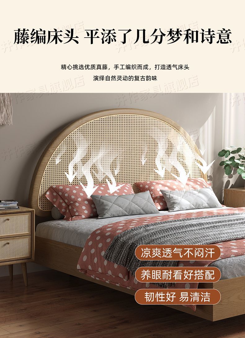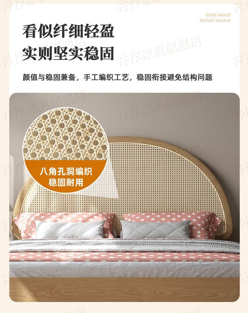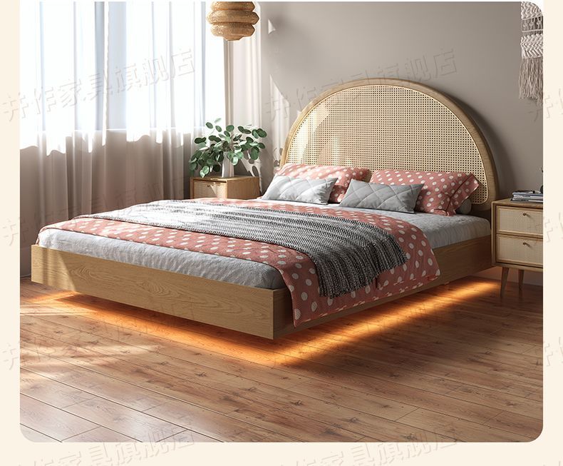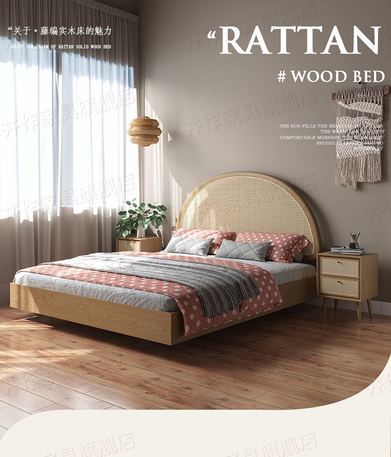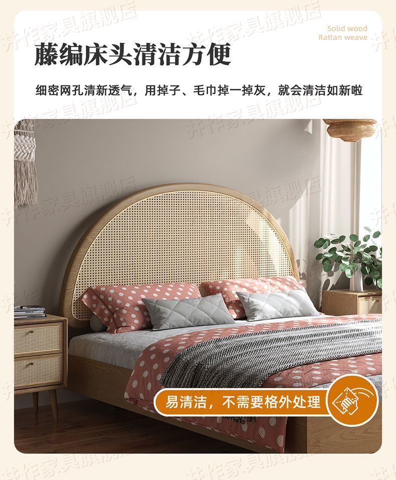 Yf3 Ash 등나무 단단한 나무 서스펜션 침대 더블 1.8 북유럽 홈스테이 로그 일본식 1.5 더블 침대 단순스토어 가기