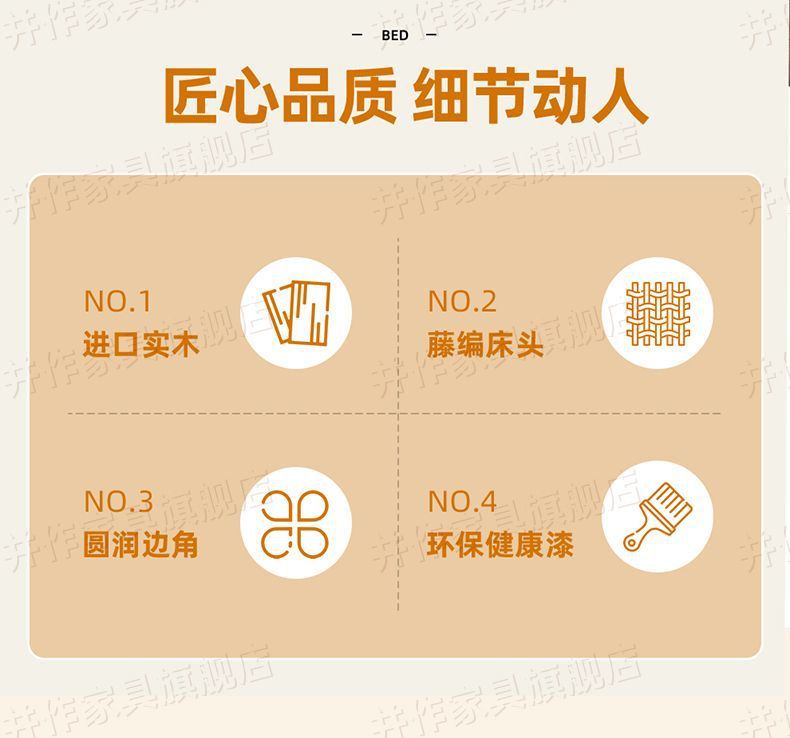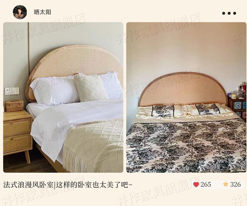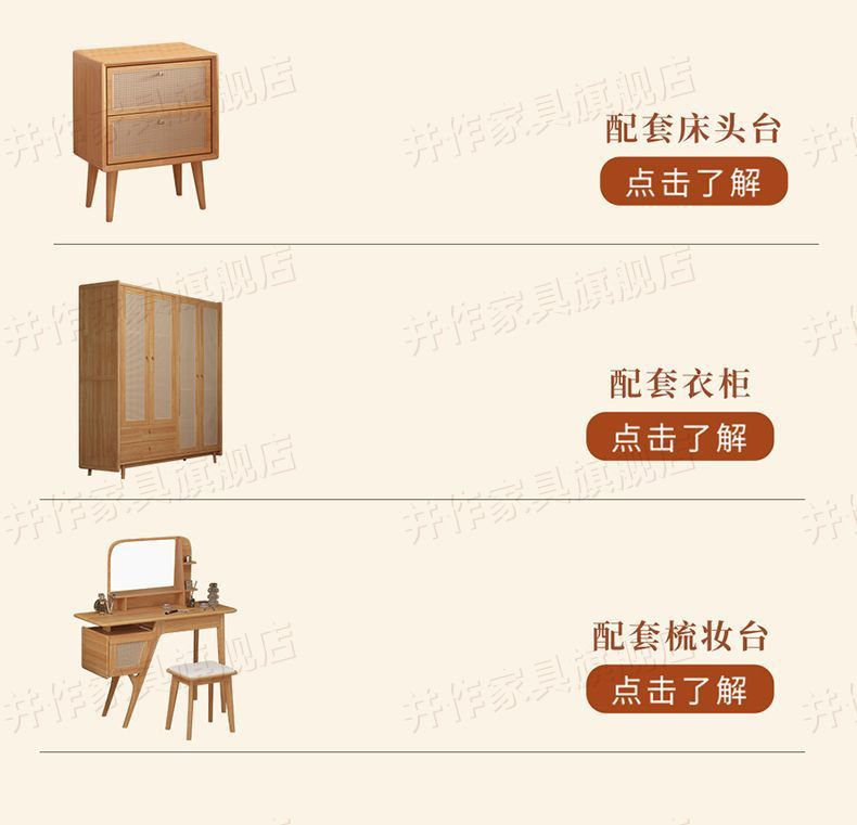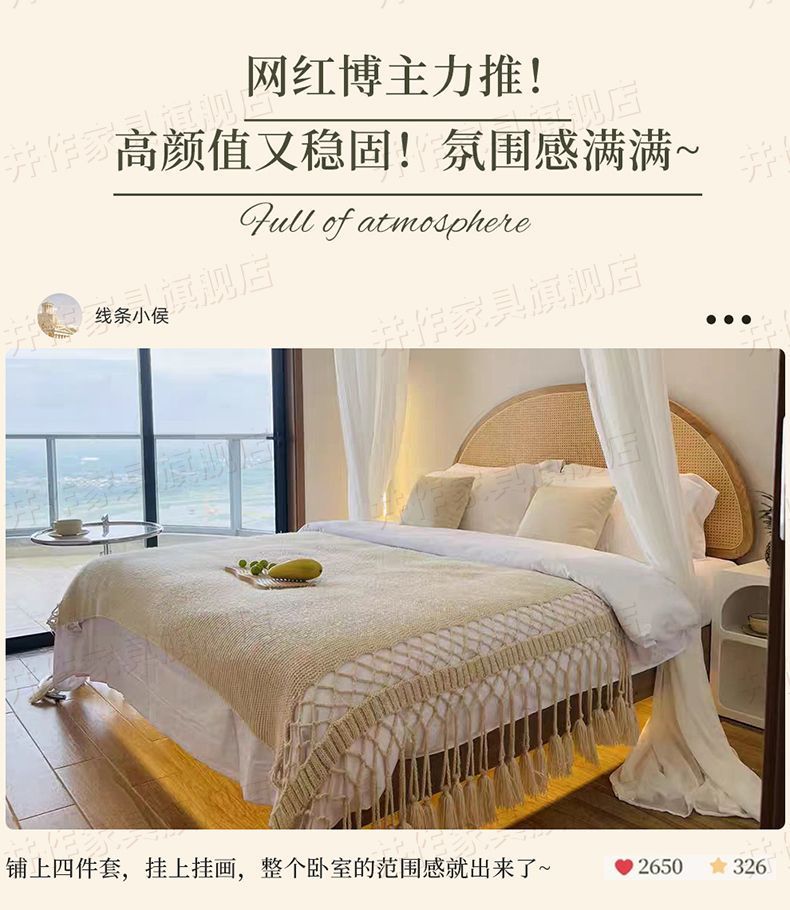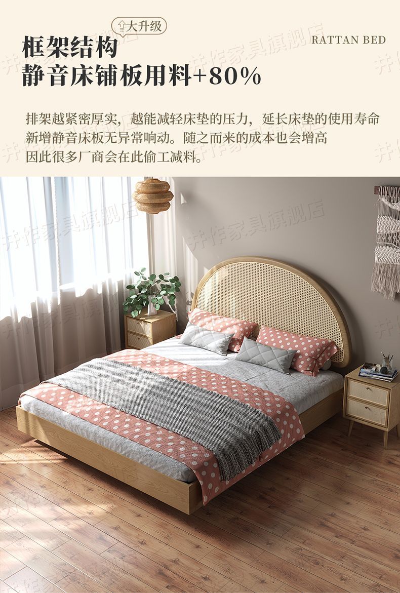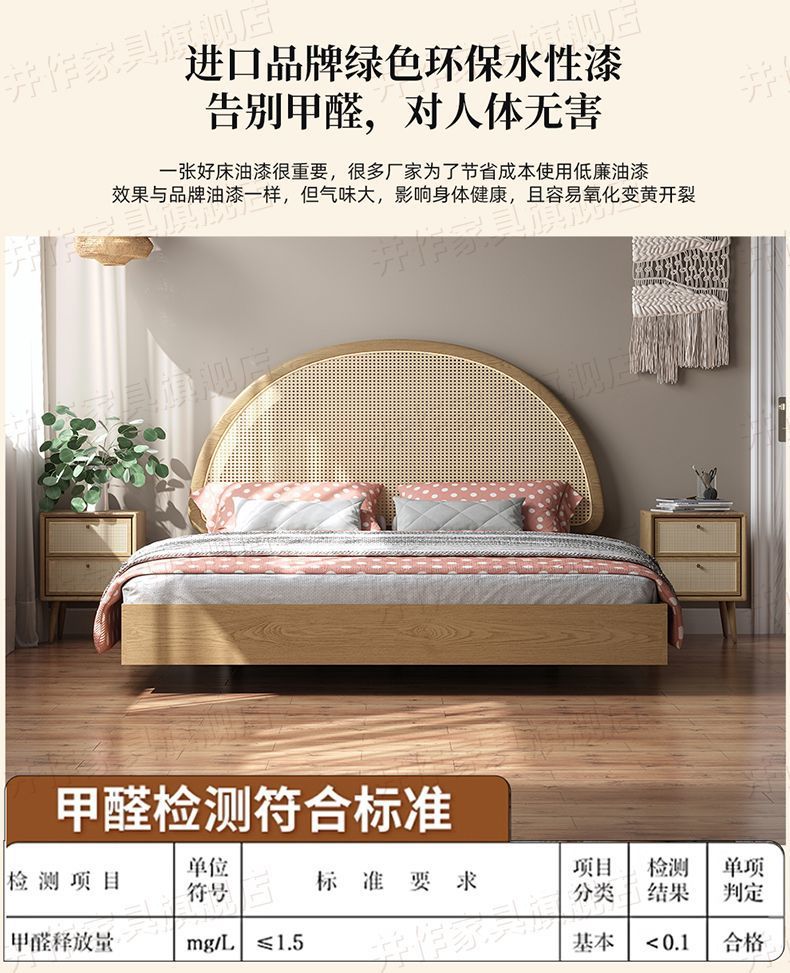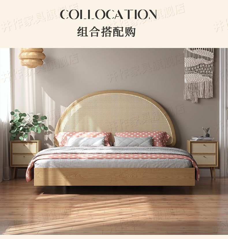Yf3 Ash 등나무 단단한 나무 서스펜션 침대 더블 1.8 북유럽 홈스테이 로그 일본식 1.5 더블 침대 단순스토어 가기