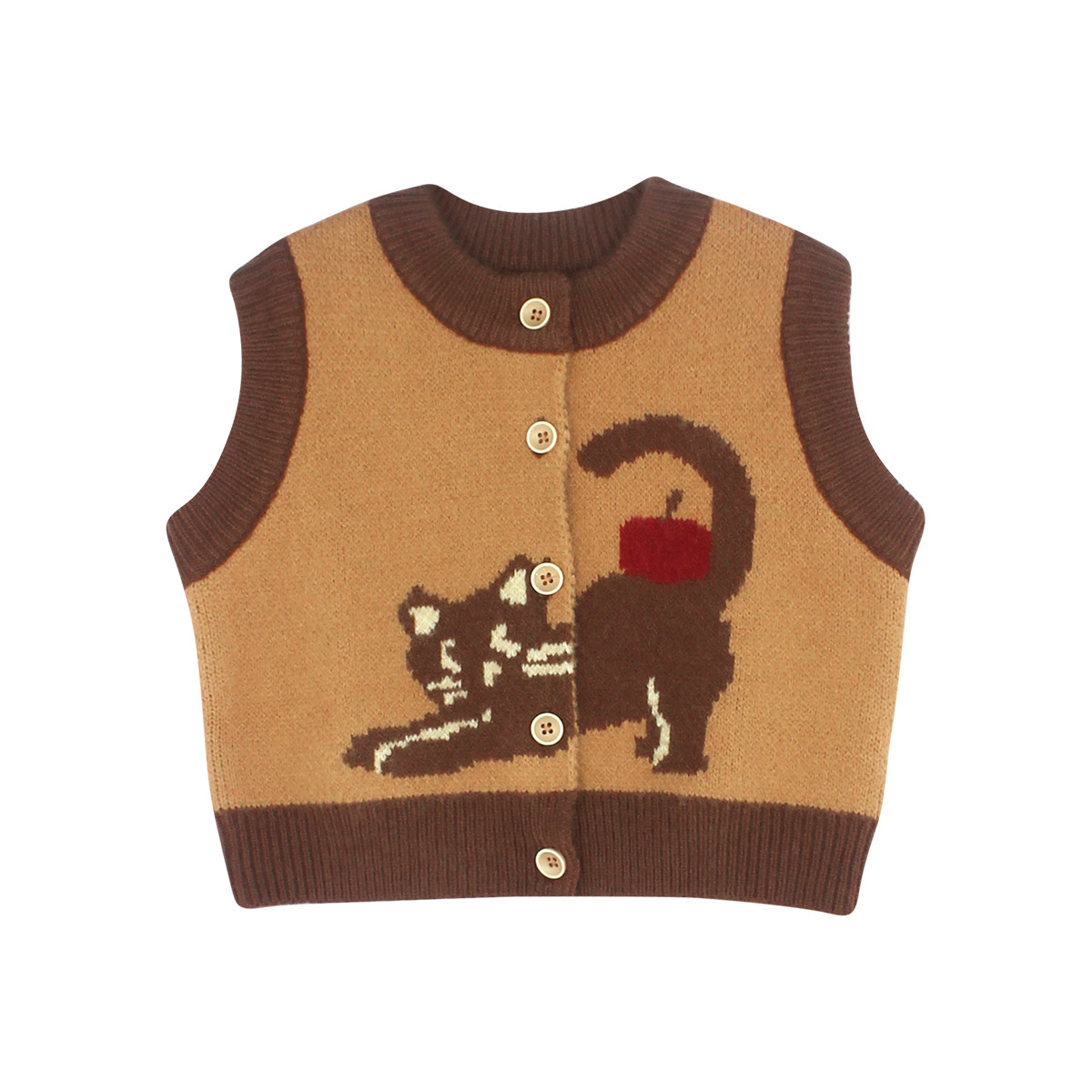 今年流行针织马甲外套女童装早秋新款外穿内搭单排扣开衫背心毛衣