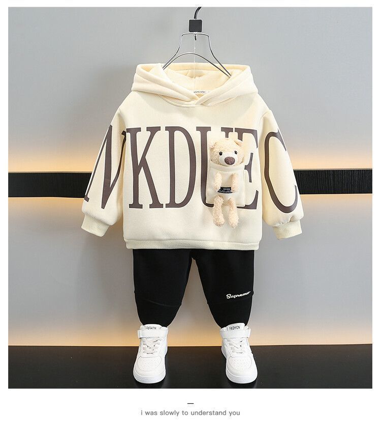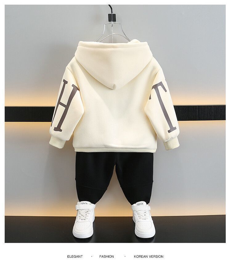 어린이 봄 세트 2024 새로운 유행 어린이 소년과 소녀 아기 후드 긴 소매 땀 투피스 세트