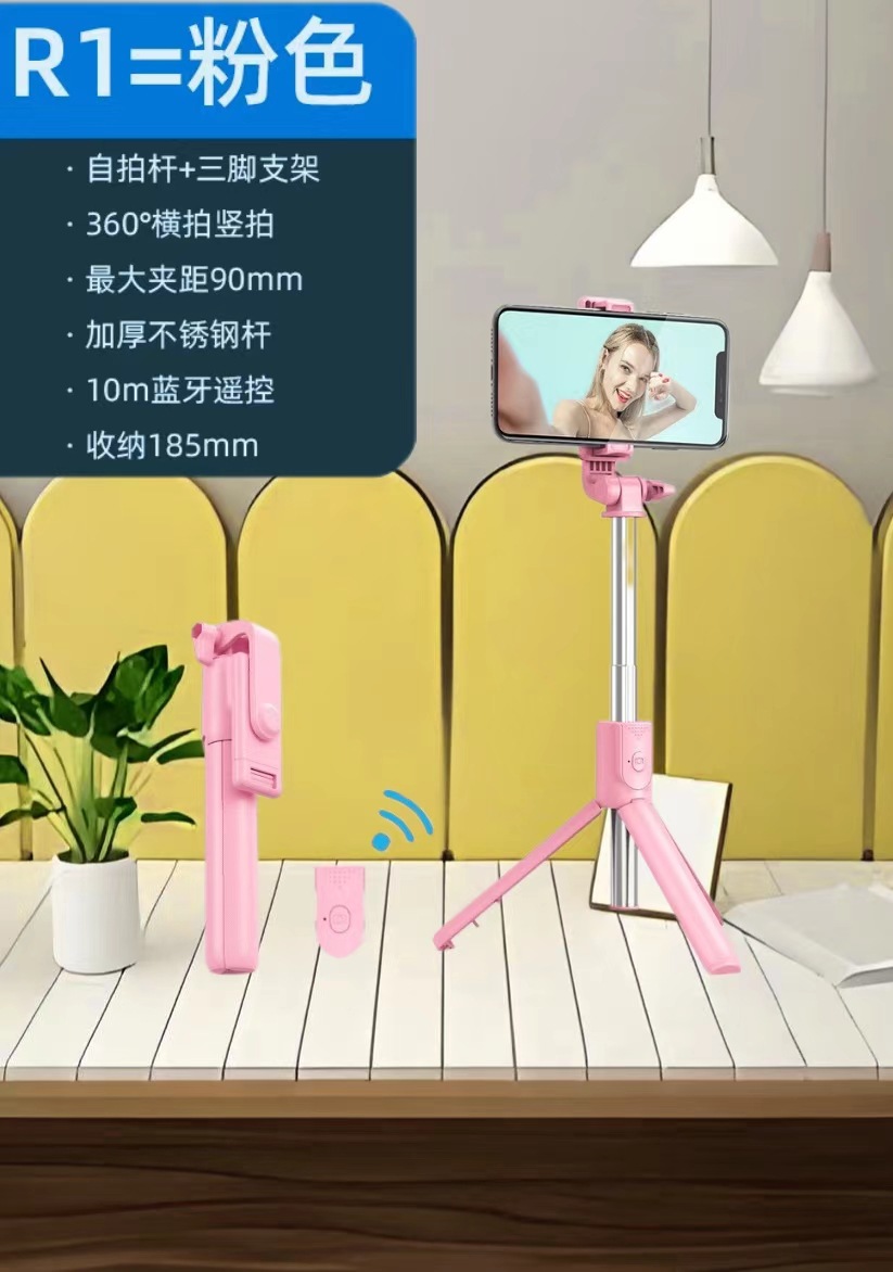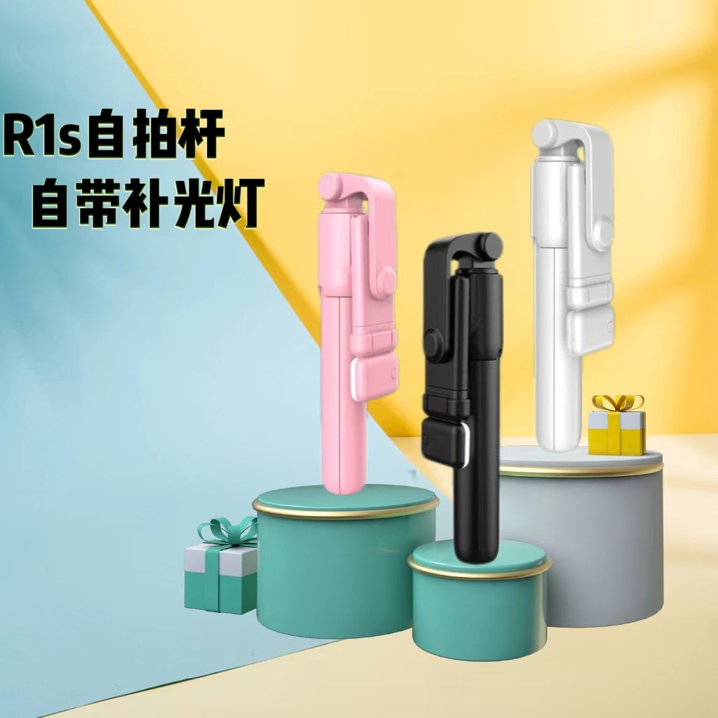 새로운 R1s 휴대 전화 블루투스 셀카 스틱 미니 채우기 빛 라이브 촬영 휴대용 통합 텔레스코픽 삼각대스토어 가기