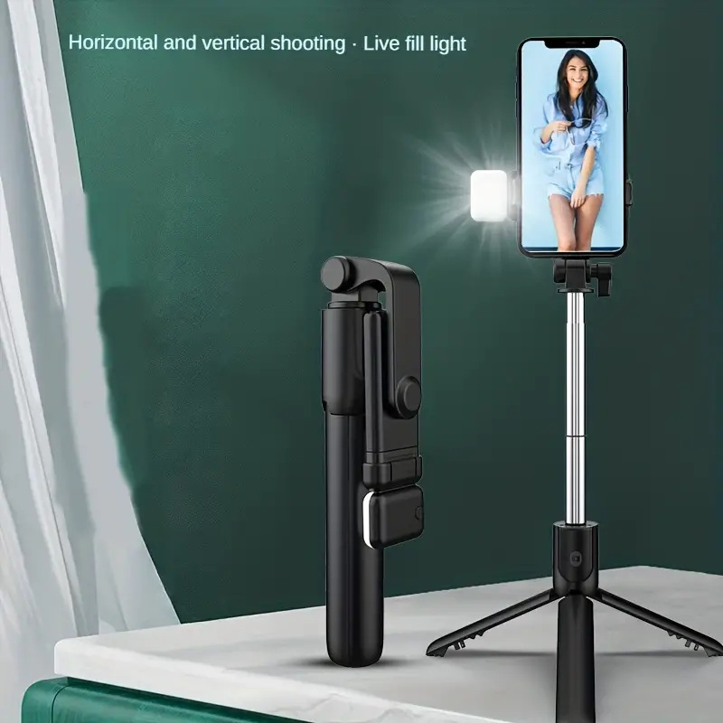 새로운 R1s 휴대 전화 블루투스 셀카 스틱 미니 채우기 빛 라이브 촬영 휴대용 통합 텔레스코픽 삼각대