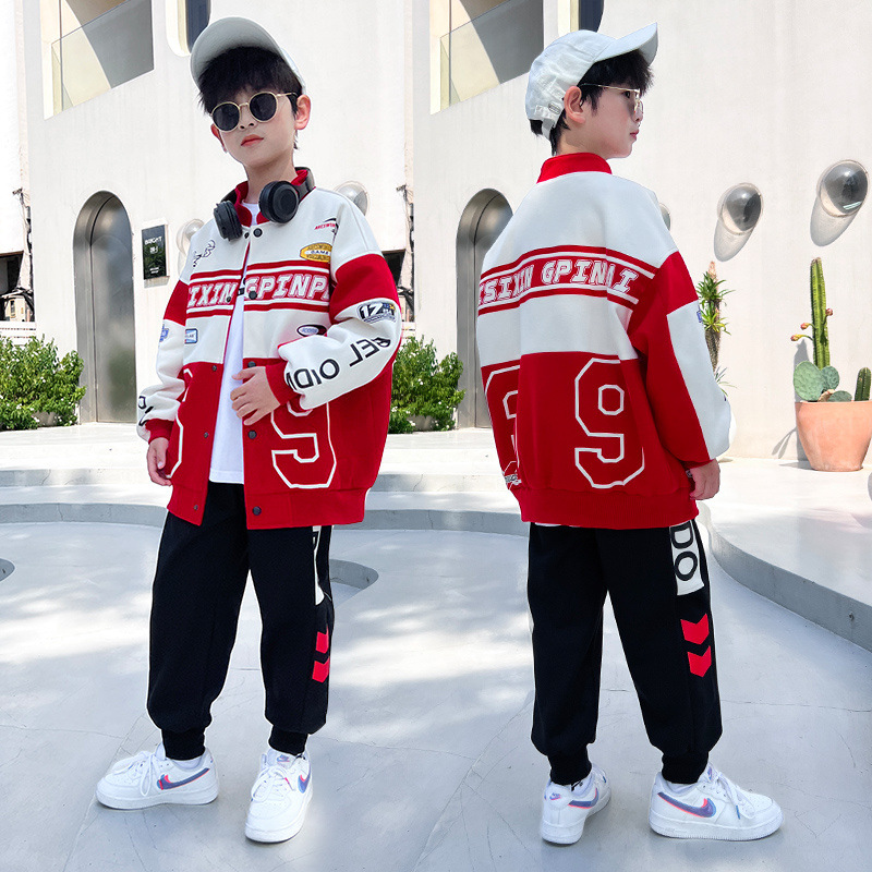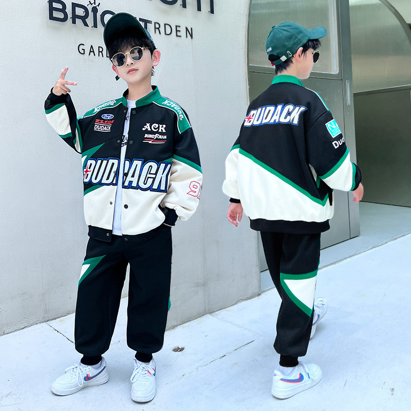 소년 가을 시원한 잘 생긴 오토바이 의류 세트 2023 새로운 큰 어린이 외국 스타일 소년 봄과 가을 유행 튀김 거리스토어 가기