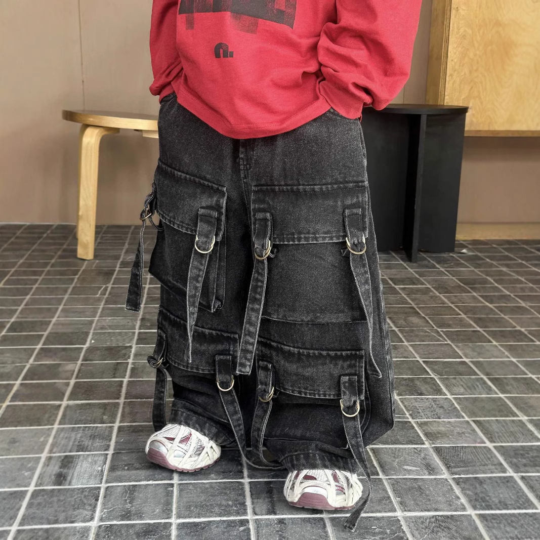 2025 년 봄 신중공업 청바지 보이즈 툴링 패션 쿨 한국판 패션 조커 와이드 레그 루즈스토어 가기