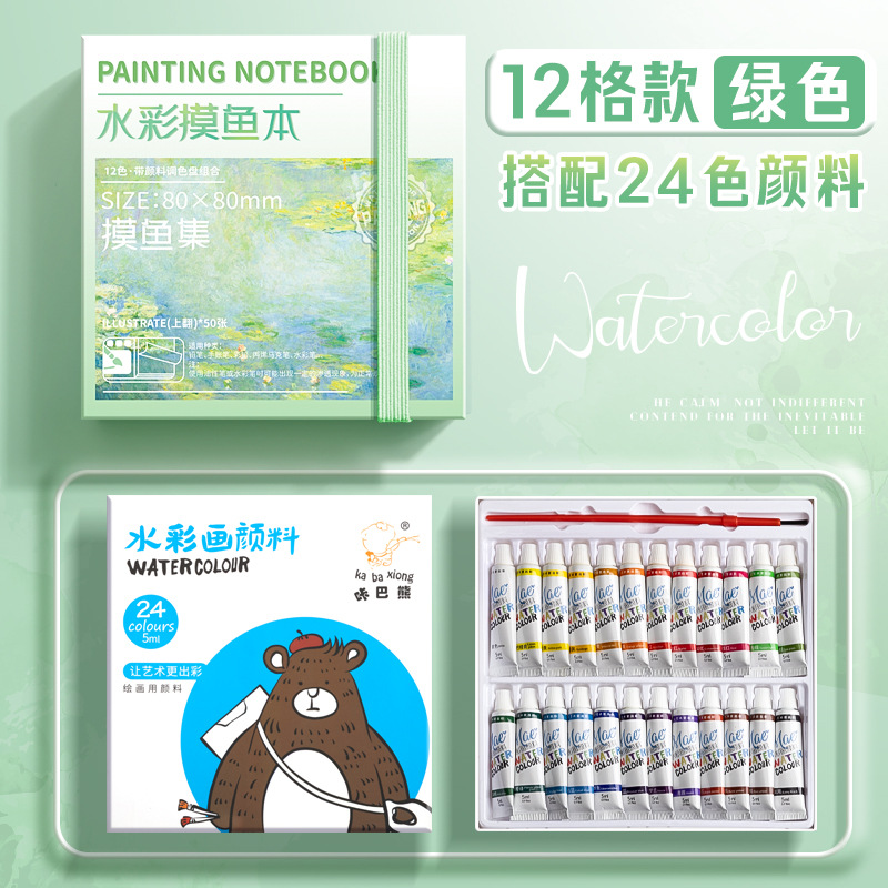 미니 여행 스케치 수채화 세트 수채화 물고기 완두콩 책 스트랩 손 계정 그림 책 안료 휴대용 상자스토어 가기