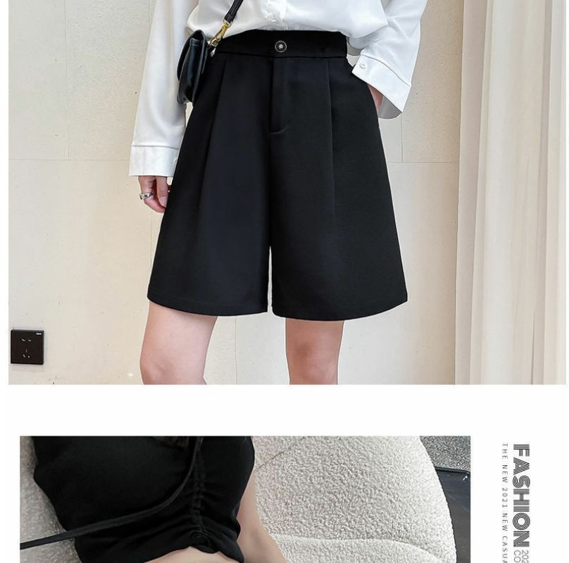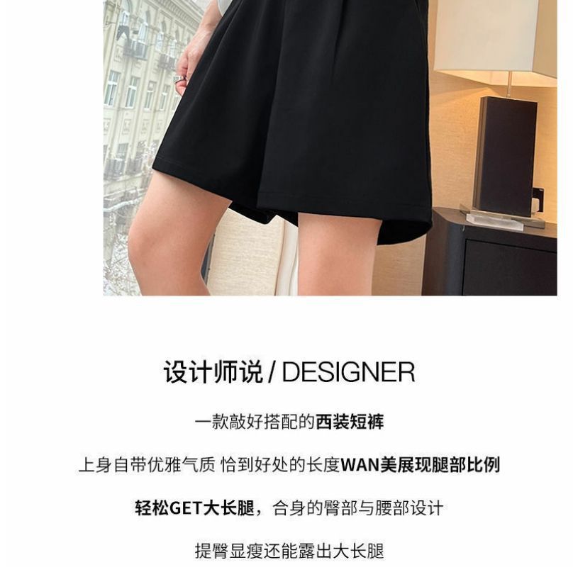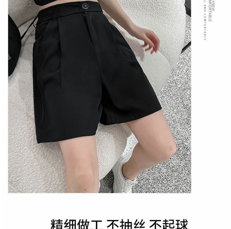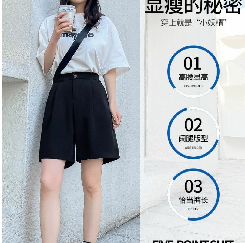 한국 스타일 여름 새로운 여성 5 점 세트 반바지 검은 통근 플러스 사이즈 높은 허리 느슨한 슬리밍 넓은 다리 바지
