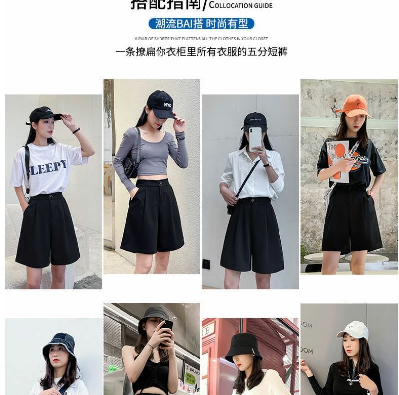 한국 스타일 여름 새로운 여성 5 점 세트 반바지 검은 통근 플러스 사이즈 높은 허리 느슨한 슬리밍 넓은 다리 바지스토어 가기