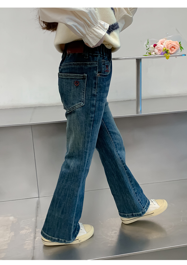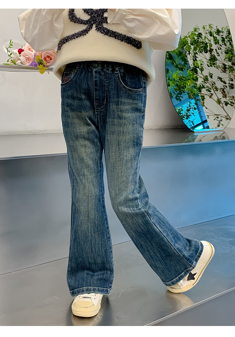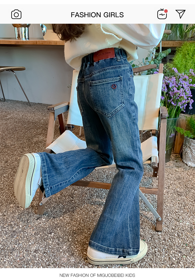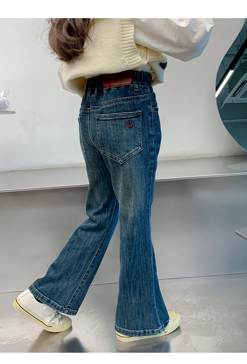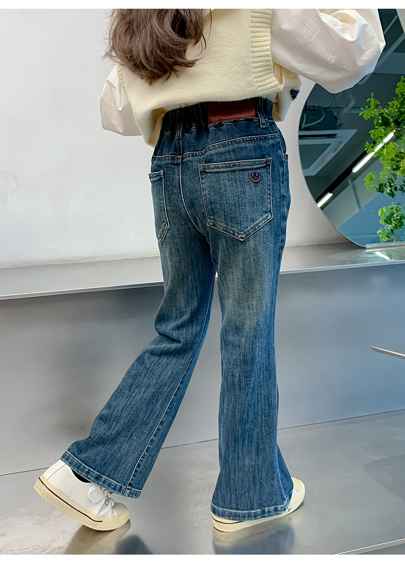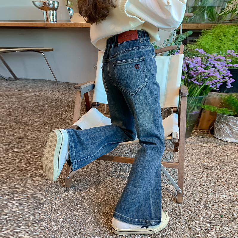소녀 바지 봄과 가을 2025 새로운 서양 스타일 큰 어린이 청바지 어린이 봄과 가을 꽃 바지 간단한 여성 바지스토어 가기