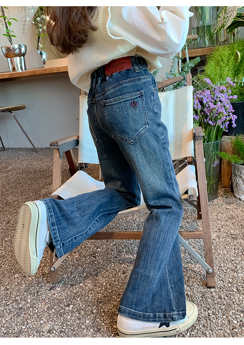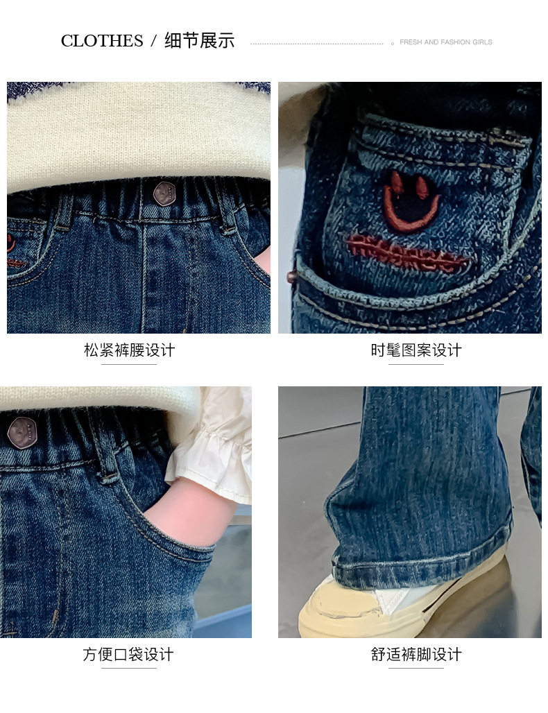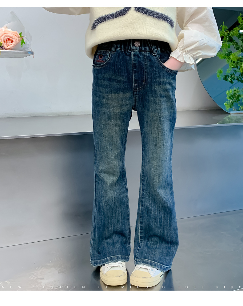 소녀 바지 봄과 가을 2025 새로운 서양 스타일 큰 어린이 청바지 어린이 봄과 가을 꽃 바지 간단한 여성 바지