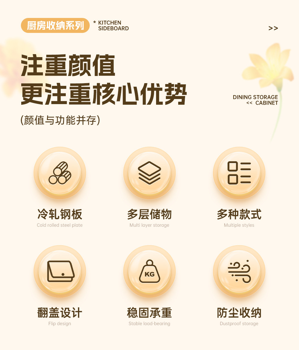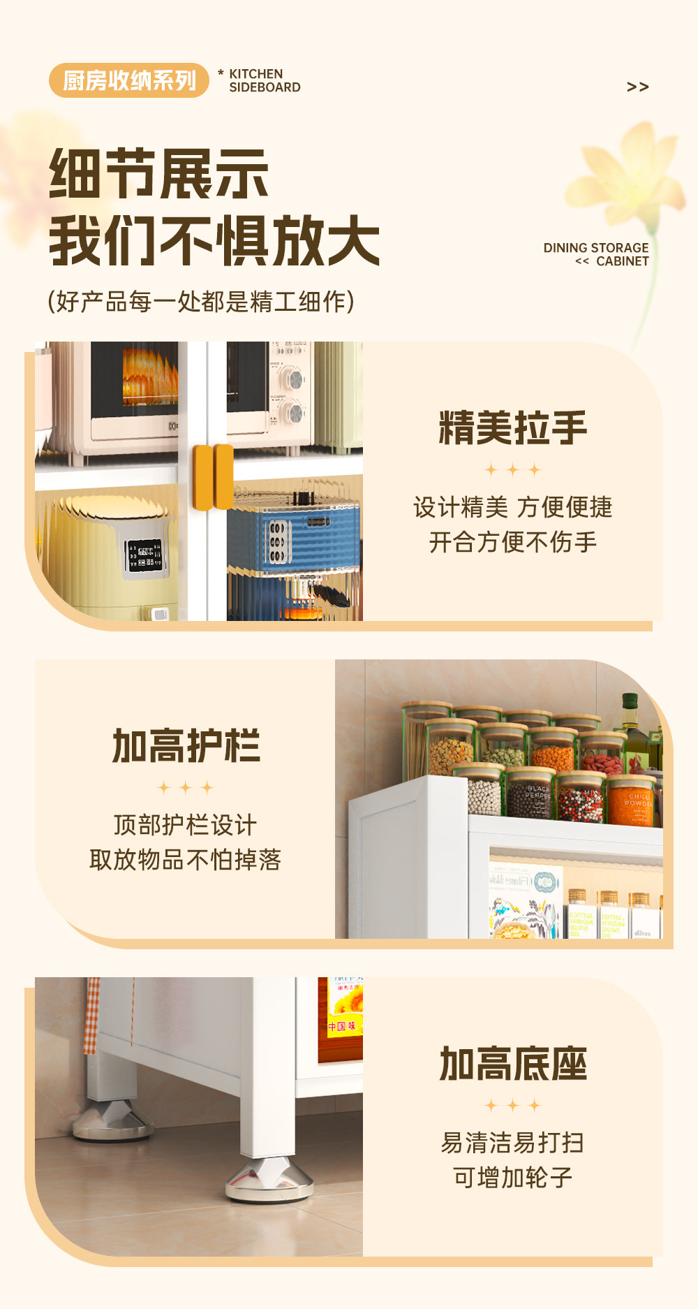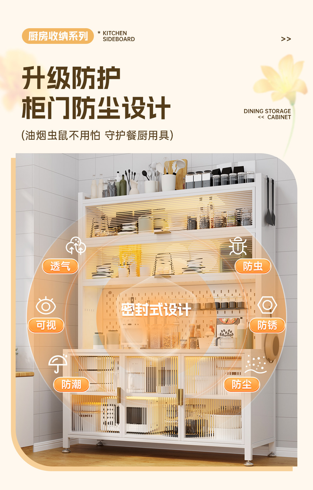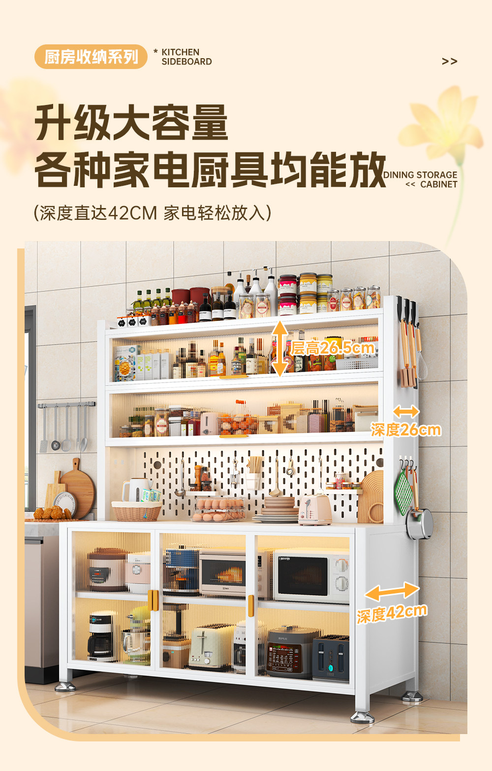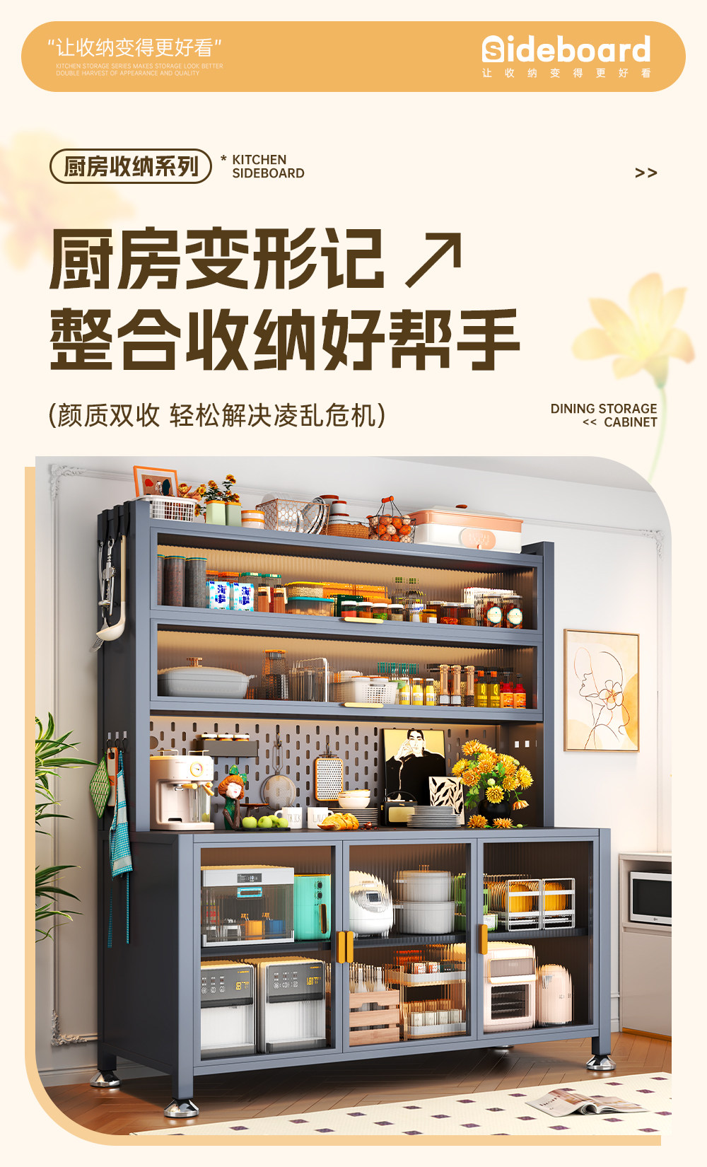 주방 보관 사이드 보드 다층 대용량 저장 랙 전자 레인지 저장 캐비닛 방진 및 방오 보관 캐비닛스토어 가기