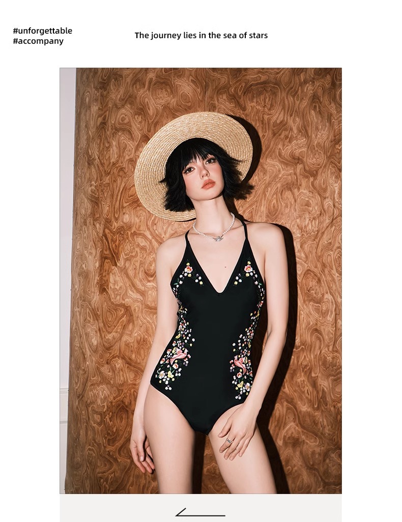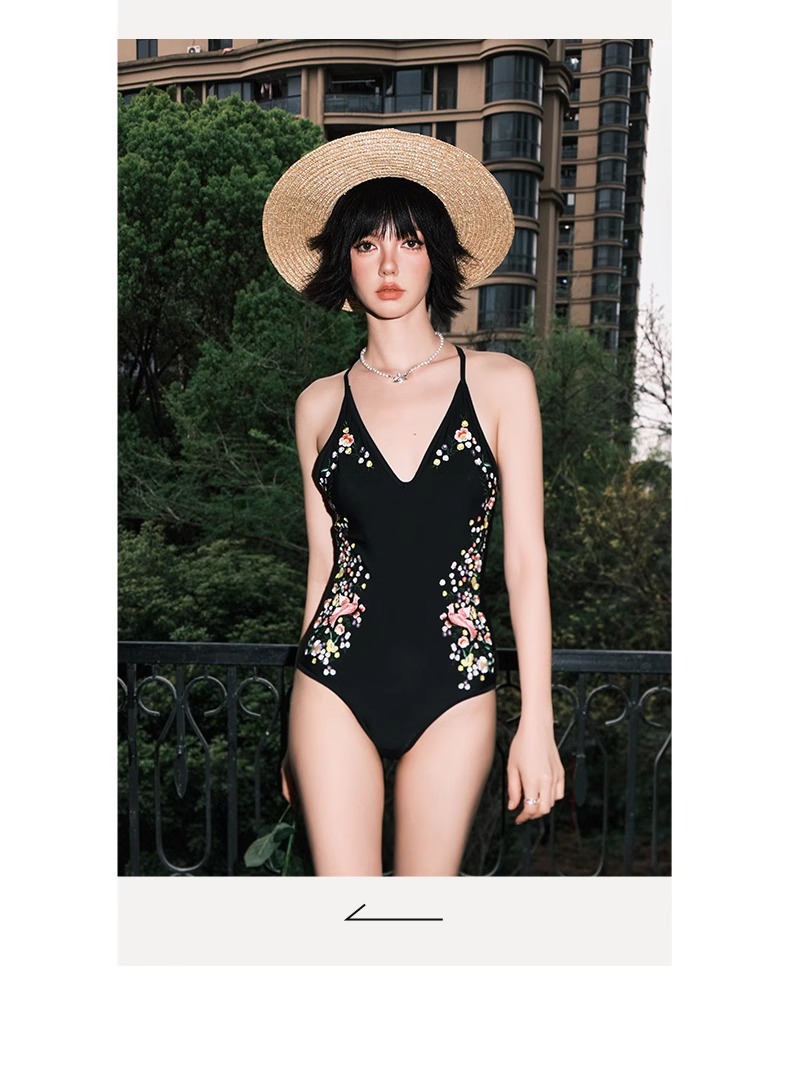 블랙 V 넥 섹시한 온천 원피스 하이 엔드 수영복 여성의 2024 새로운 폭발 배 얇은 태국