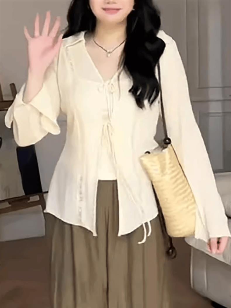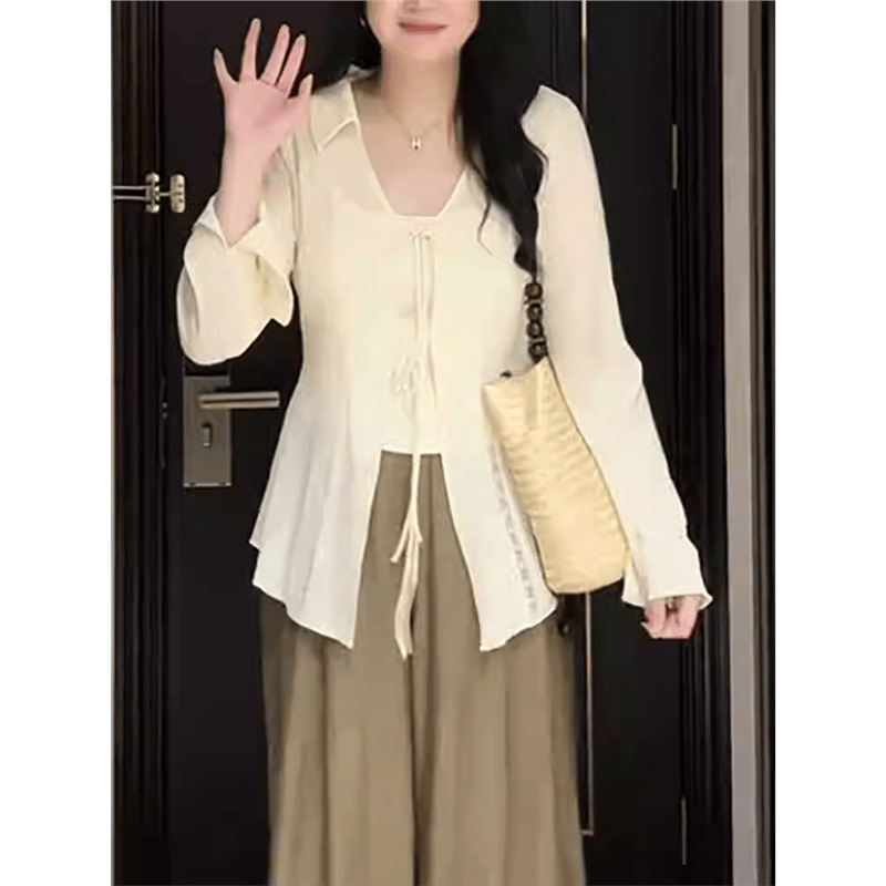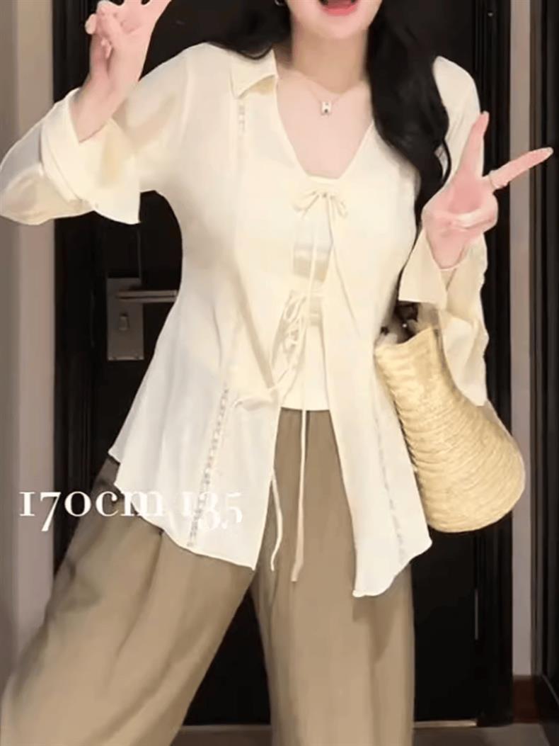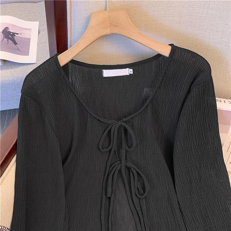 플러스 사이즈 디자인 센스 우아한 셔츠 코트 여성 여름 통통녀 카미솔 외부 카디건 싱글 피스 탑
