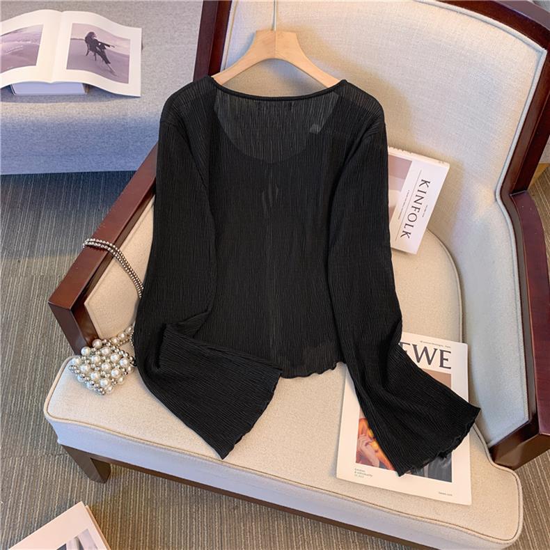플러스 사이즈 디자인 센스 우아한 셔츠 코트 여성 여름 통통녀 카미솔 외부 카디건 싱글 피스 탑스토어 가기