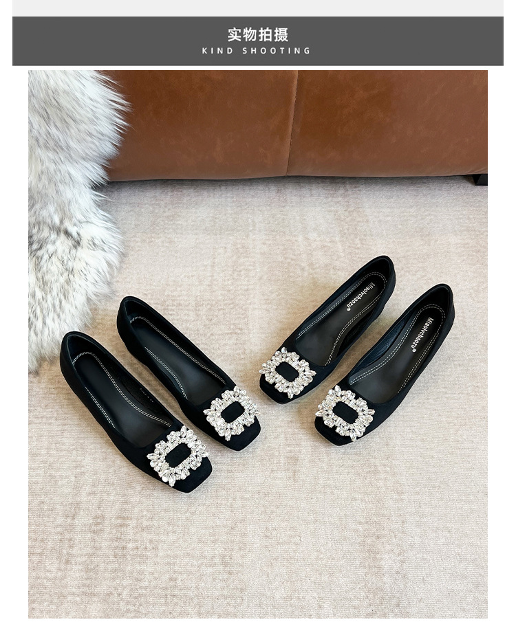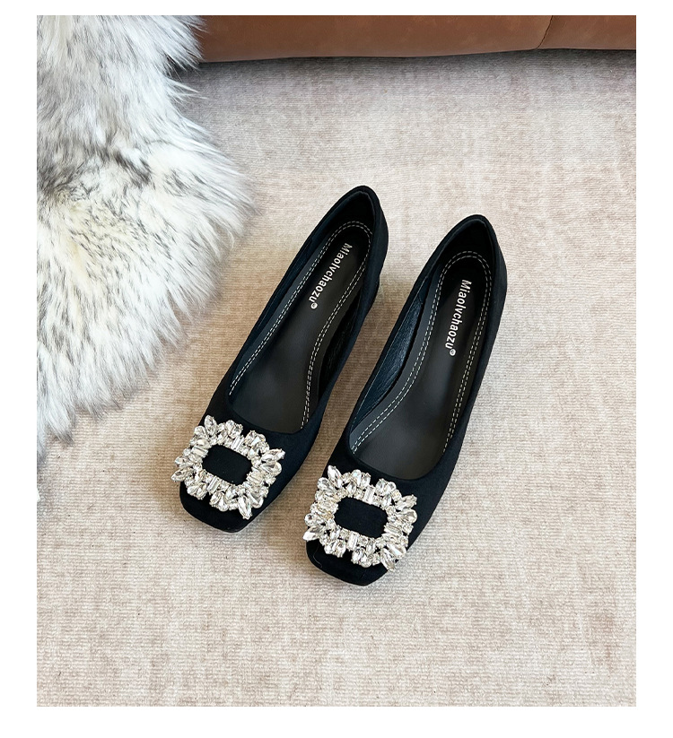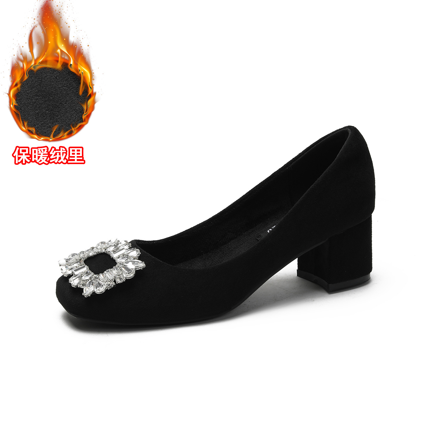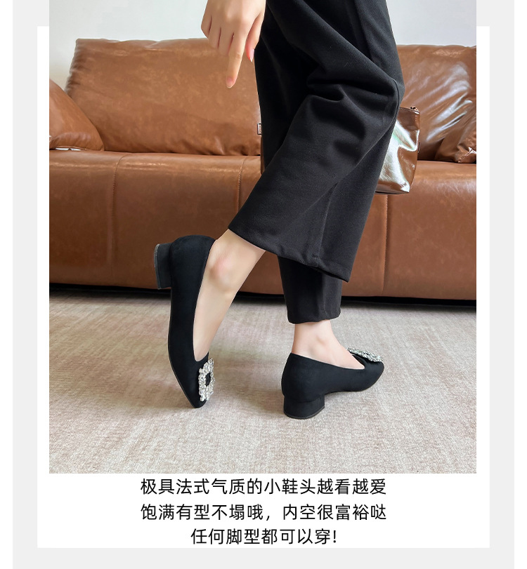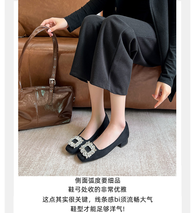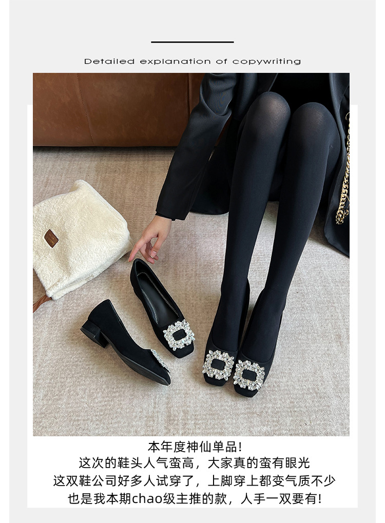 여성용 블랙 하이힐 2026년 봄/가을 신상 두꺼운 굽 블랙 미학 스타일 사각코 워터다이아몬드 여성화 얕은 입구의 전문직용 굵은 굽 싱글 슈즈스토어 가기