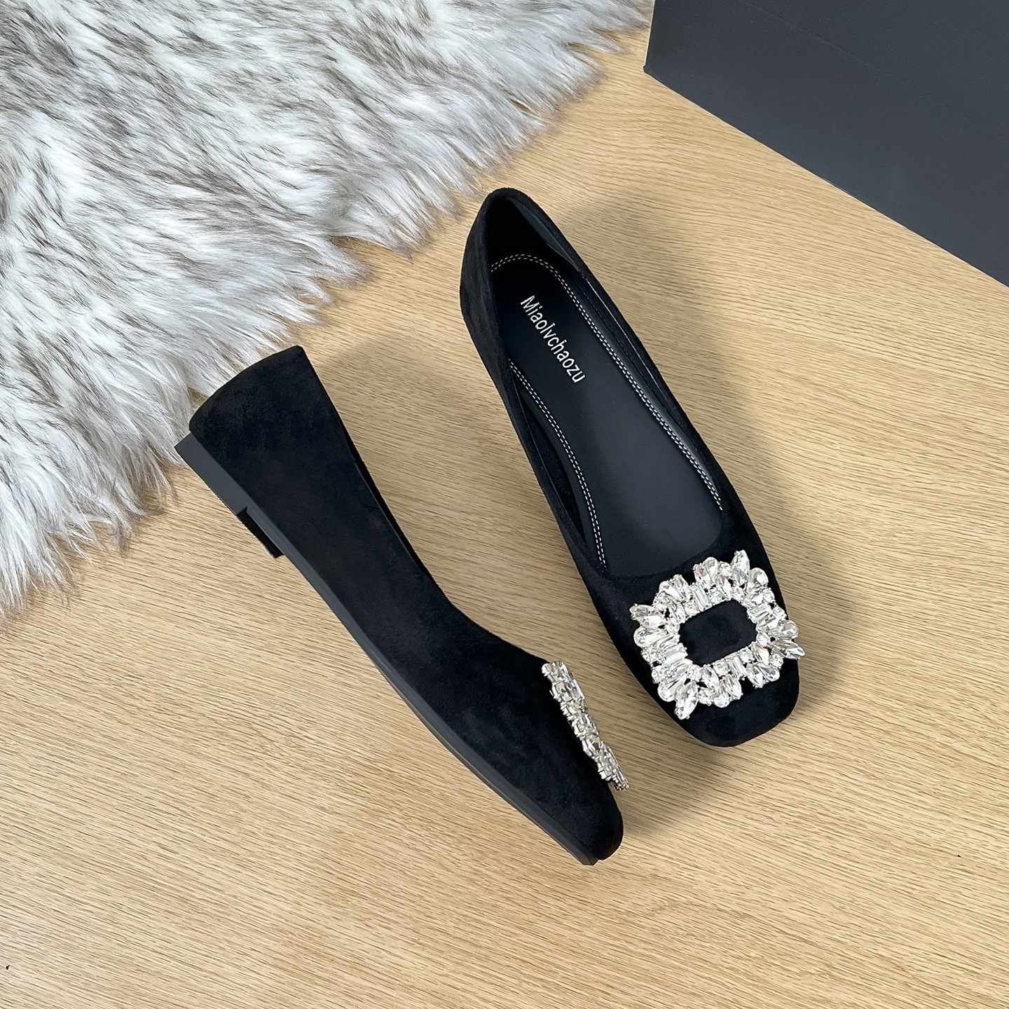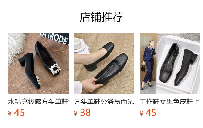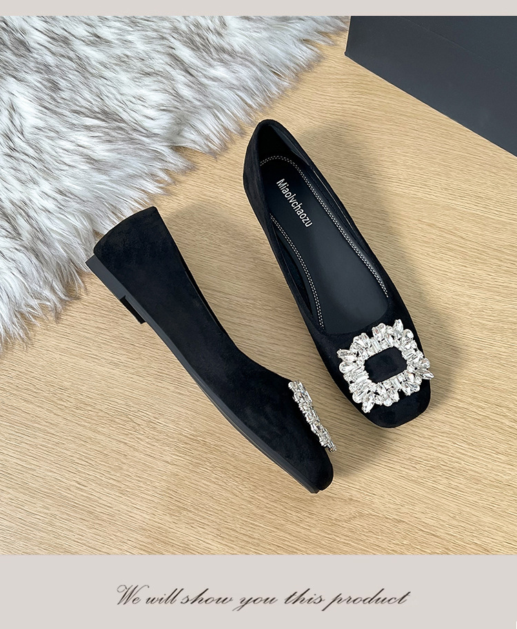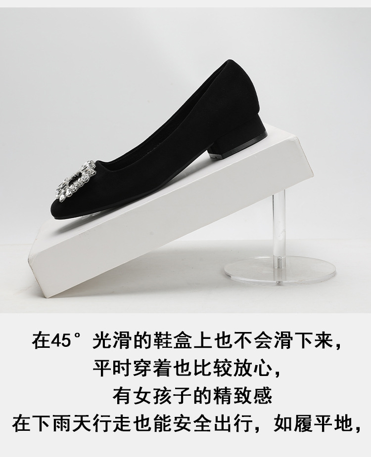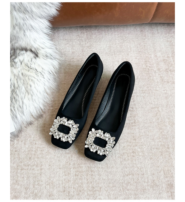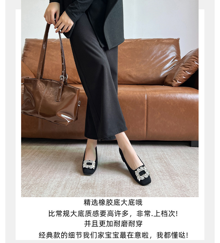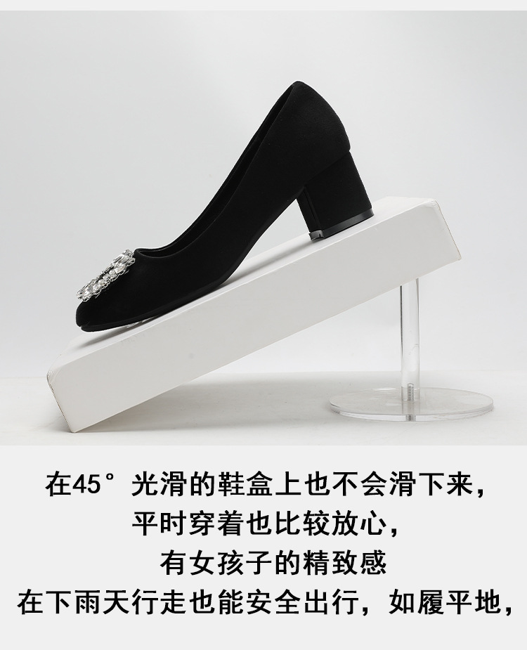 여성용 블랙 하이힐 2026년 봄/가을 신상 두꺼운 굽 블랙 미학 스타일 사각코 워터다이아몬드 여성화 얕은 입구의 전문직용 굵은 굽 싱글 슈즈스토어 가기