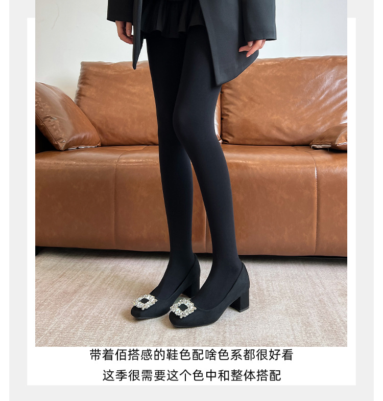 여성용 블랙 하이힐 2026년 봄/가을 신상 두꺼운 굽 블랙 미학 스타일 사각코 워터다이아몬드 여성화 얕은 입구의 전문직용 굵은 굽 싱글 슈즈