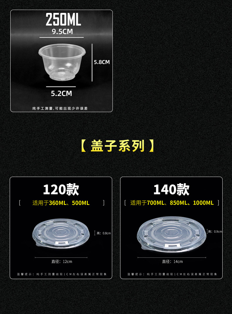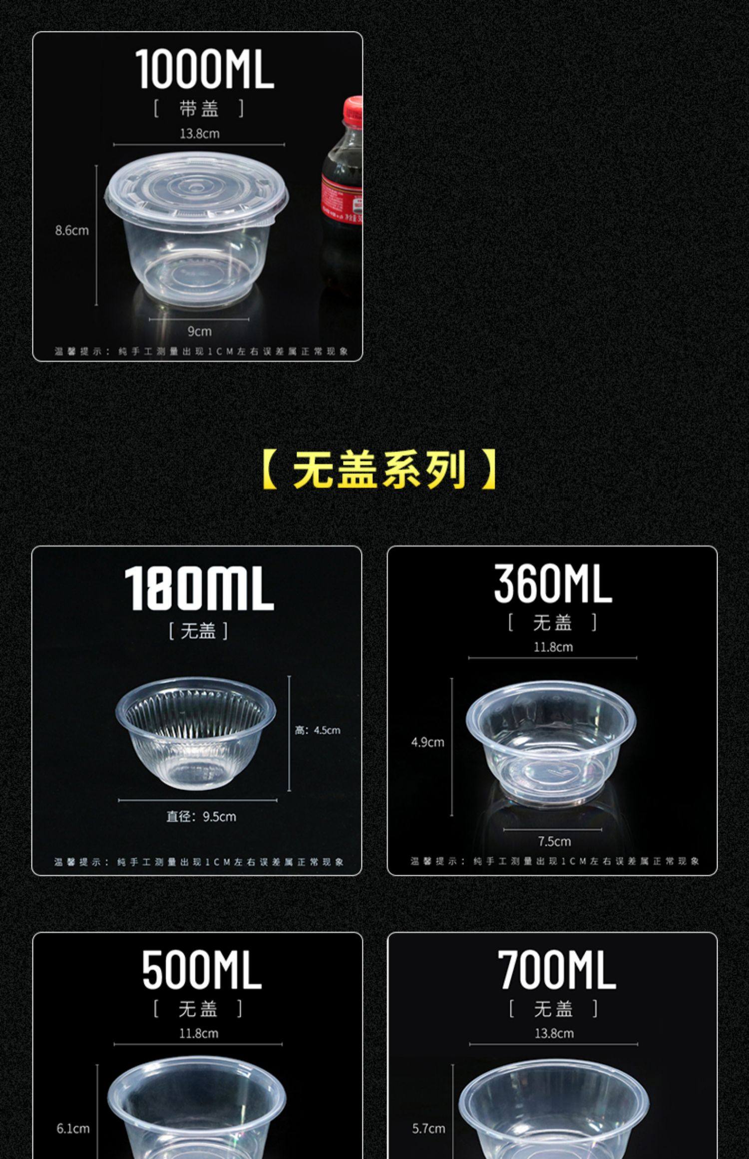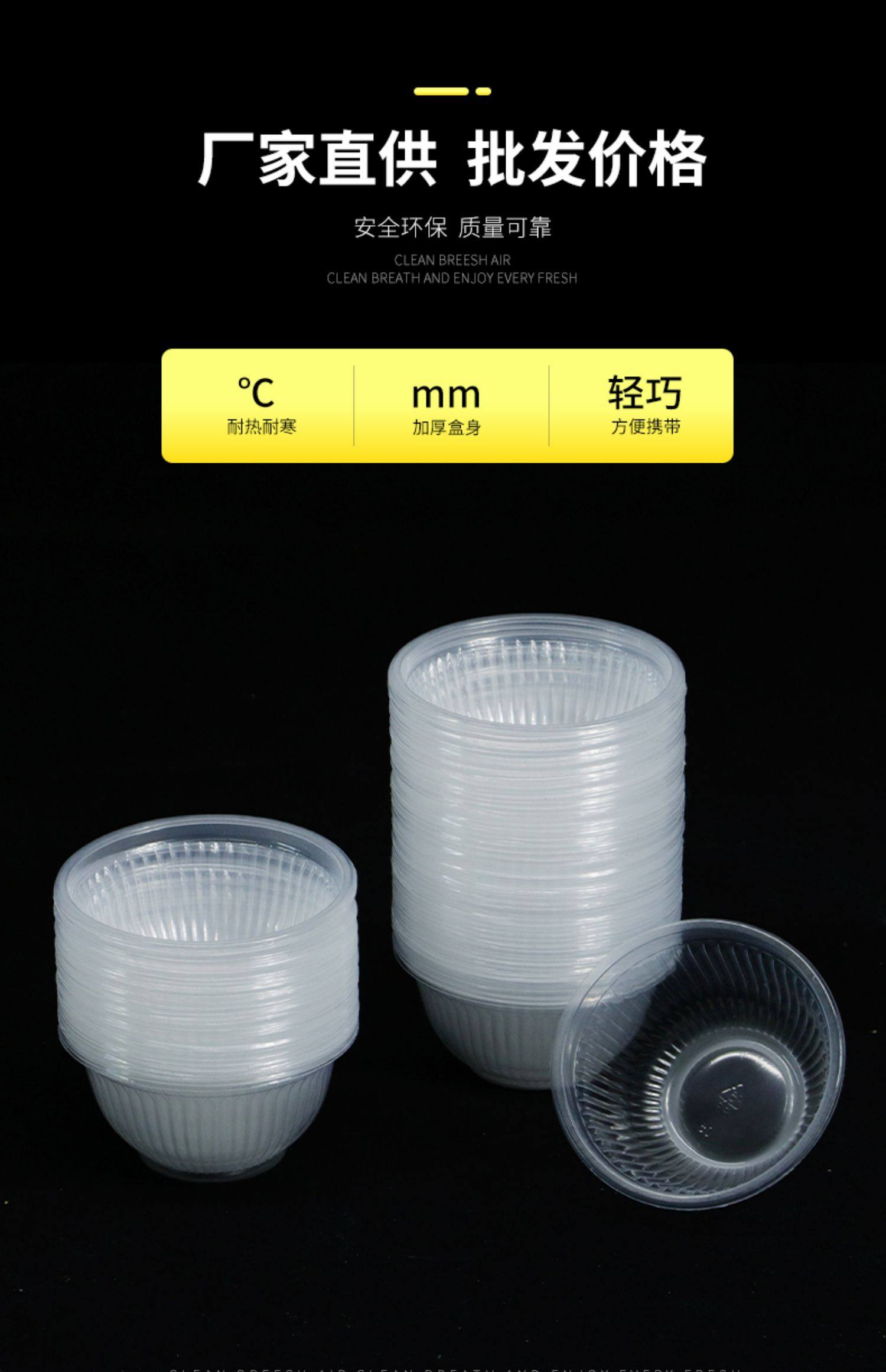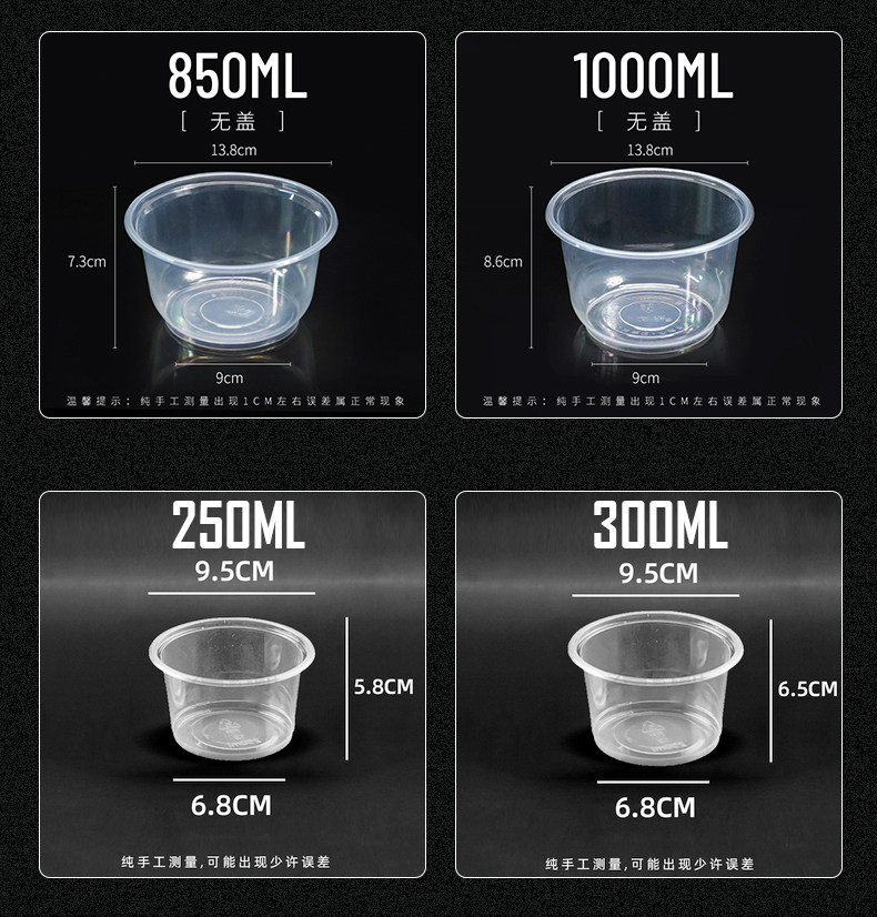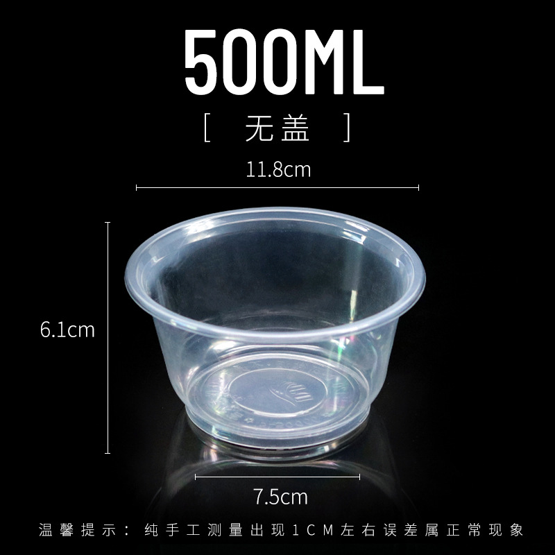 두꺼운 일회용 플라스틱 테이크 아웃 포장 상자 투명 식초 그릇 컨디셔닝 그릇 시도 그릇 수프 그릇