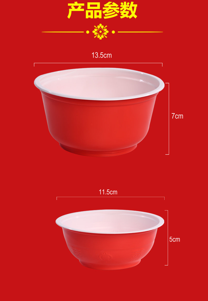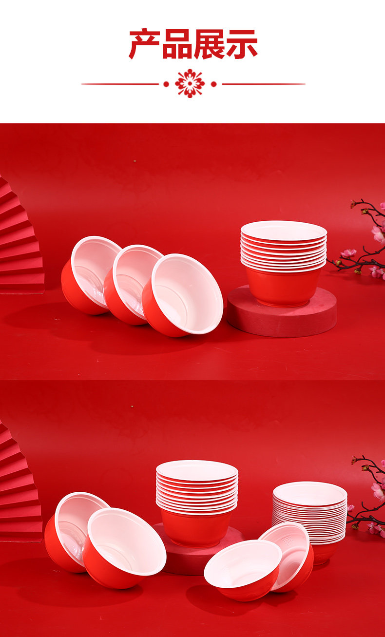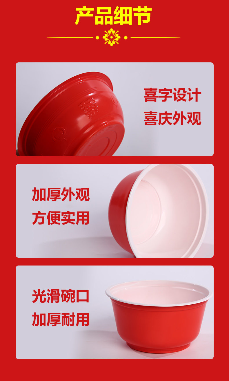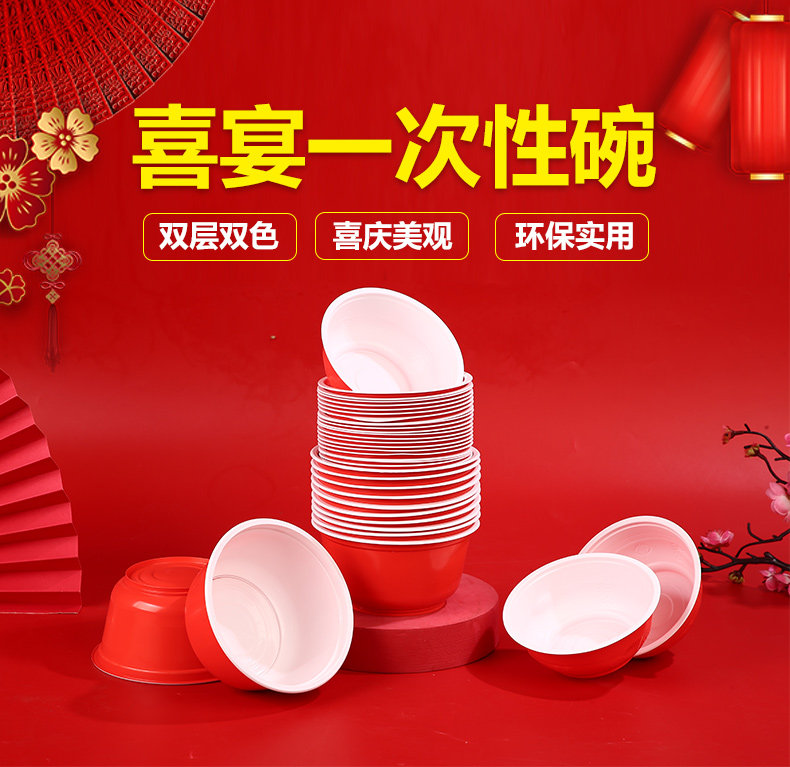 일회용 레드 볼 플라스틱 그릇 웨딩 농촌 축제 해피 캐릭터 가정용 레드 라운드 두꺼운 부티크스토어 가기