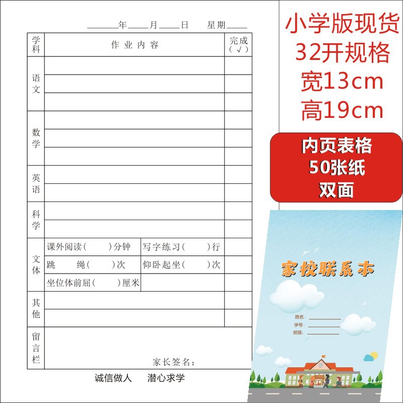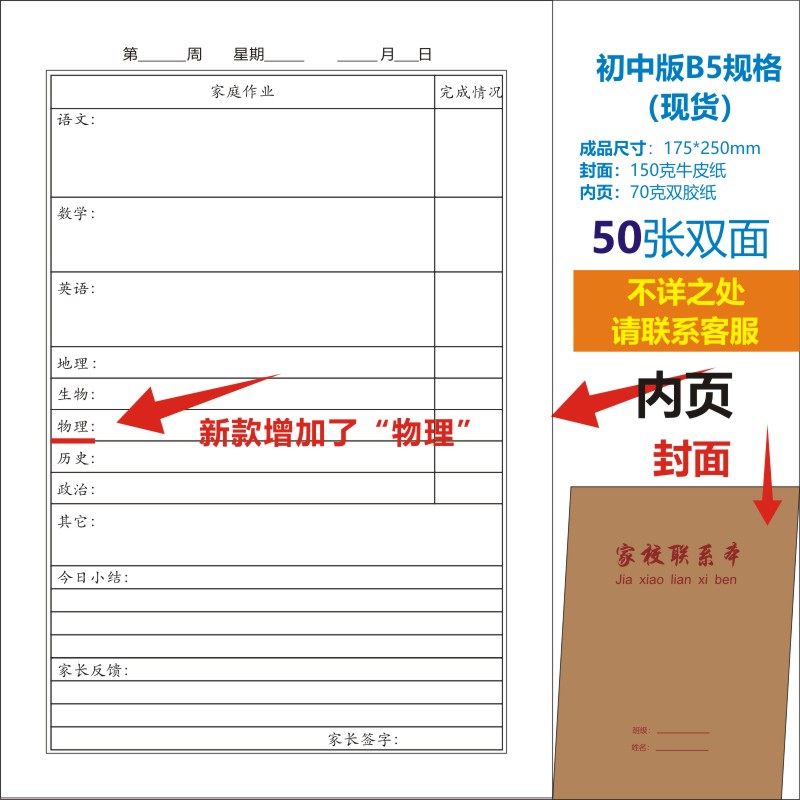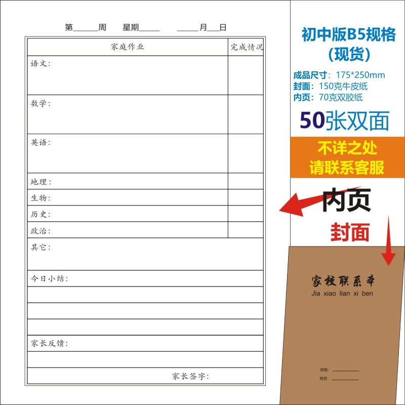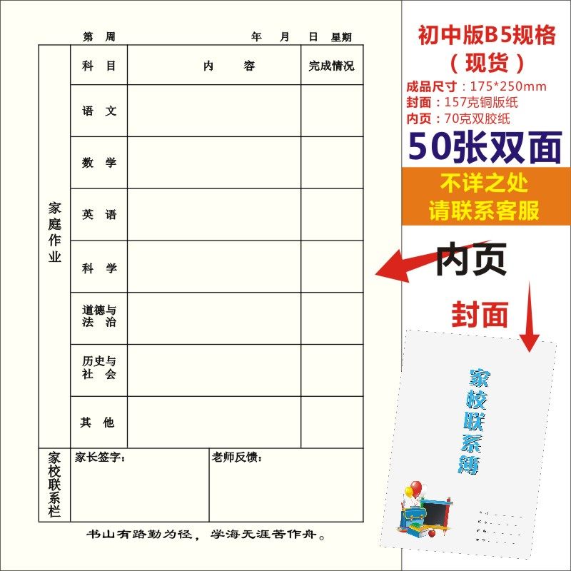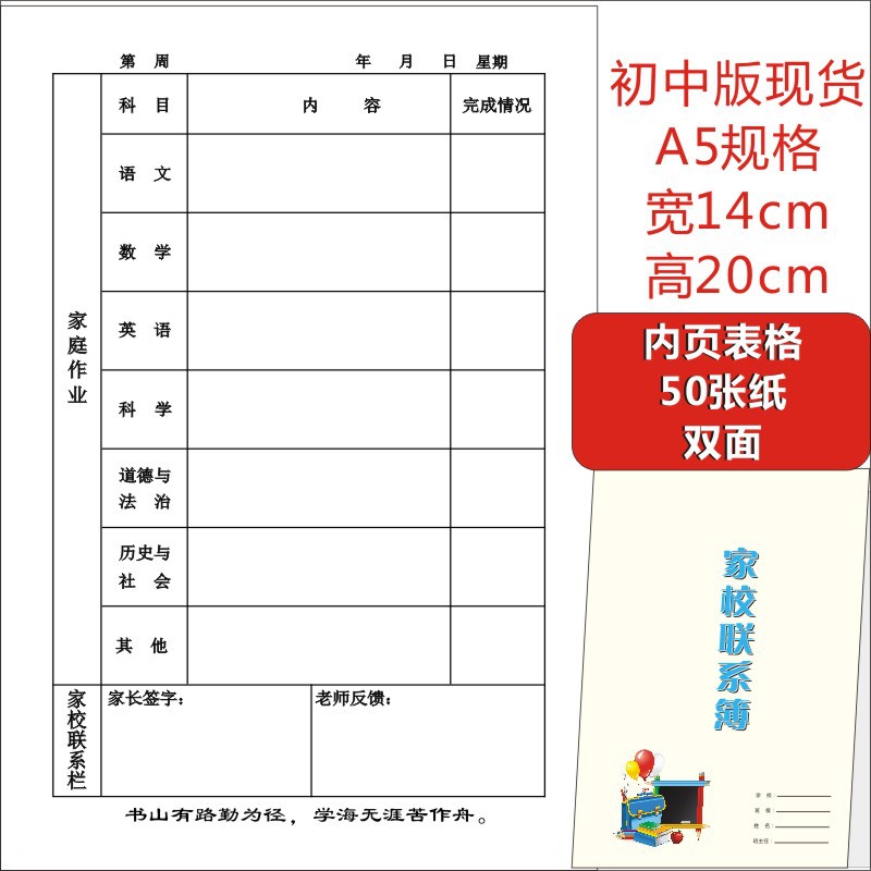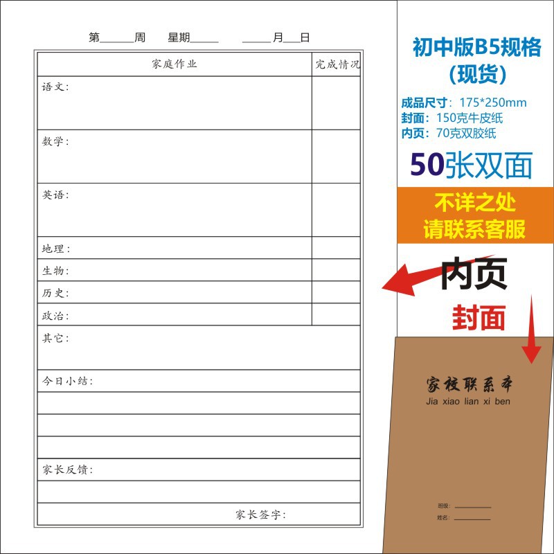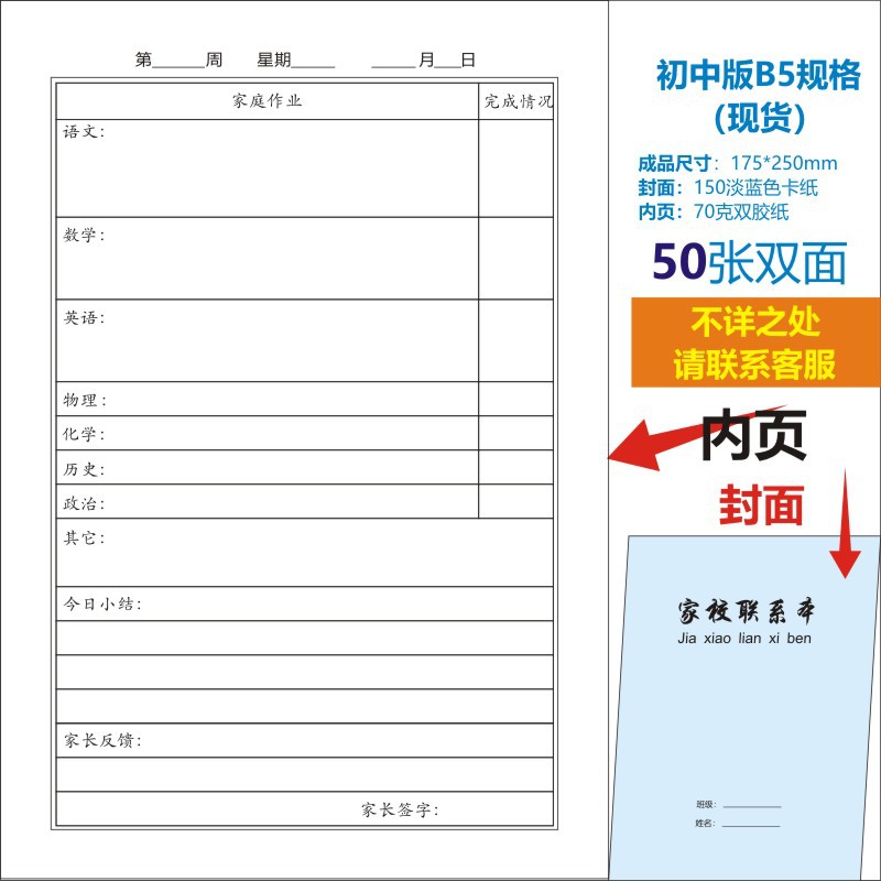 B5 중학교 가정-학교 연락처 도서 작업 성장 매뉴얼 방과 후 가정 기록 도서 연락북스토어 가기