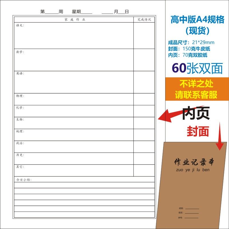 • 고등학교 숙제 기록장 A4 준비 재고