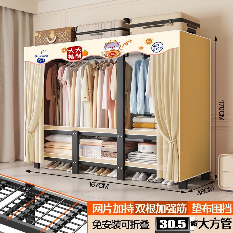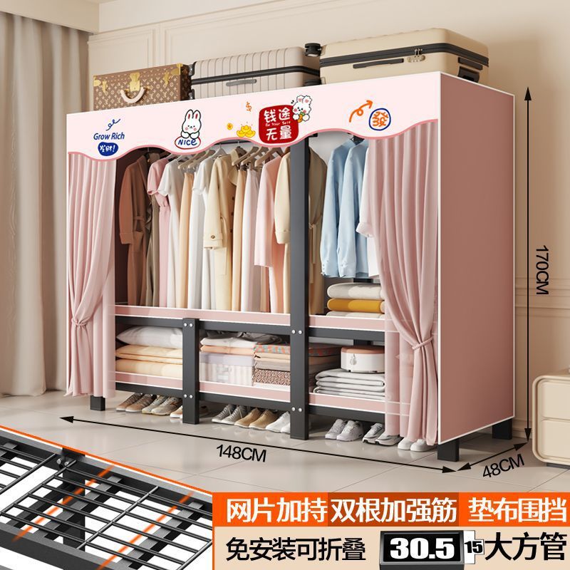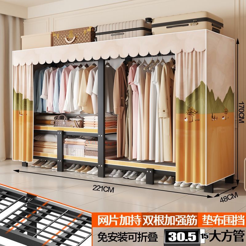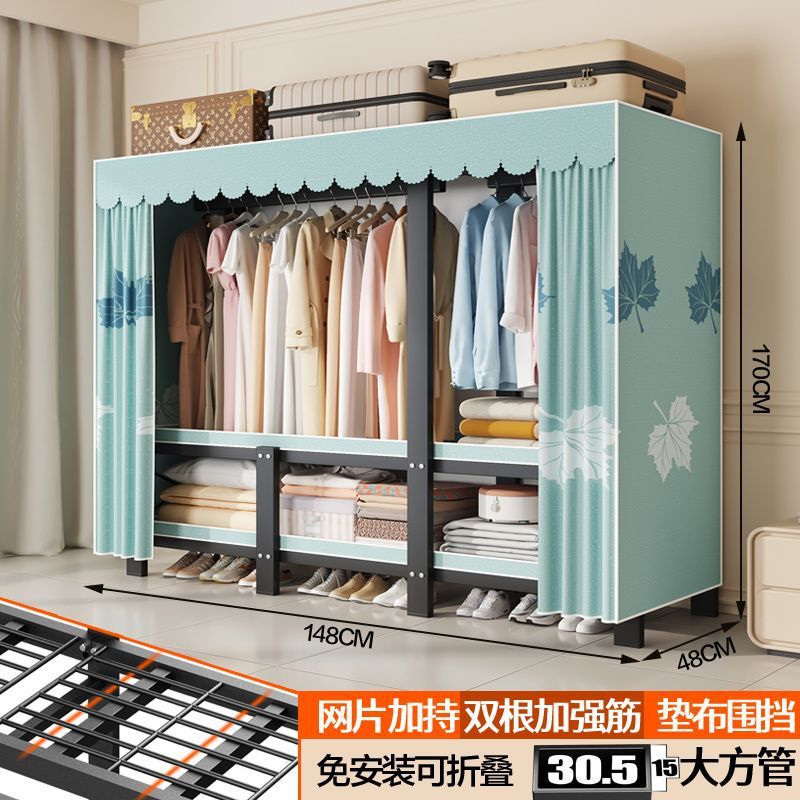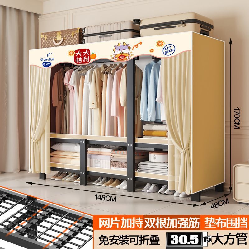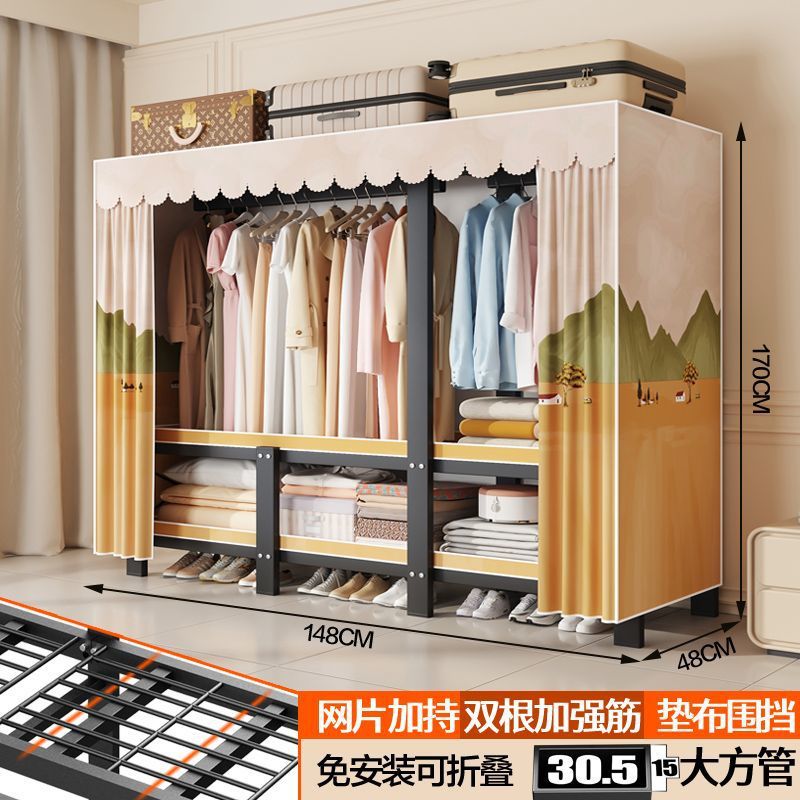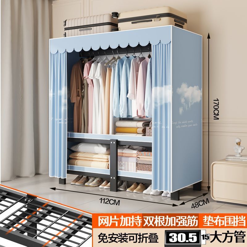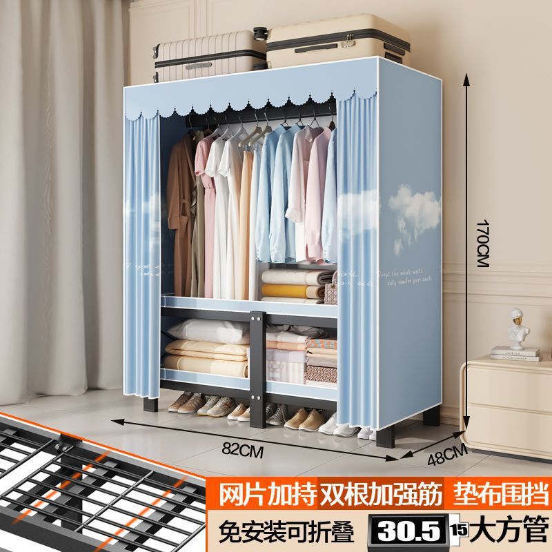 Yf3 설치-무료 간단한 옷장 홈 침실 접히는 천 옷장 임대 방을 위한 튼튼한 저장 옷장 강철 프레임