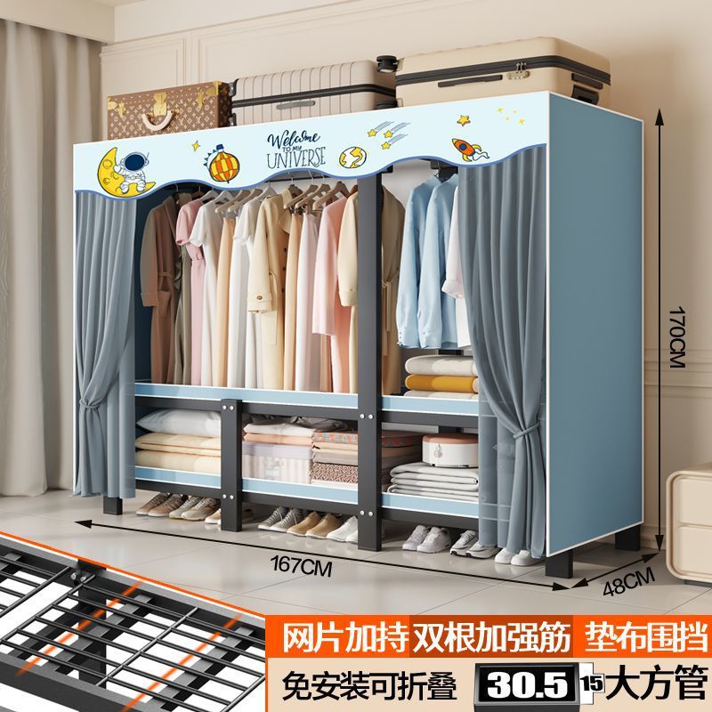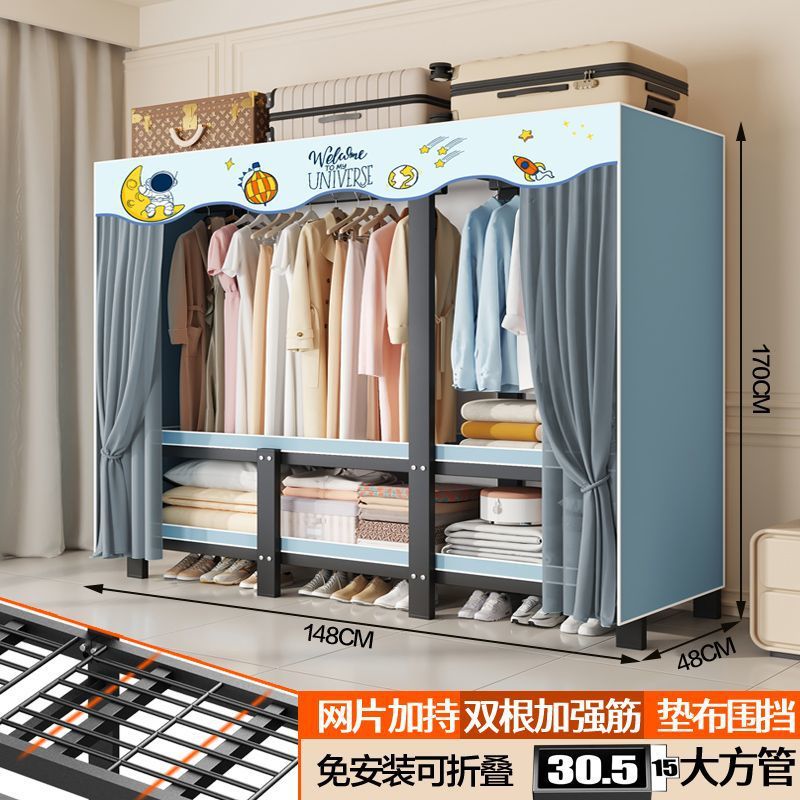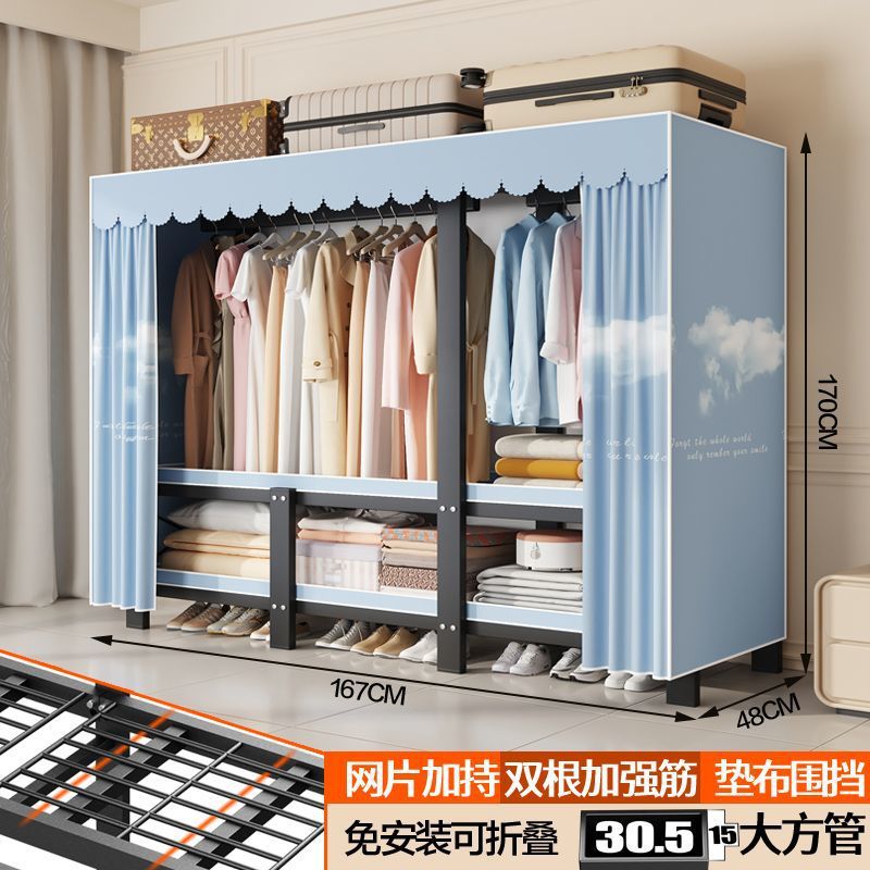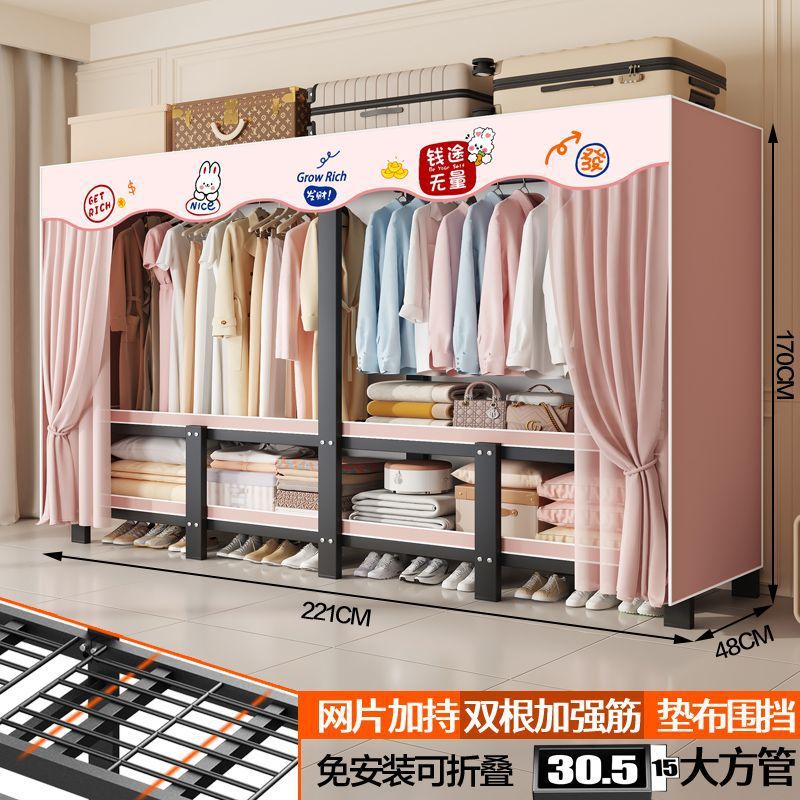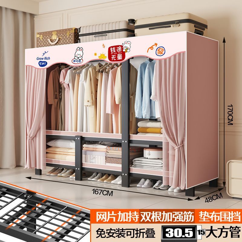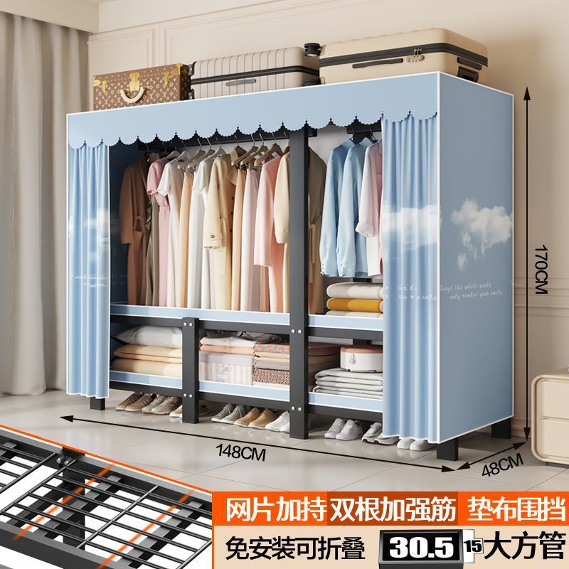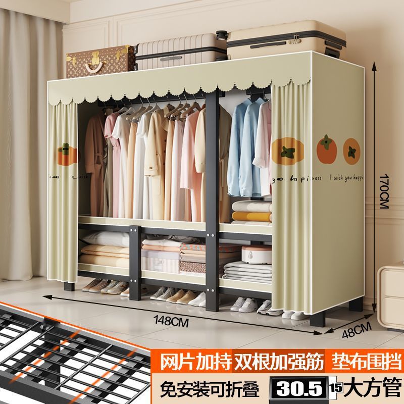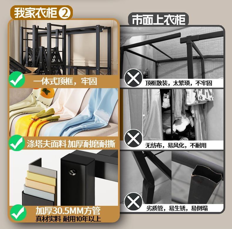 Yf3 설치-무료 간단한 옷장 홈 침실 접히는 천 옷장 임대 방을 위한 튼튼한 저장 옷장 강철 프레임