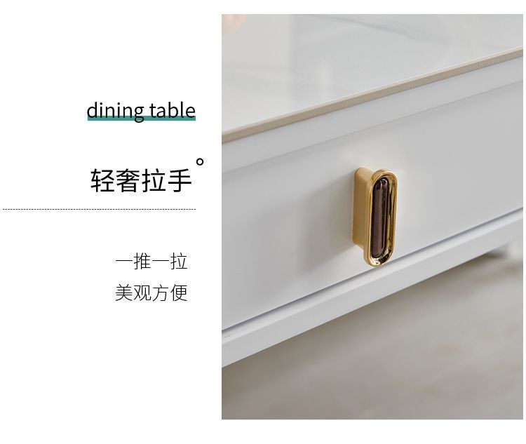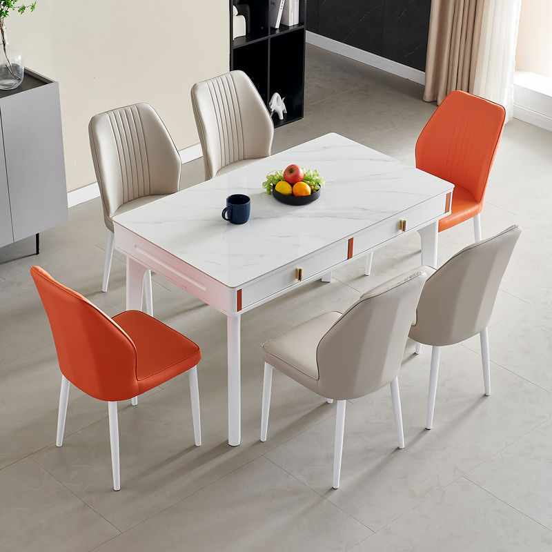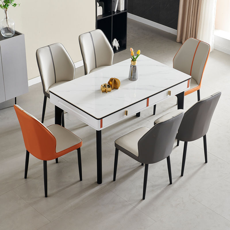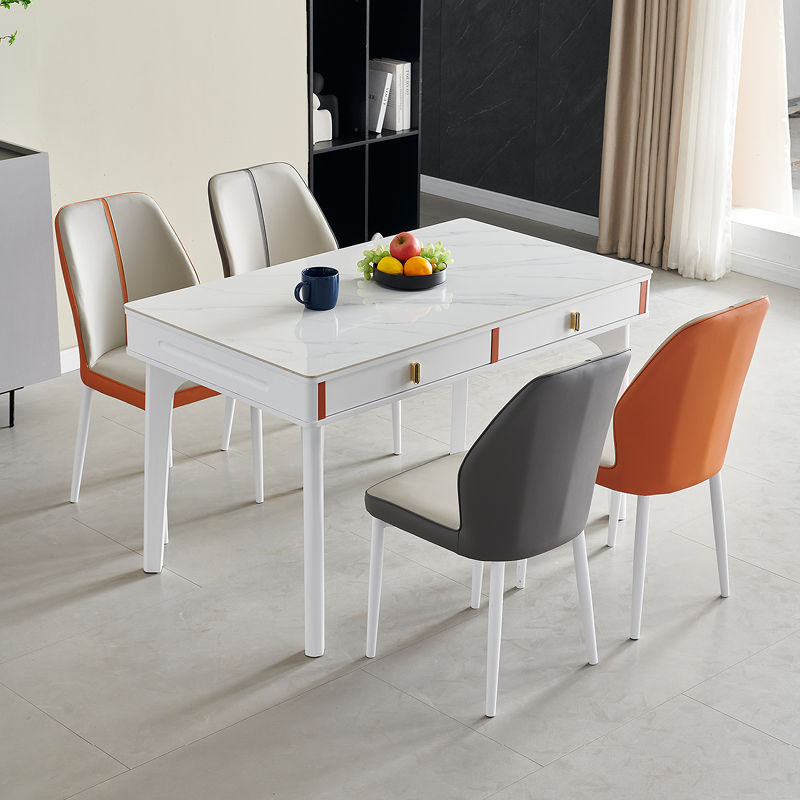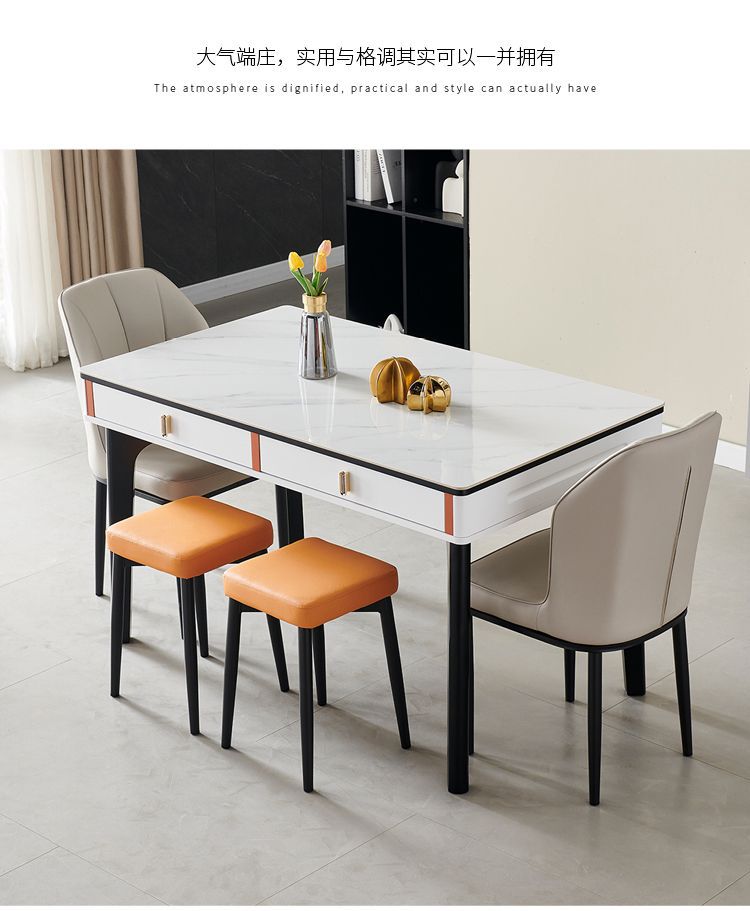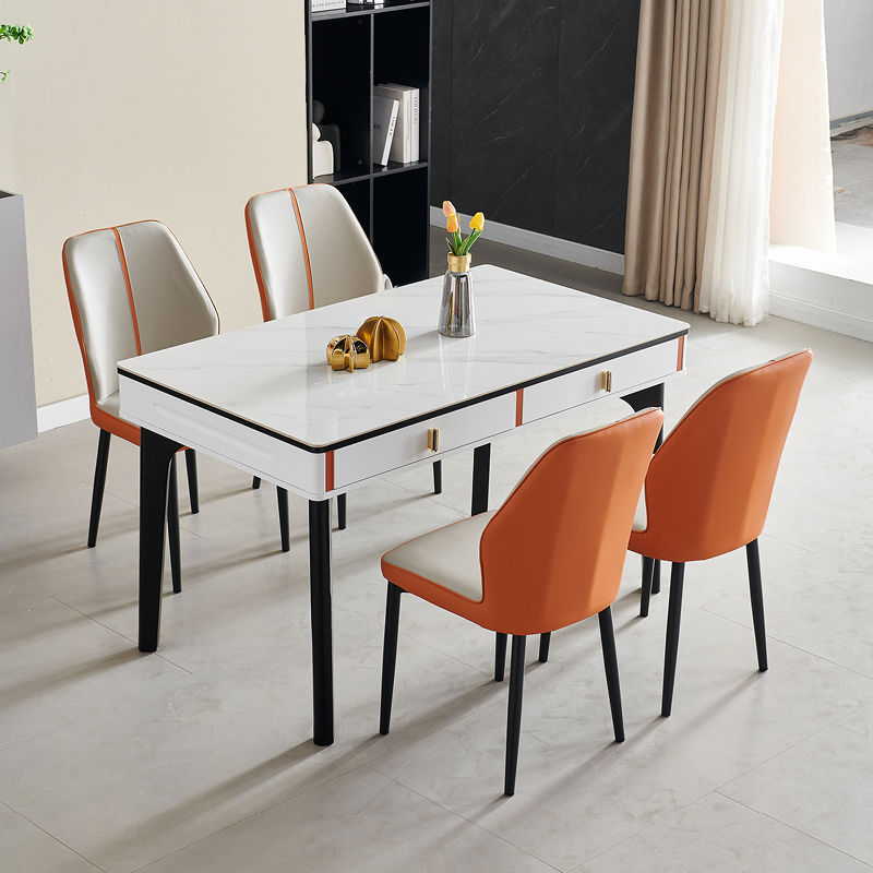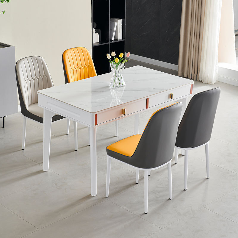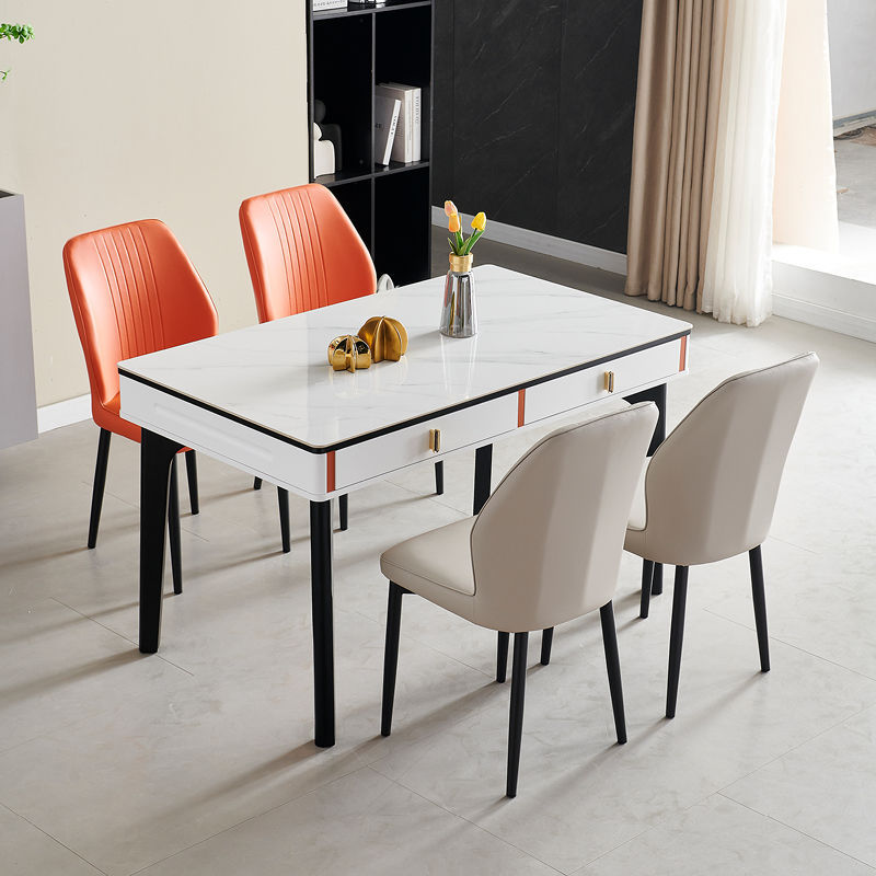현대 간단한 단단한 나무 바위 보드 식탁 및 의자 조합 저장 서랍 가정용 직사각형 크림 스타일 식탁