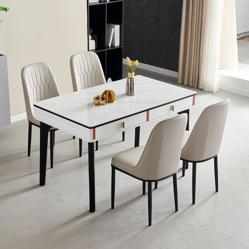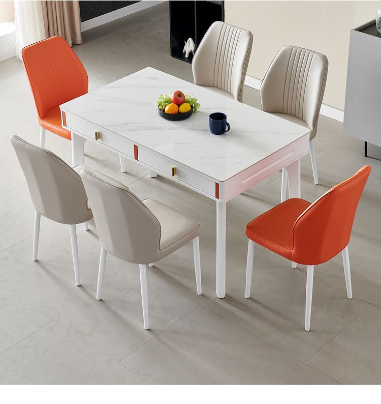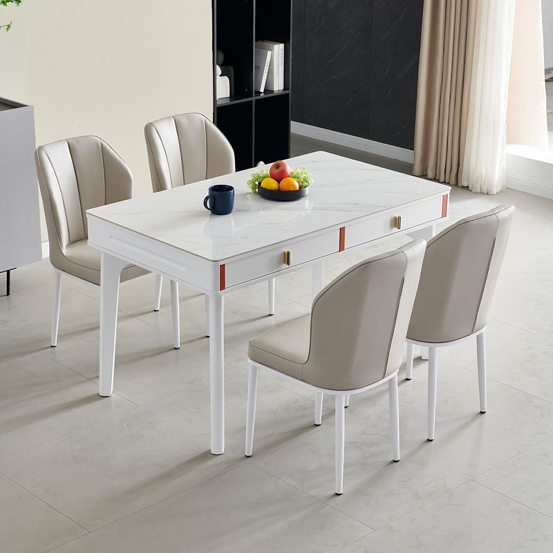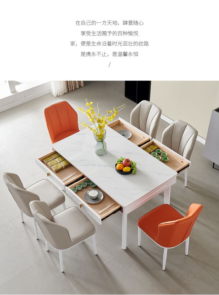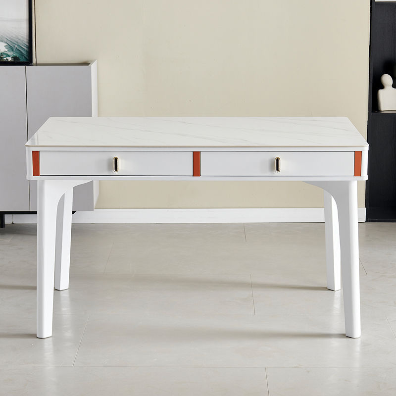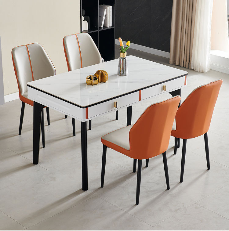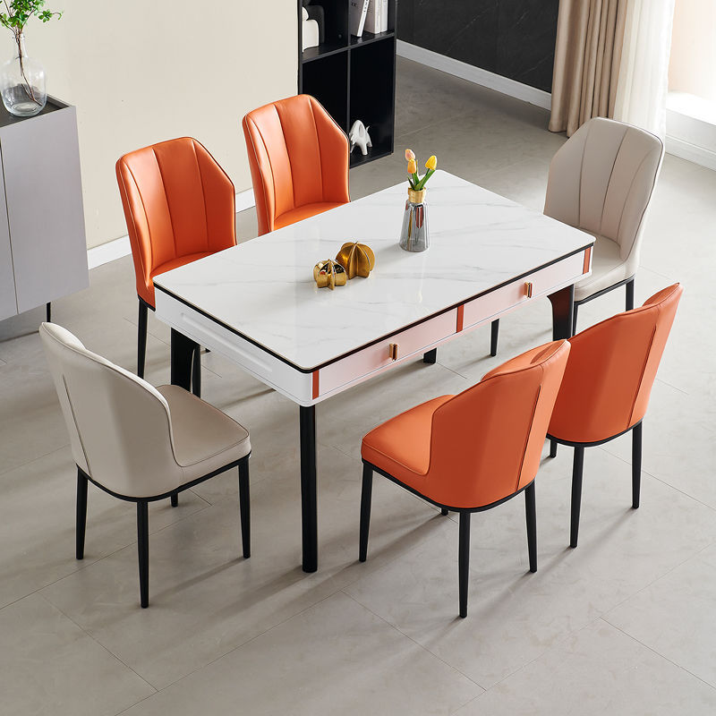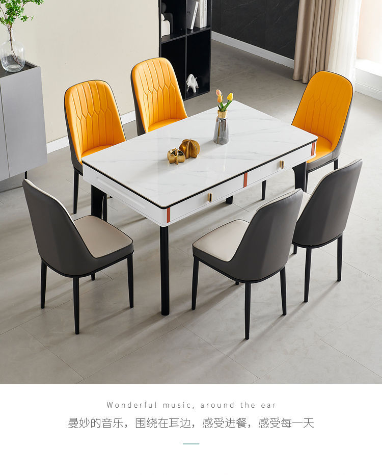 현대 간단한 단단한 나무 바위 보드 식탁 및 의자 조합 저장 서랍 가정용 직사각형 크림 스타일 식탁