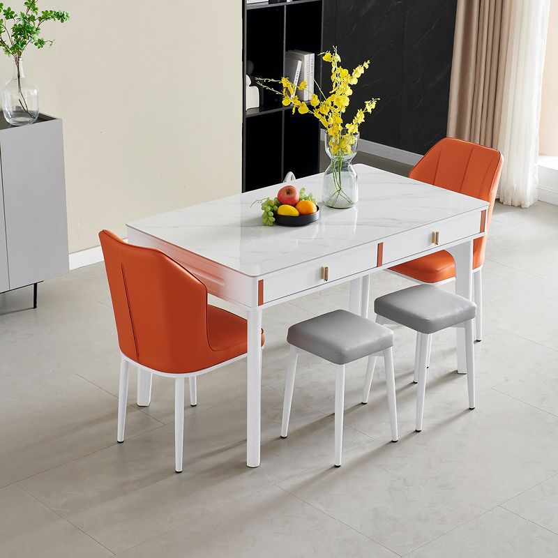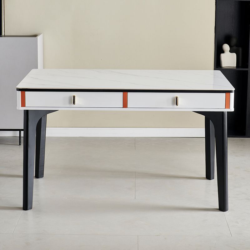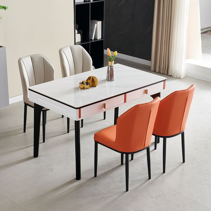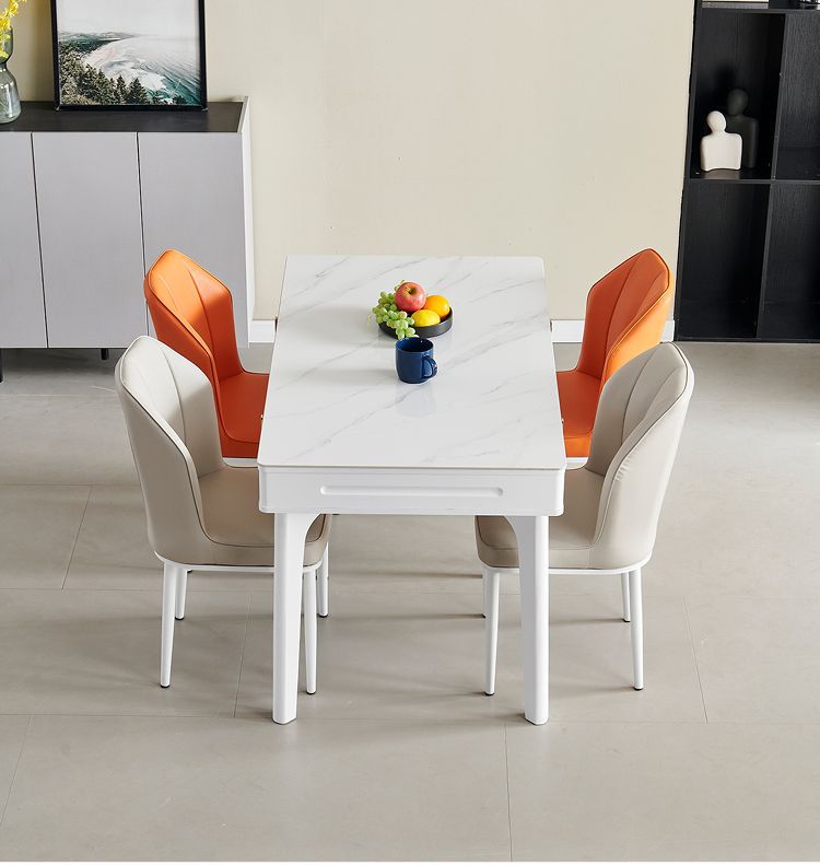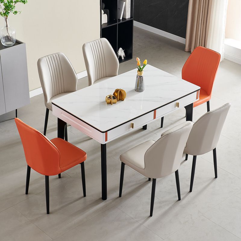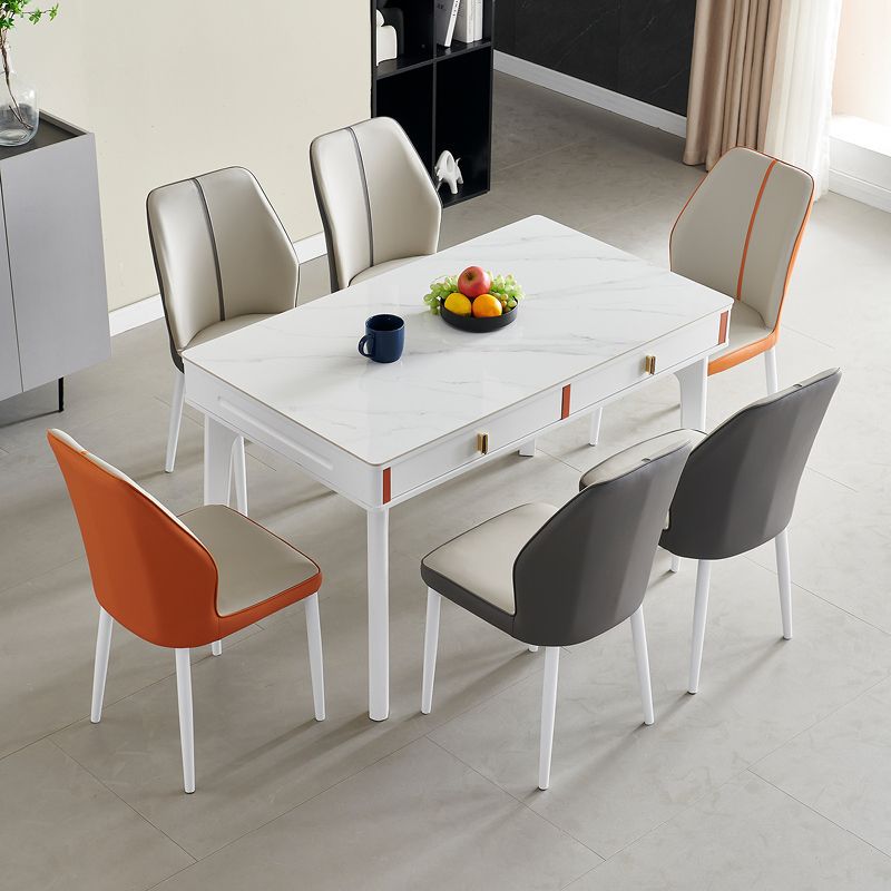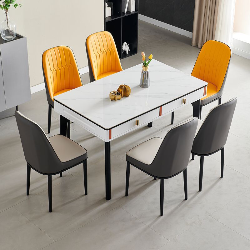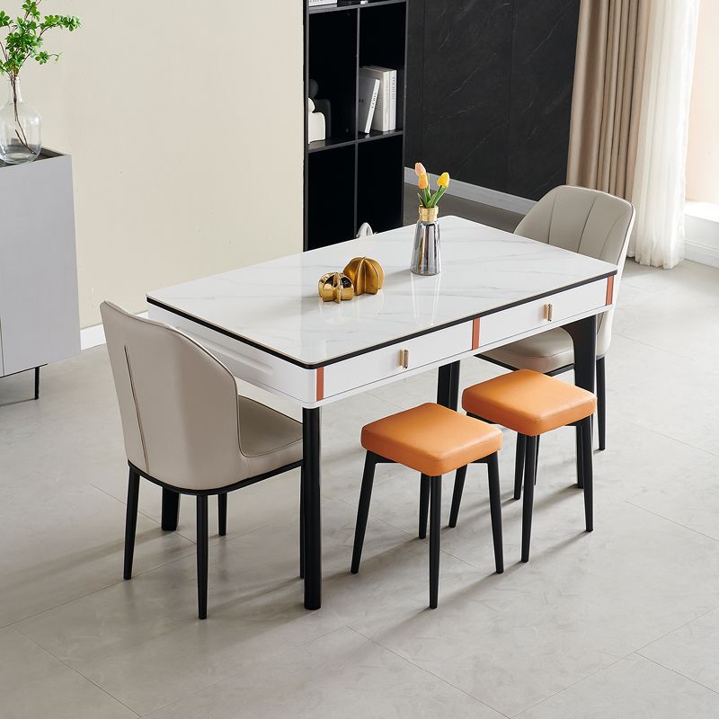 현대 간단한 단단한 나무 바위 보드 식탁 및 의자 조합 저장 서랍 가정용 직사각형 크림 스타일 식탁