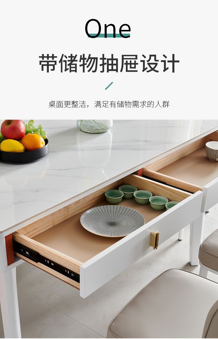 현대 간단한 단단한 나무 바위 보드 식탁 및 의자 조합 저장 서랍 가정용 직사각형 크림 스타일 식탁스토어 가기
