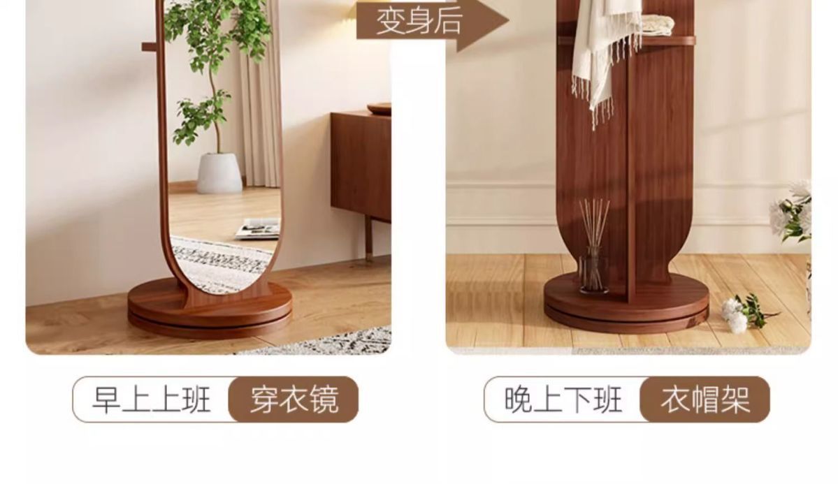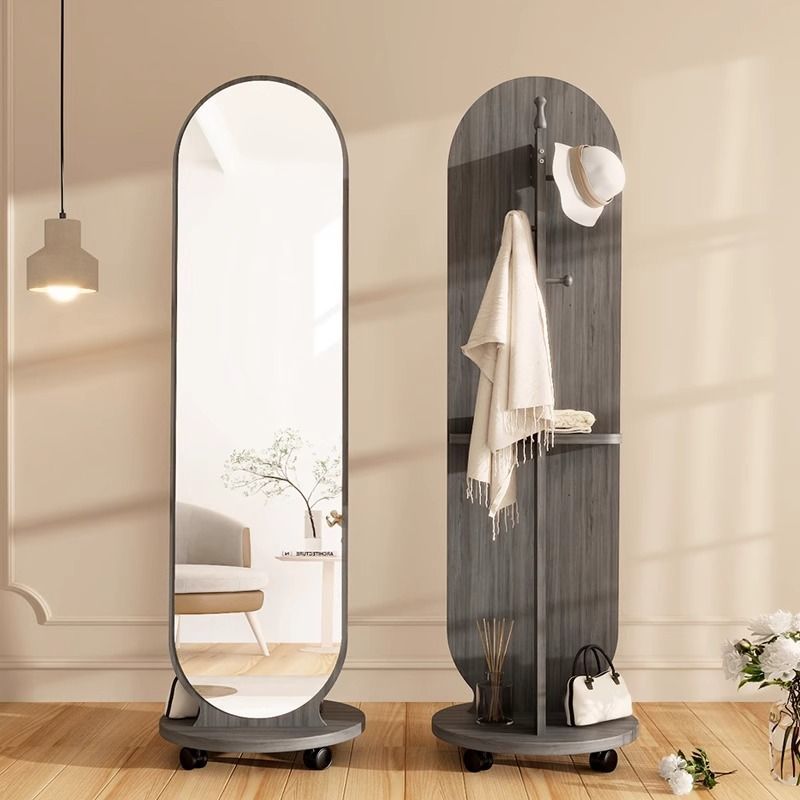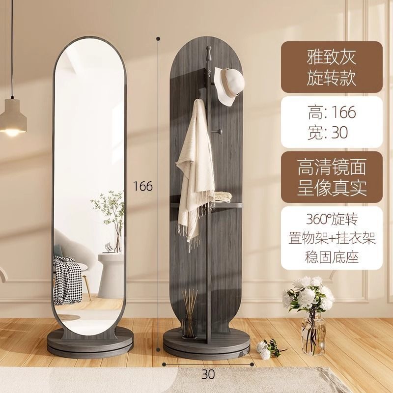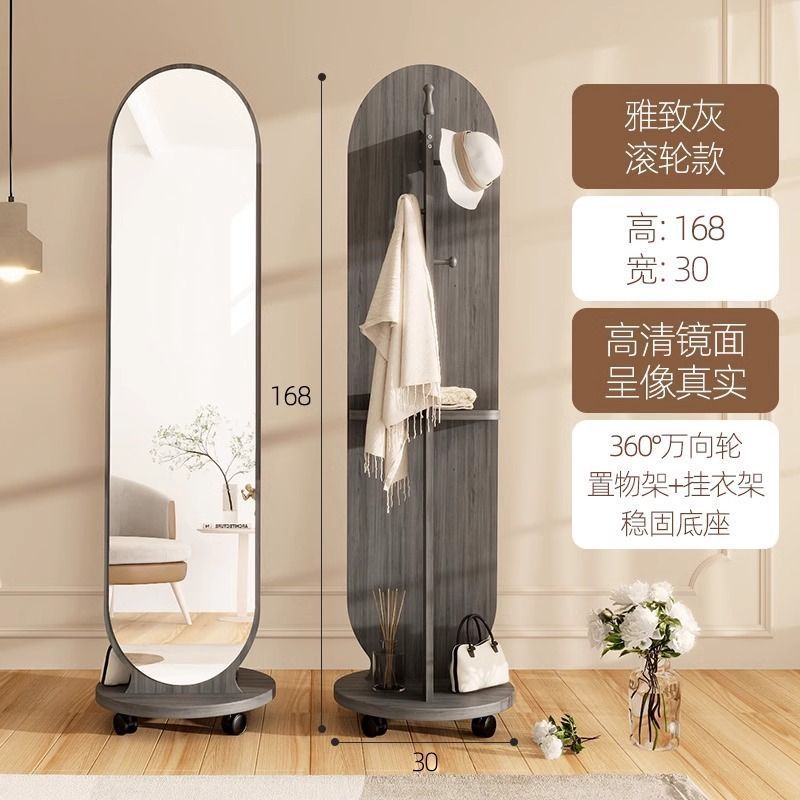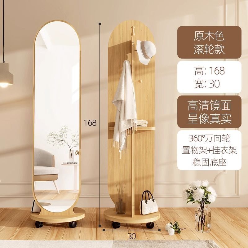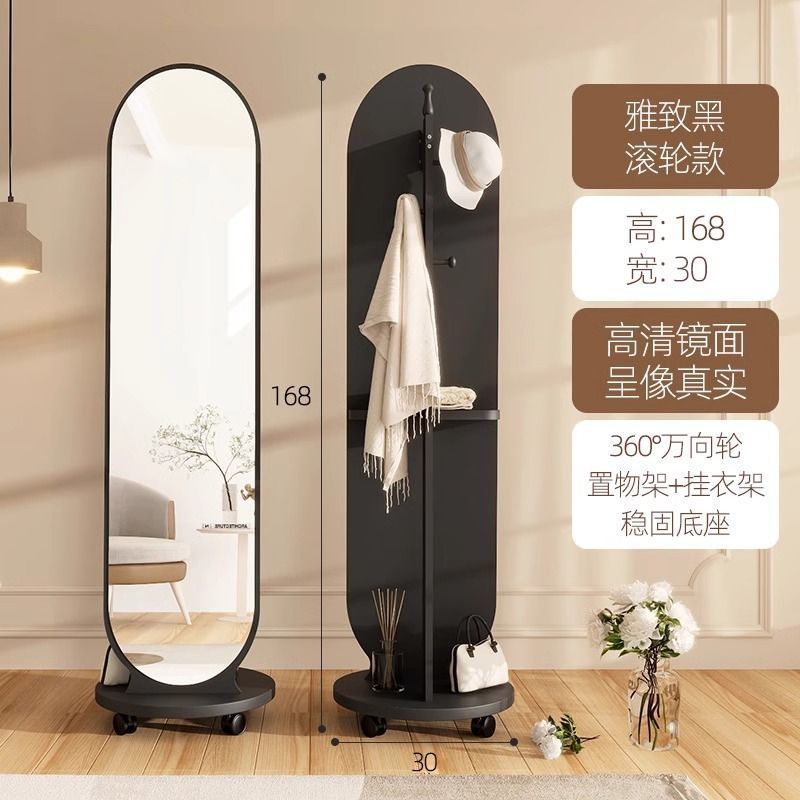 [666 컬렉션] 회전 드레싱 바닥 거울 가구 움직일 수 있는 전신 옷 후드 교수형 옷 보관 랙