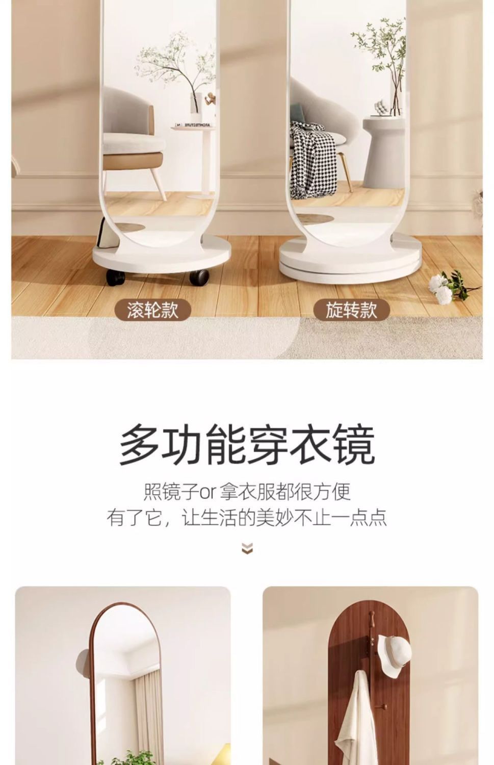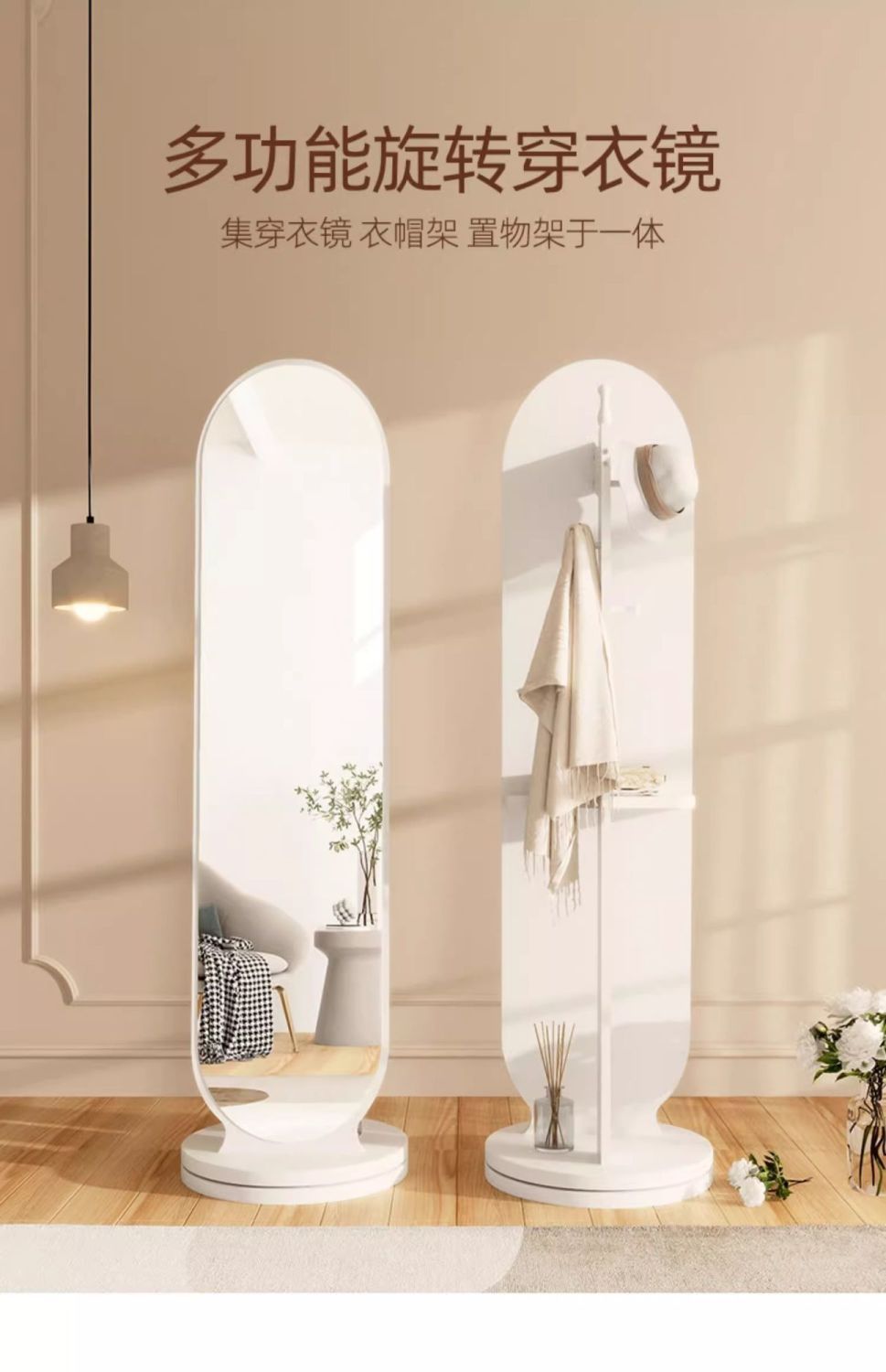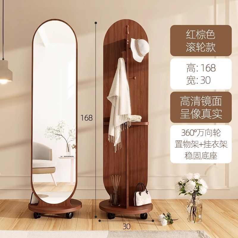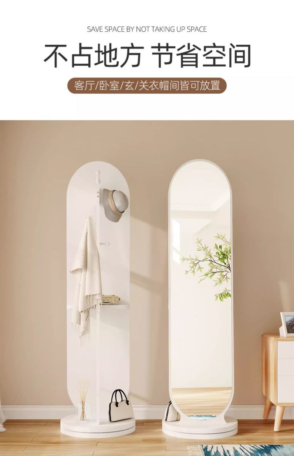 [666 컬렉션] 회전 드레싱 바닥 거울 가구 움직일 수 있는 전신 옷 후드 교수형 옷 보관 랙스토어 가기