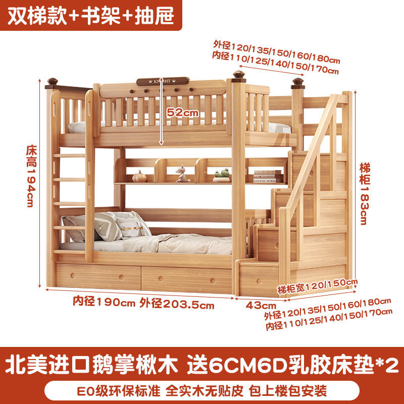 • 이중 사다리 모델 + 책장 + 이중 서랍, 무료 라텍스 매트리스*2