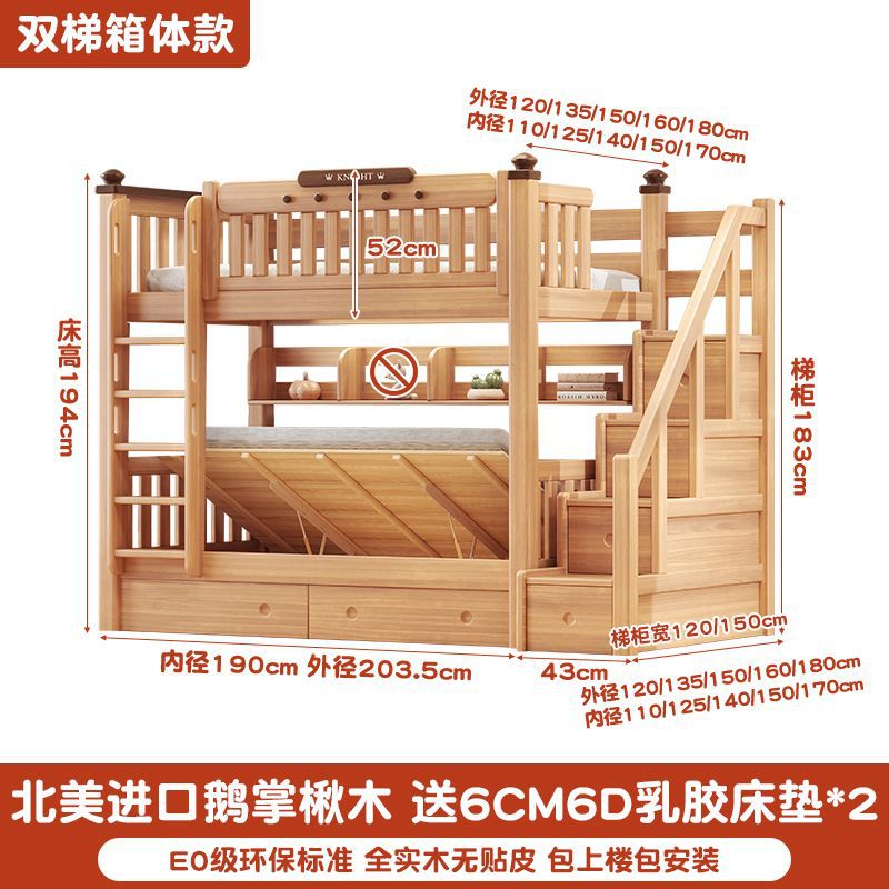 침대 2 층 침대 어린이 침대 침대 침대 풀 솔리드 우드 베드 높고 낮은 침대 Liriodendron 나무 어머니 침대 작은 아파트
