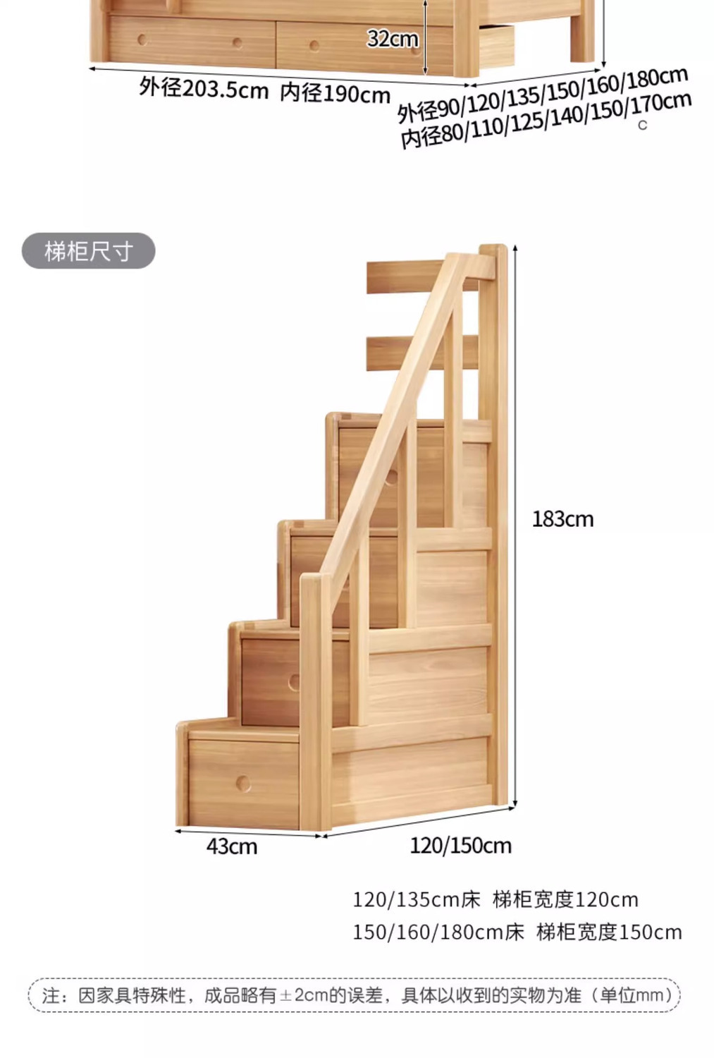 • 사다리 캐비닛 + 책장 + 이중 서랍, 무료 라텍스 매트리스*2