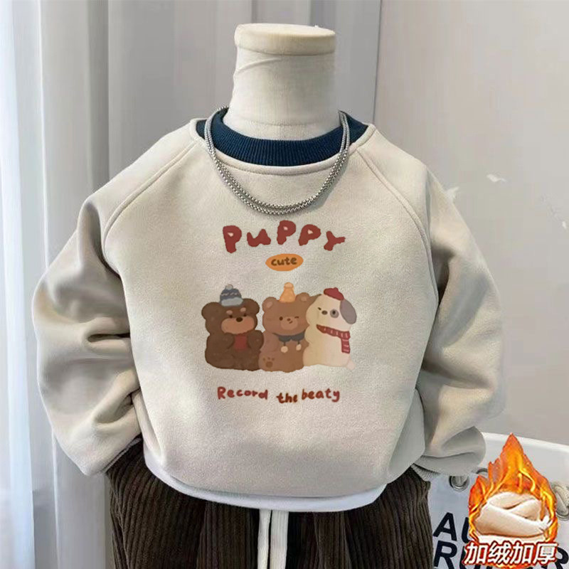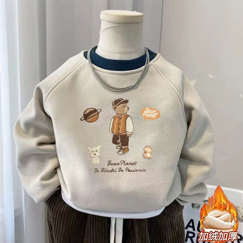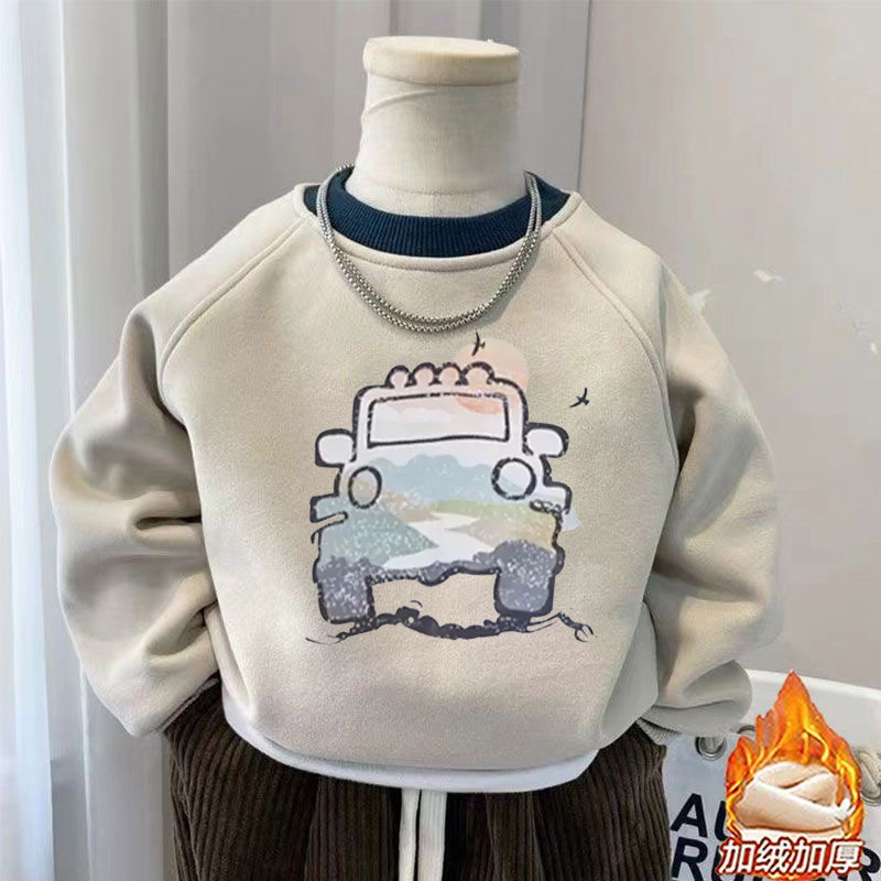울트라 맨 옷 소년 스웨트 셔츠 기모 두껍게 2024 새로운 어린이 가을 겨울 어린이 의류 원피스 벨벳 겨울 의류스토어 가기