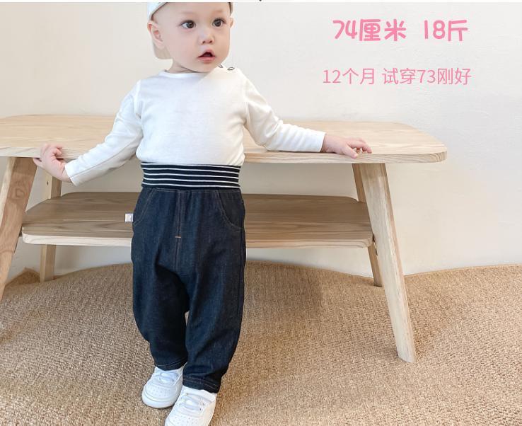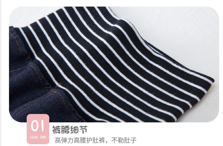 봄과 가을 어린이 바지 소년 소녀 니트 부드러운 청바지 아기의 높은 허리 배꼽 바지 스트레치 캐주얼 풀링 바지