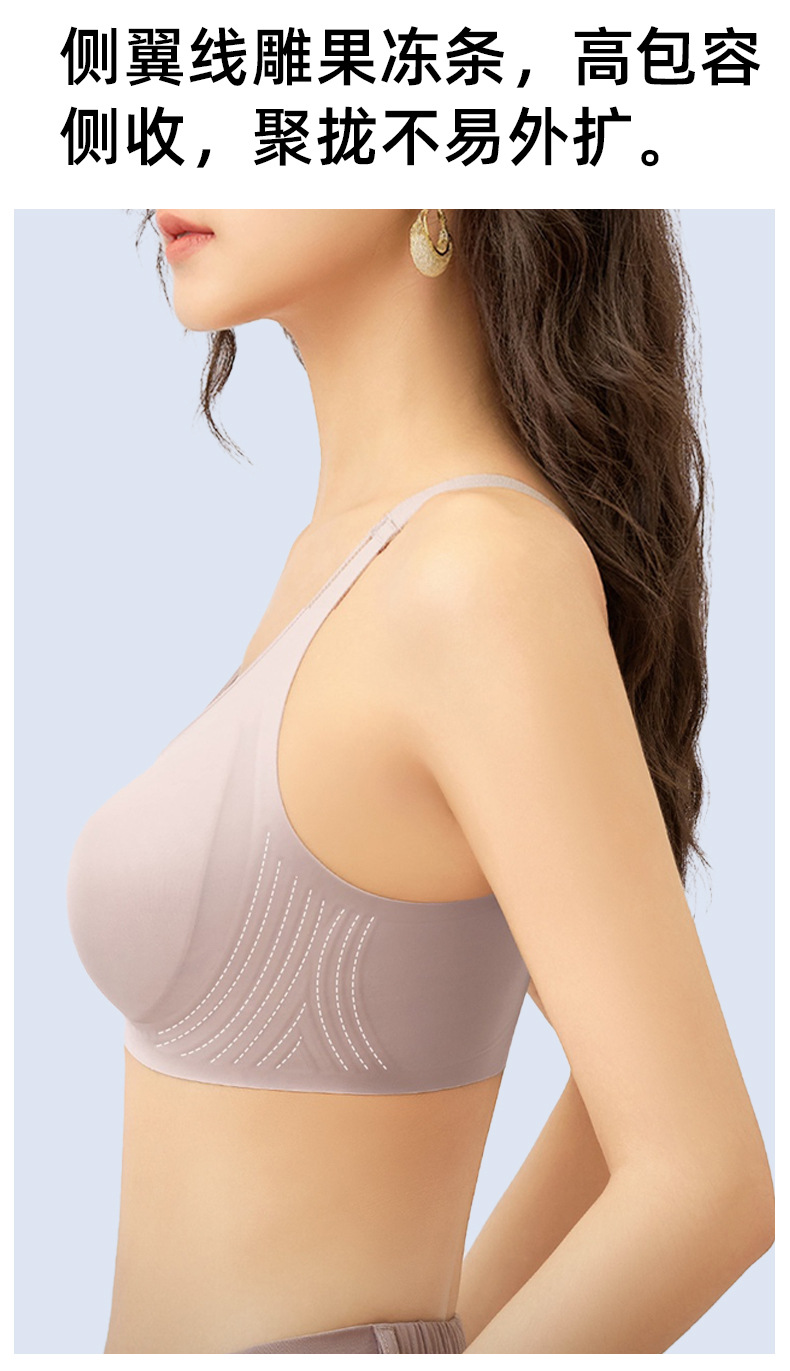 레이스 딥 V 트랙리스 속옷 여성의 큰 가슴은 작은 소프트 지원 사이드 레이스 레이스 상단 지원 편안한 벌거 벗은 여성 속옷을 보여줍니다