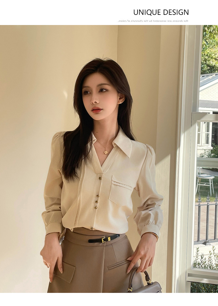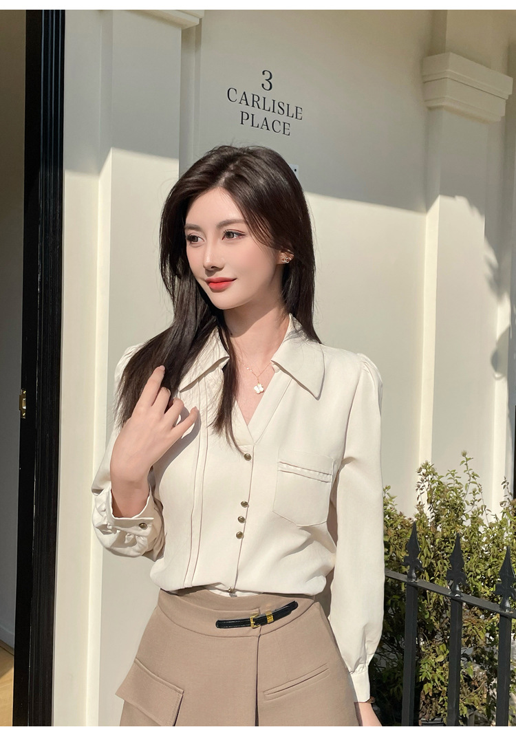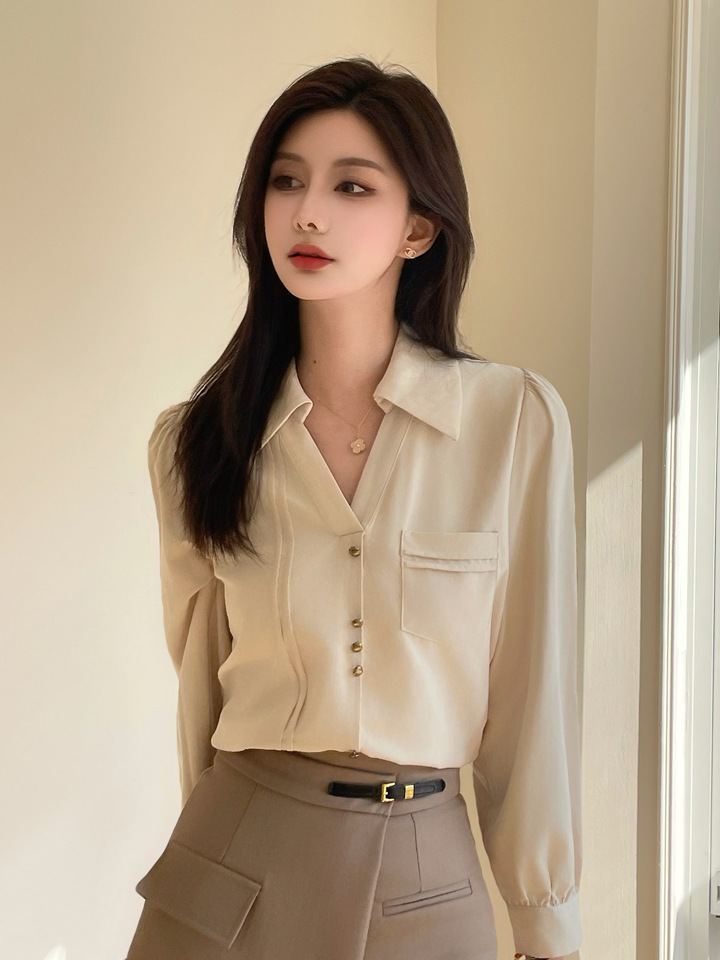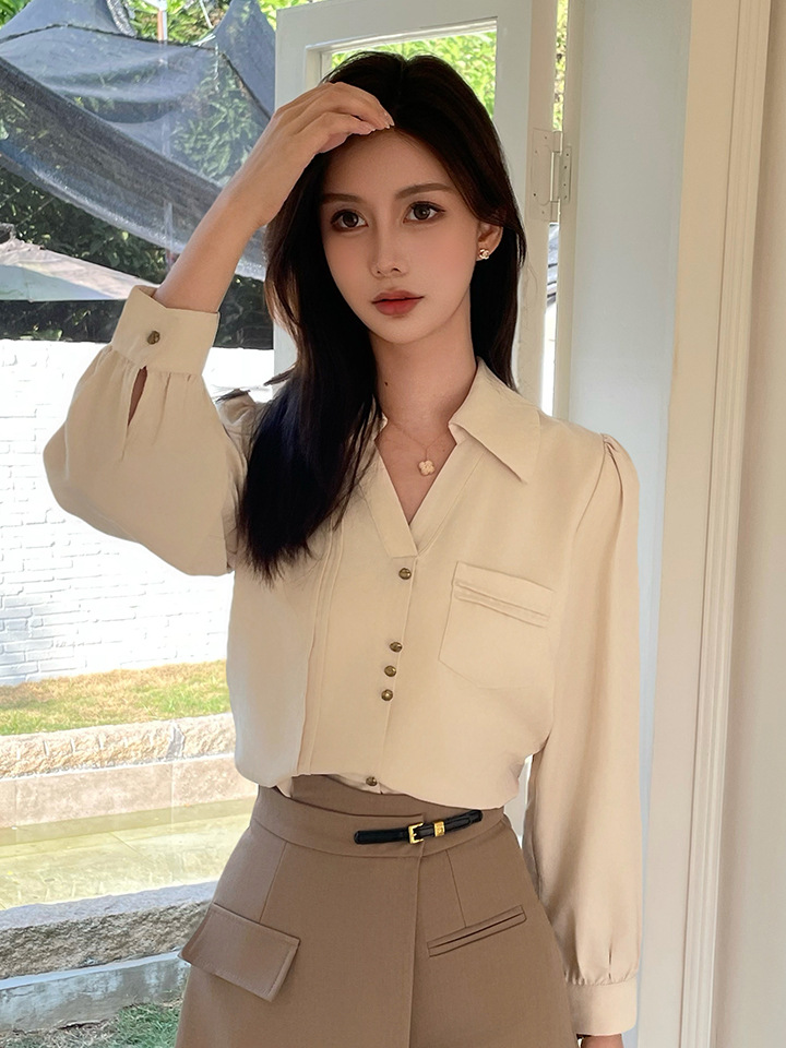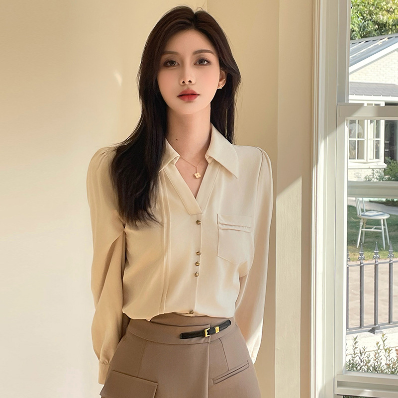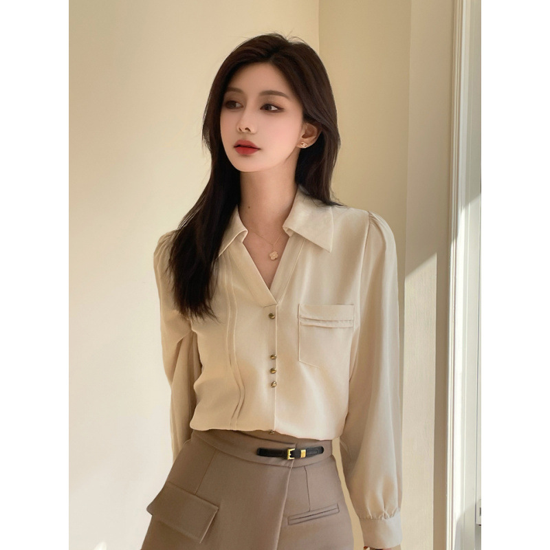 발송 셔츠 2025 봄 새로운 프랑스 디자인 세련된 올 매치 긴 소매 셔츠 통근 전문 탑