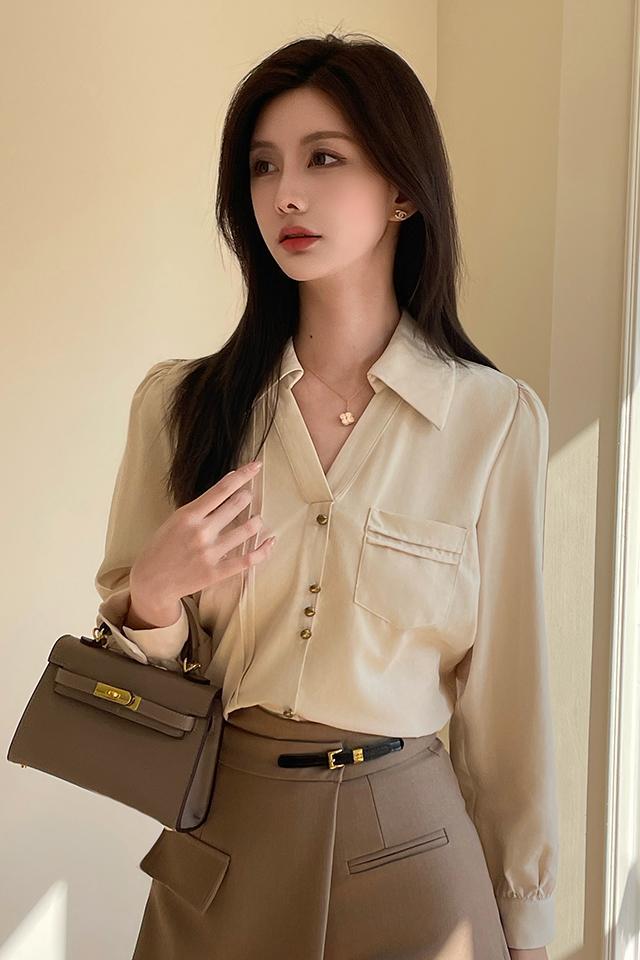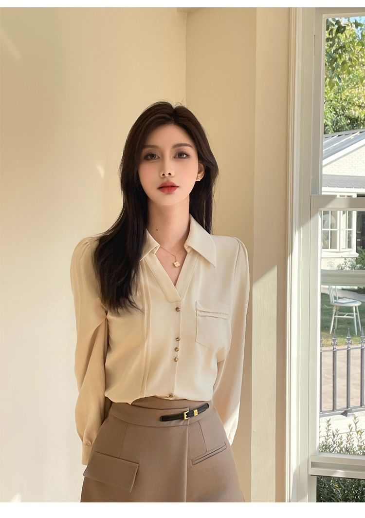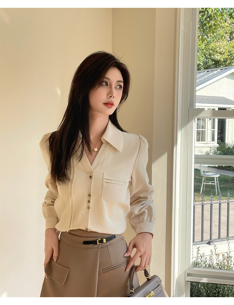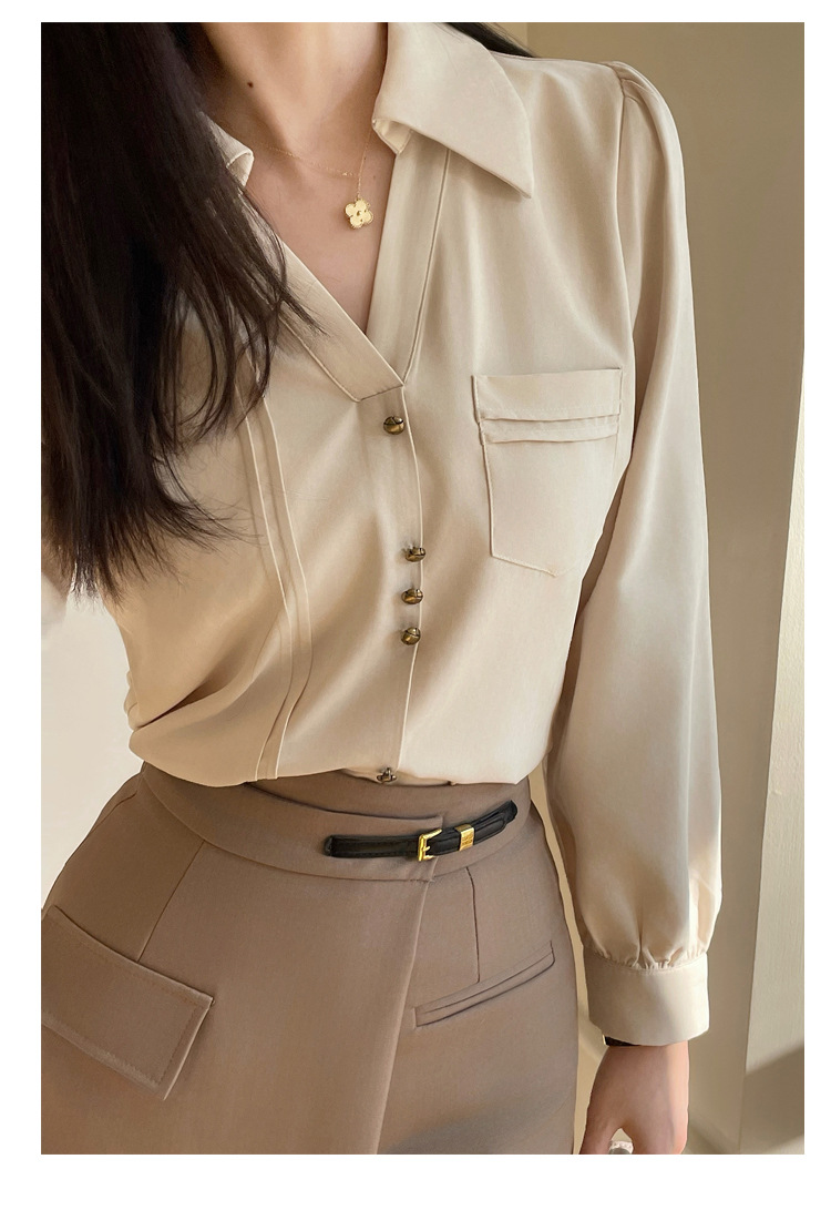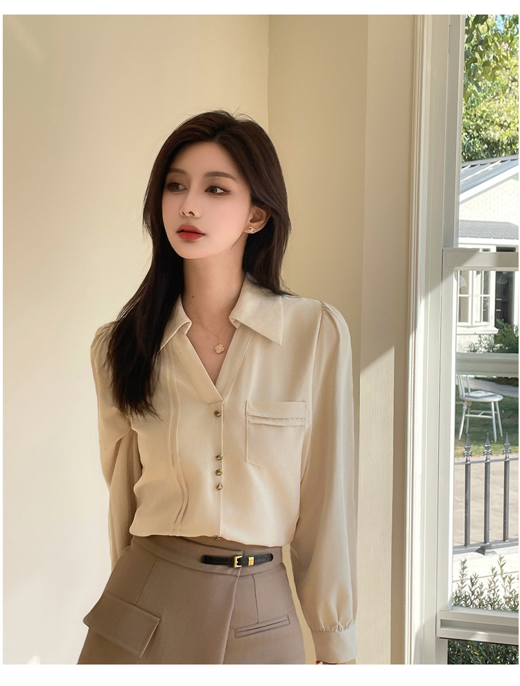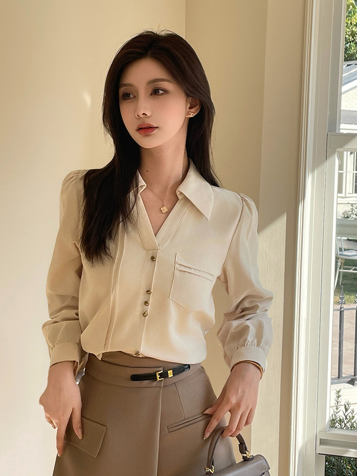 발송 셔츠 2025 봄 새로운 프랑스 디자인 세련된 올 매치 긴 소매 셔츠 통근 전문 탑