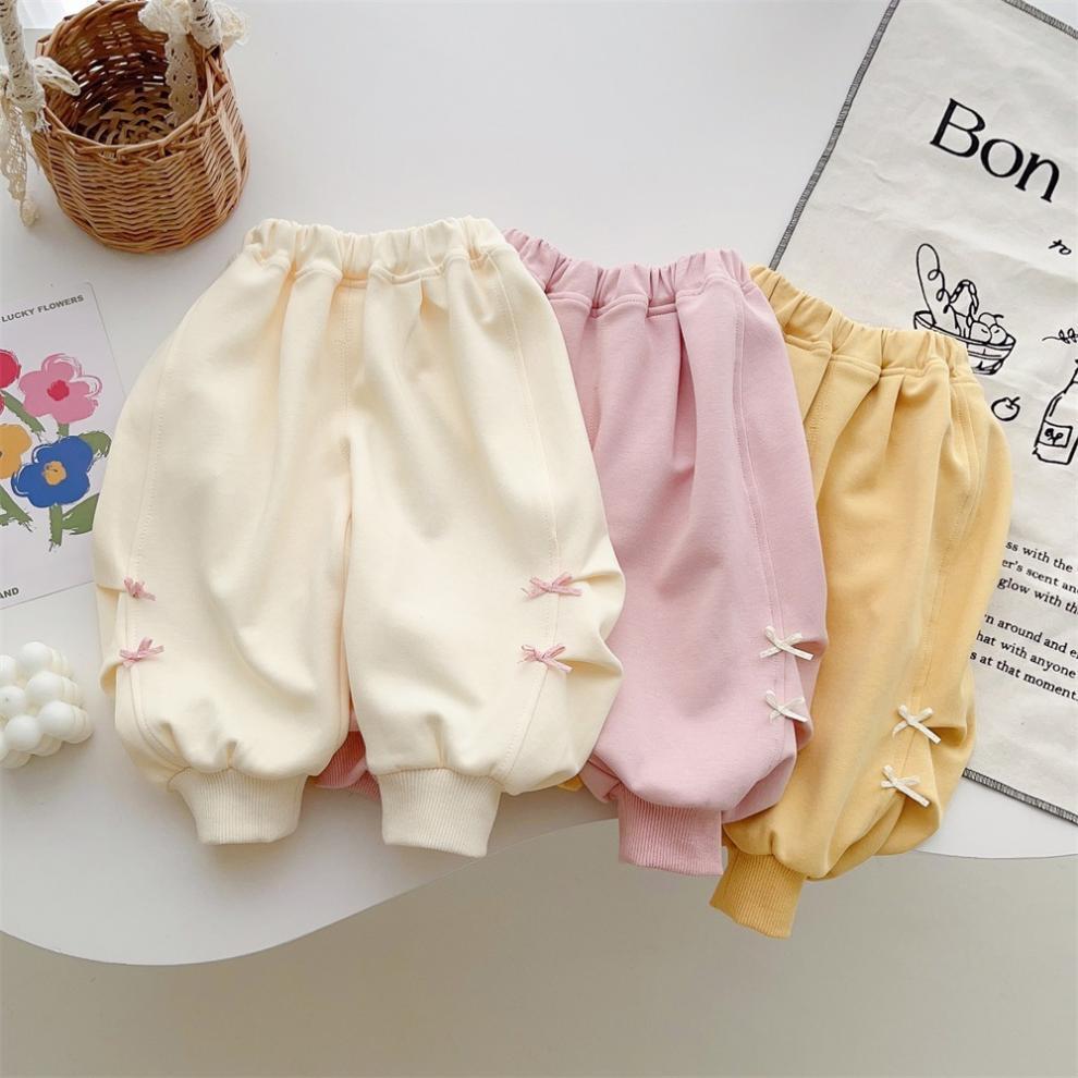 2024 새로운 어린이 바지 아기 소녀의 활 땀 바지 소녀의 달콤한 활 바지 어린이 캐주얼 바지