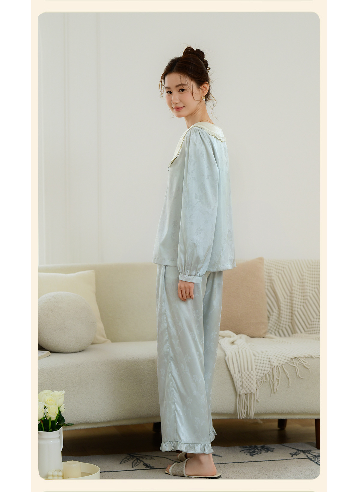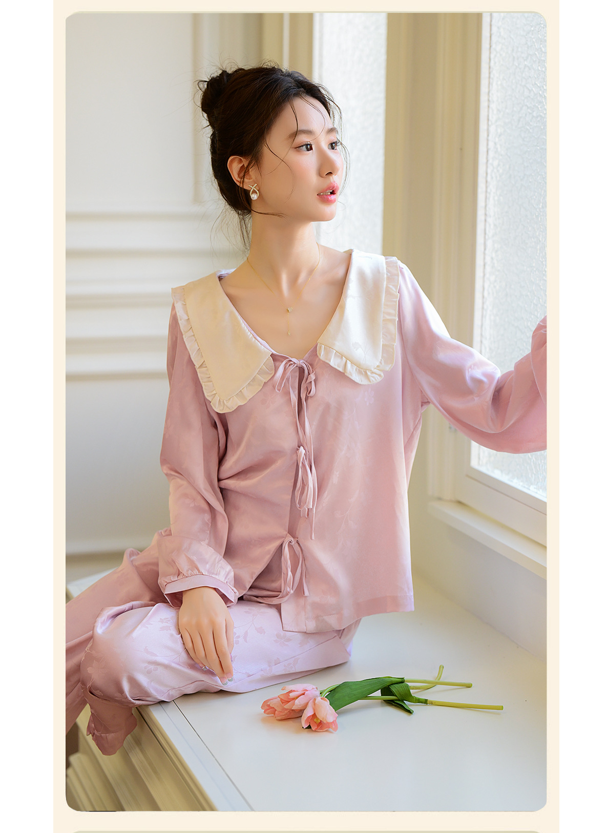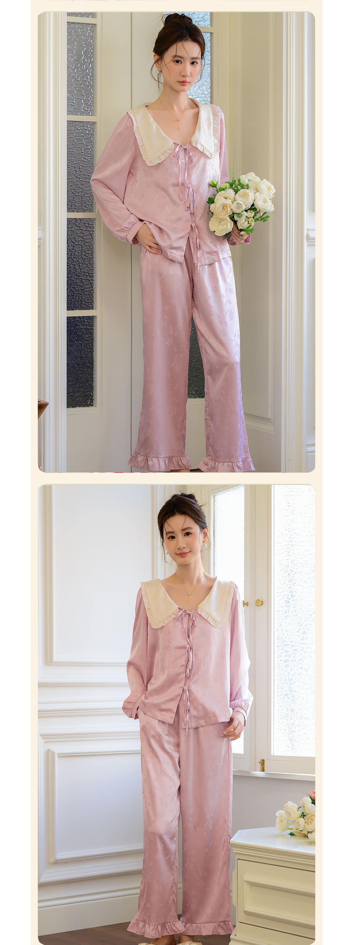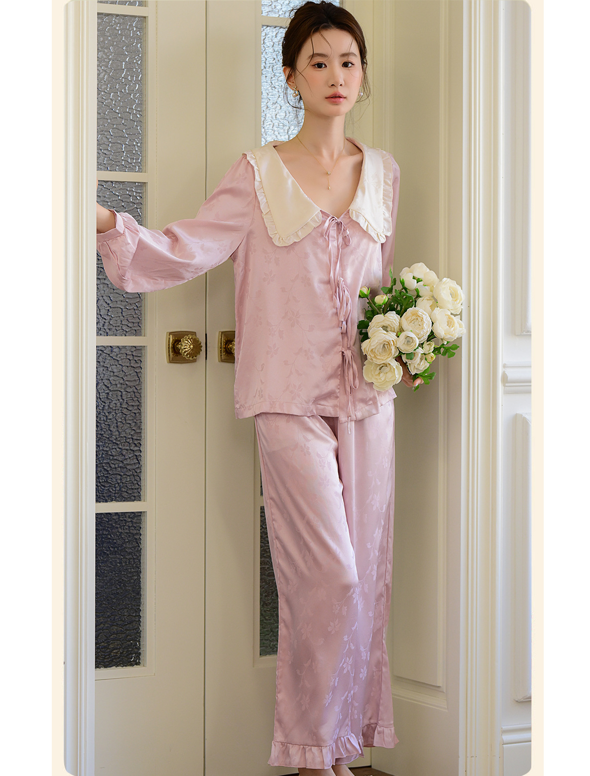 프랑스 파자마 새 옷깃 봄 아이스 실크 하이 엔드 긴팔 바지 홈 의류 여성용 투피스