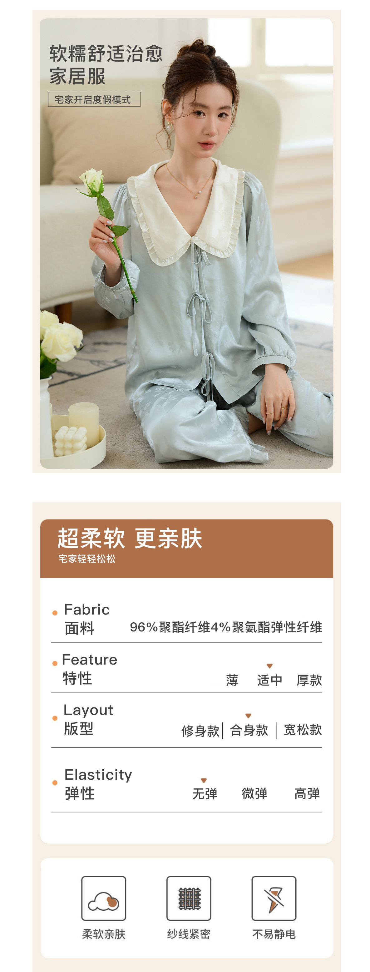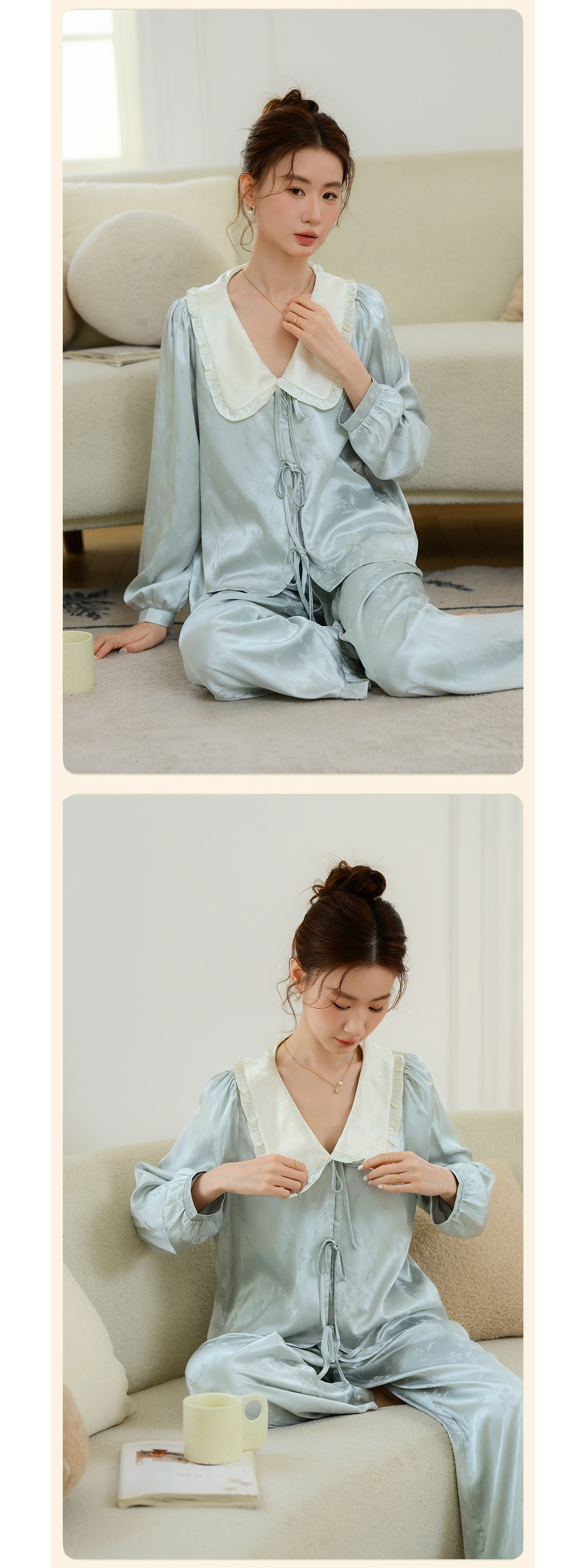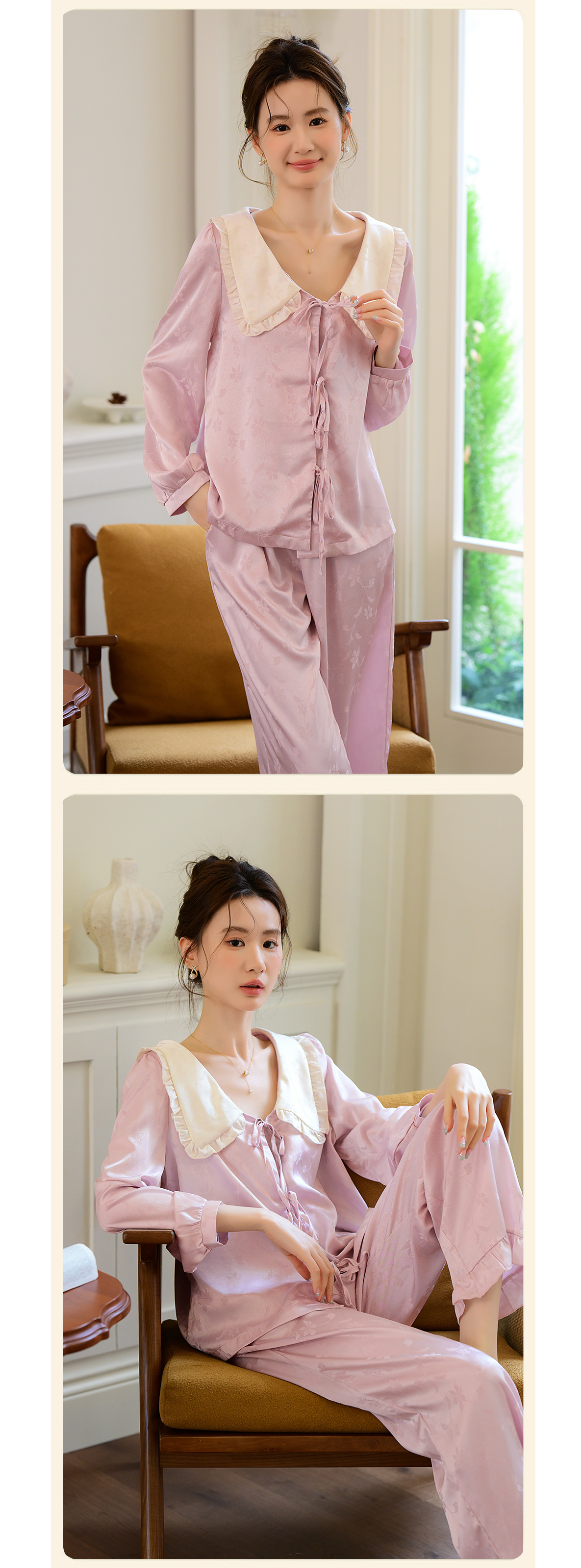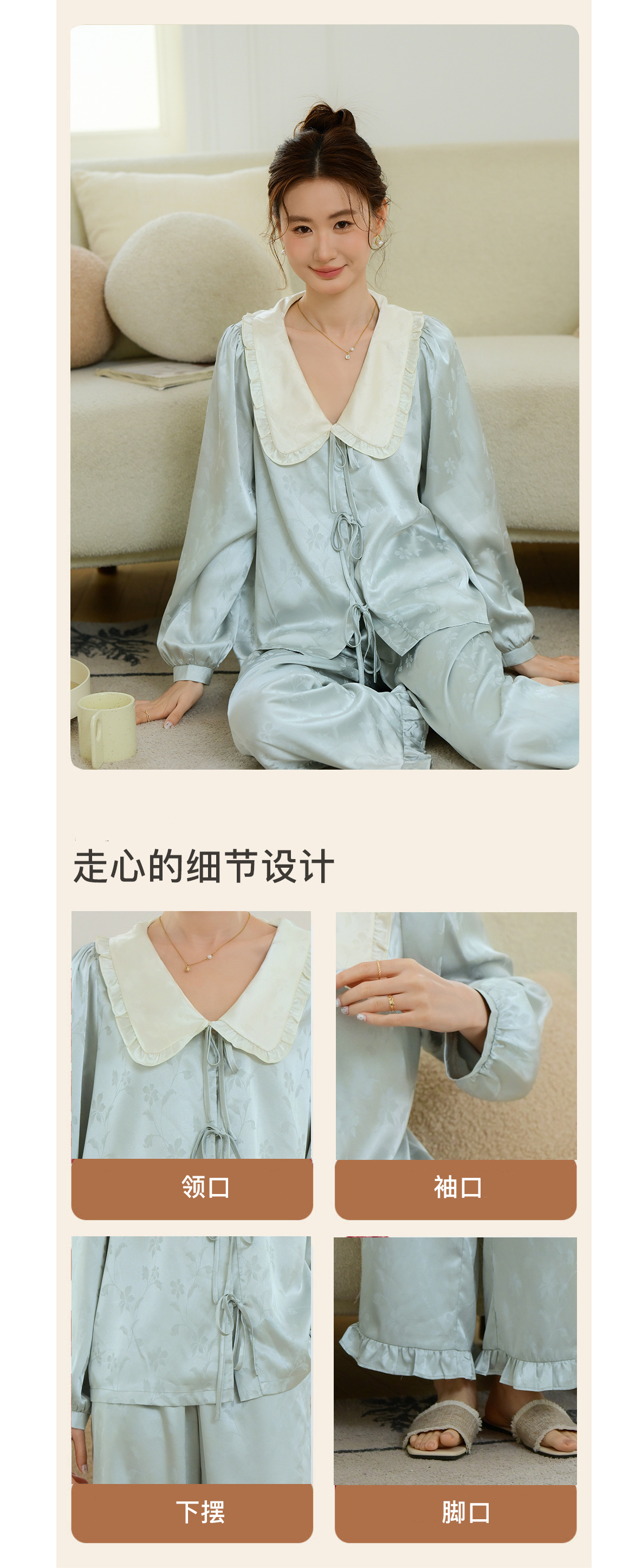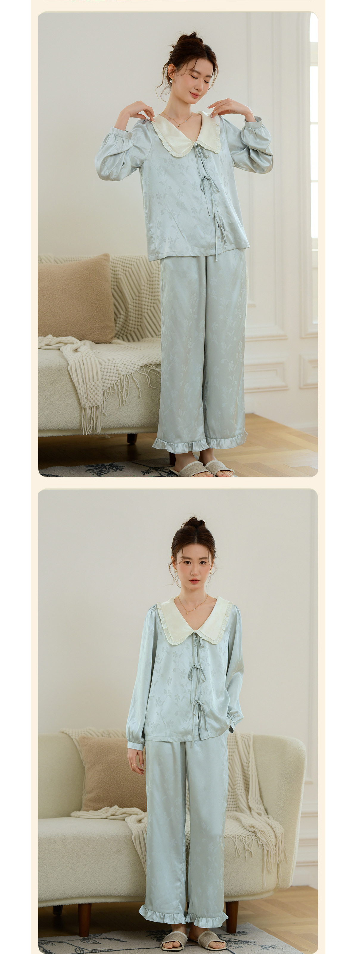 프랑스 파자마 새 옷깃 봄 아이스 실크 하이 엔드 긴팔 바지 홈 의류 여성용 투피스