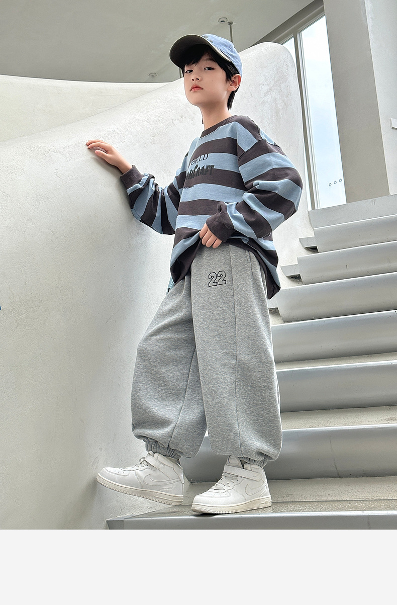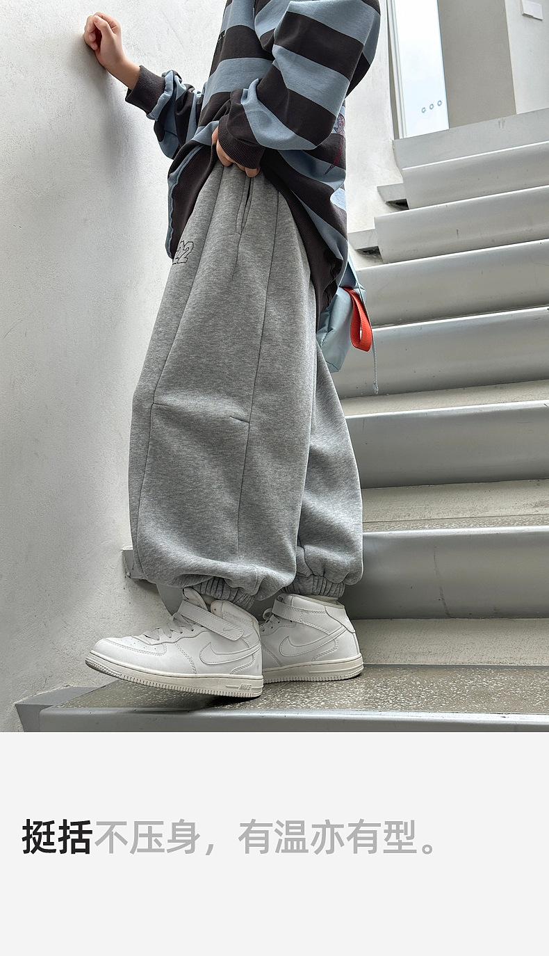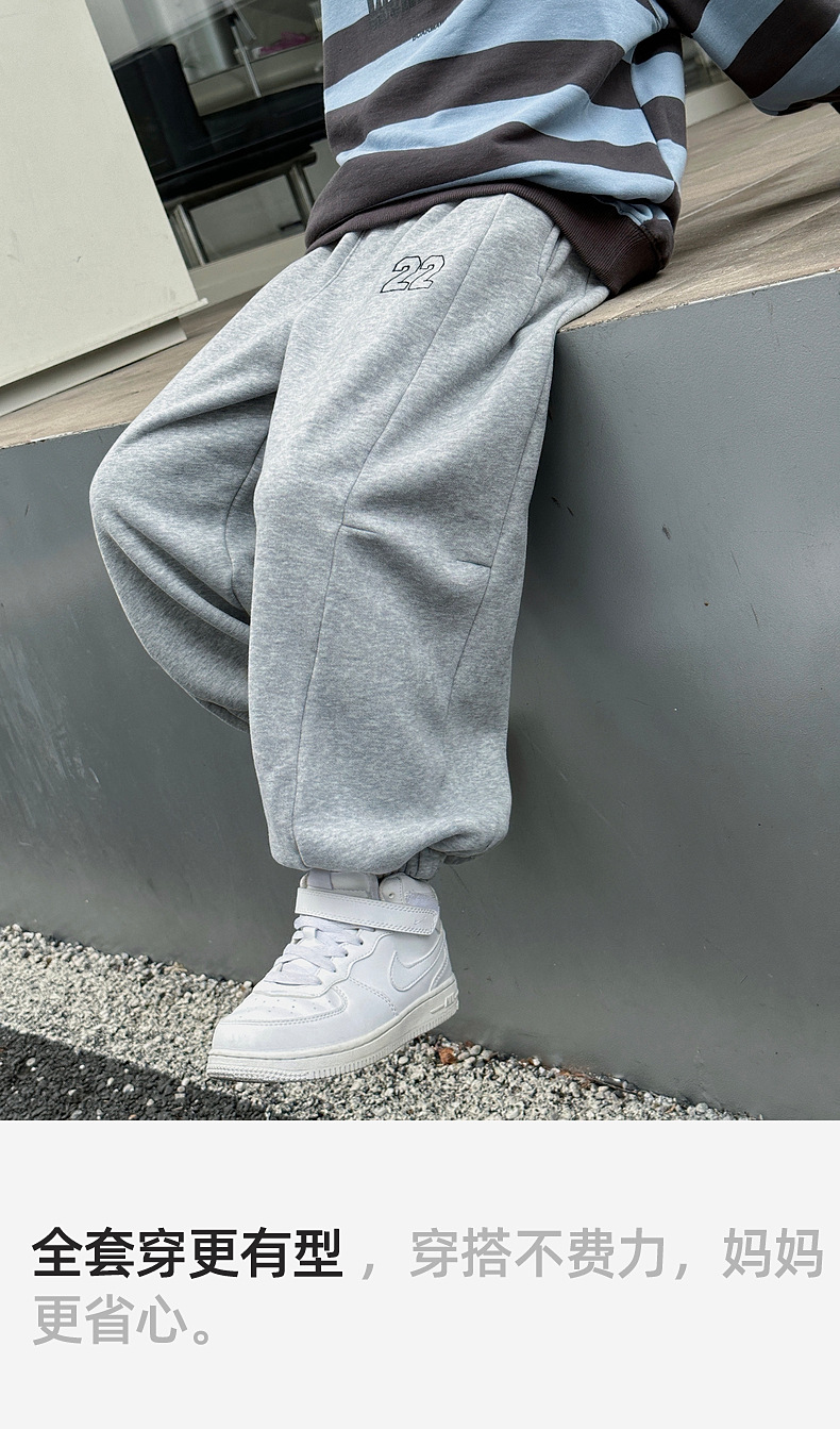 2025春季新款水洗华棉男童卫裤湖州织里童装儿童直筒弯刀裤运动裤